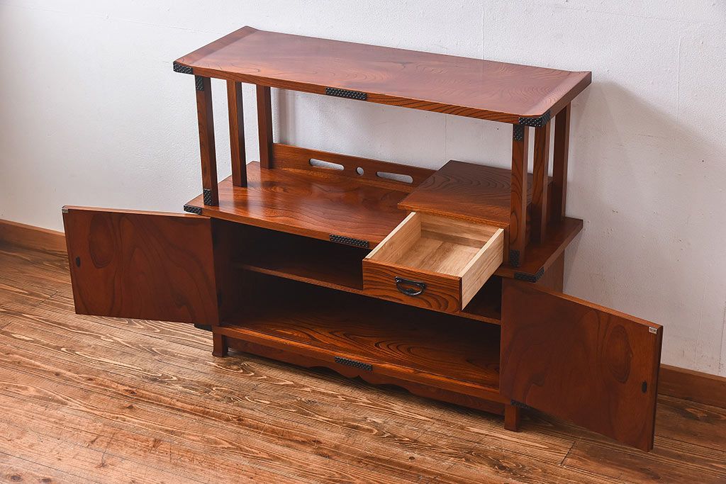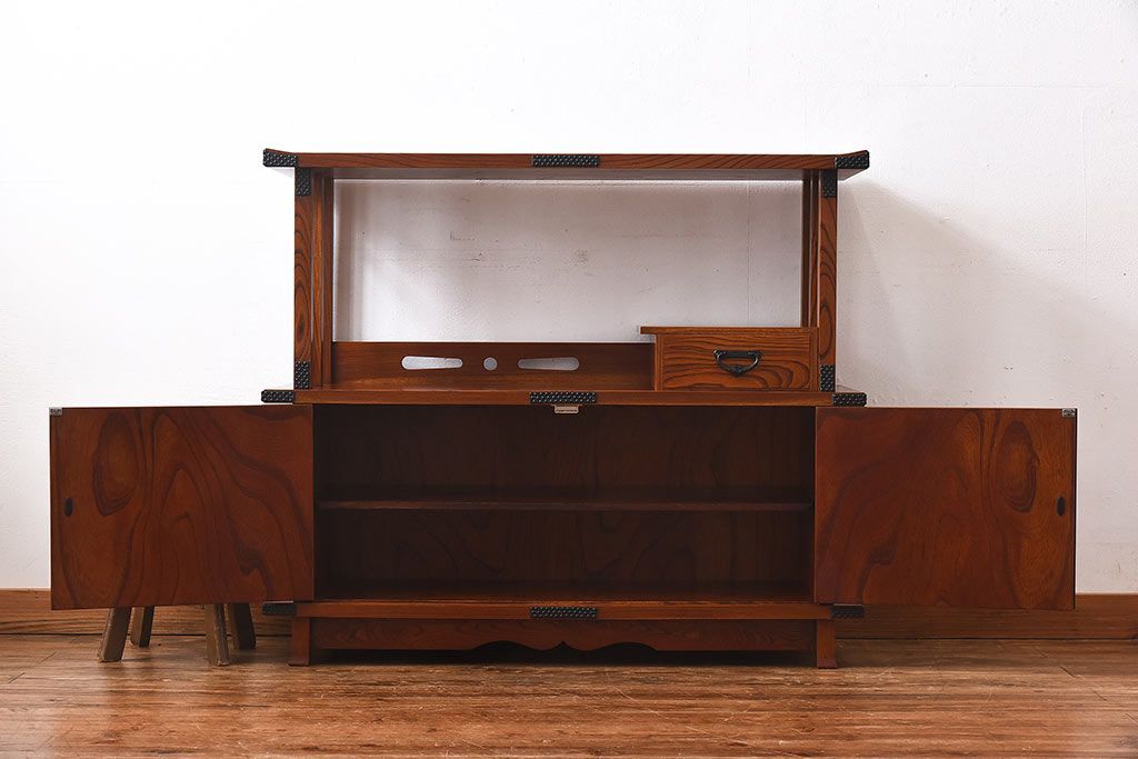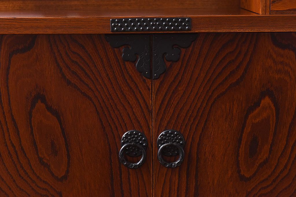 ラフジュ工房> 和箪笥> 茶箪笥・茶棚 > 中古 民芸家具 力強い杢目が見事な飾り棚(茶棚)