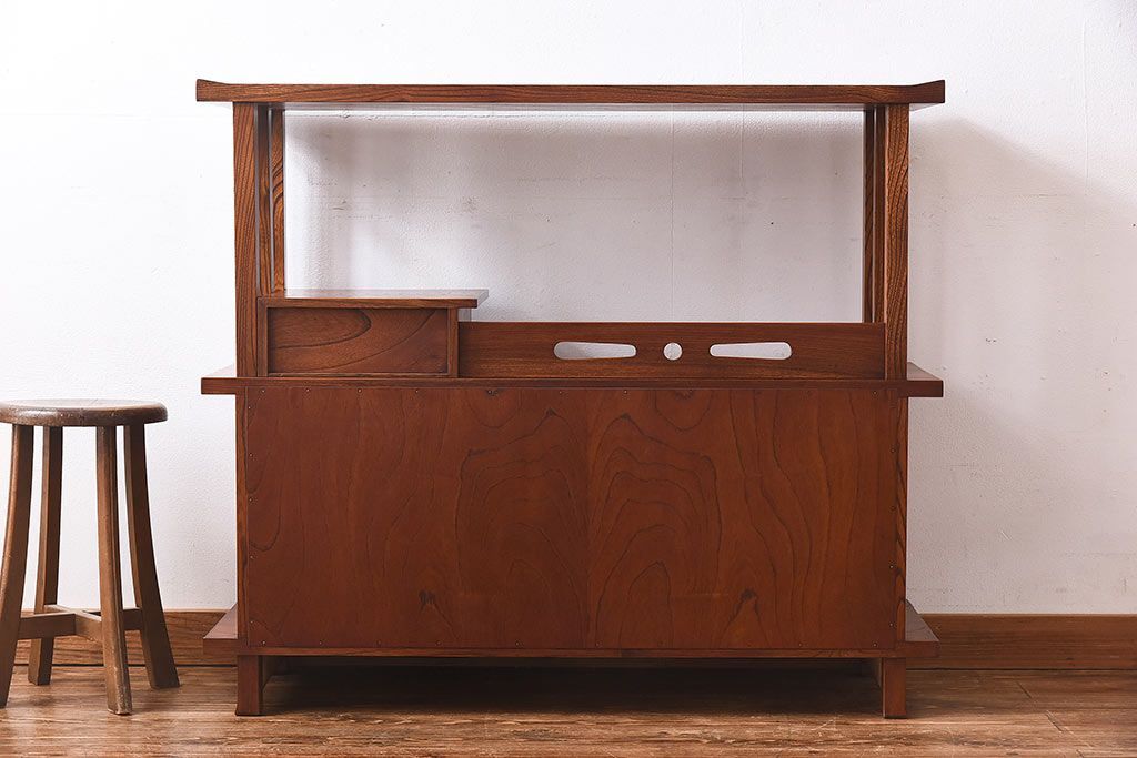 中古 民芸家具 力強い杢目が見事な飾り棚(茶棚)