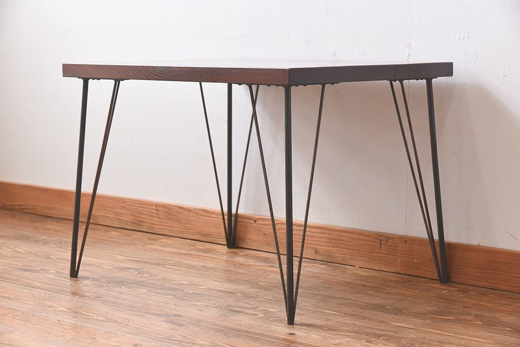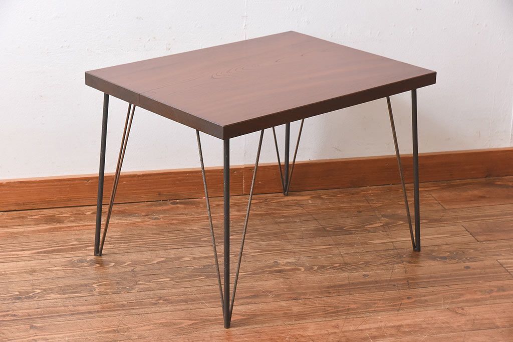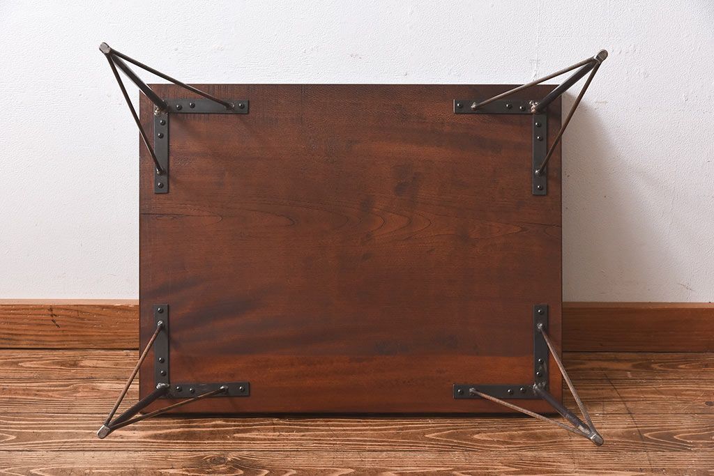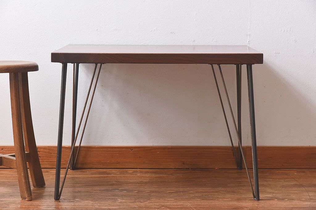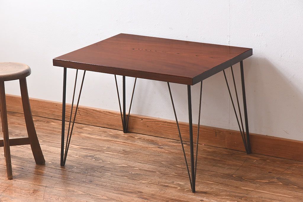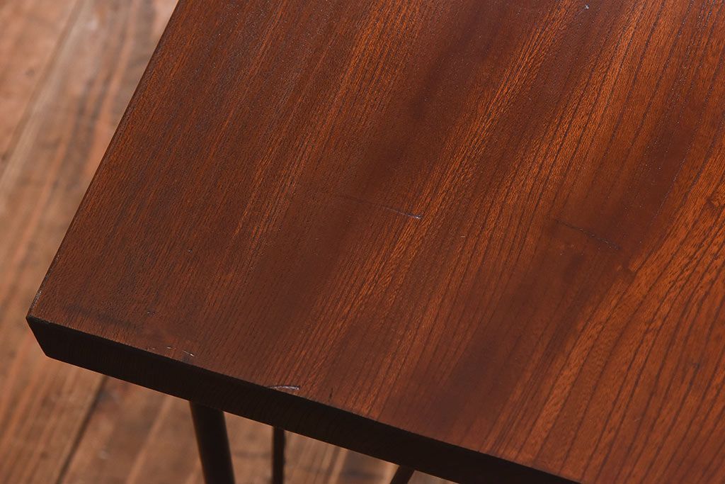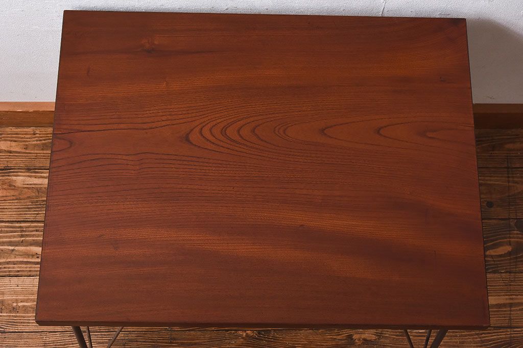 ケヤキ一枚板 古材リメイクの鉄脚ローテーブル(サイドテーブル、カフェテーブル)
