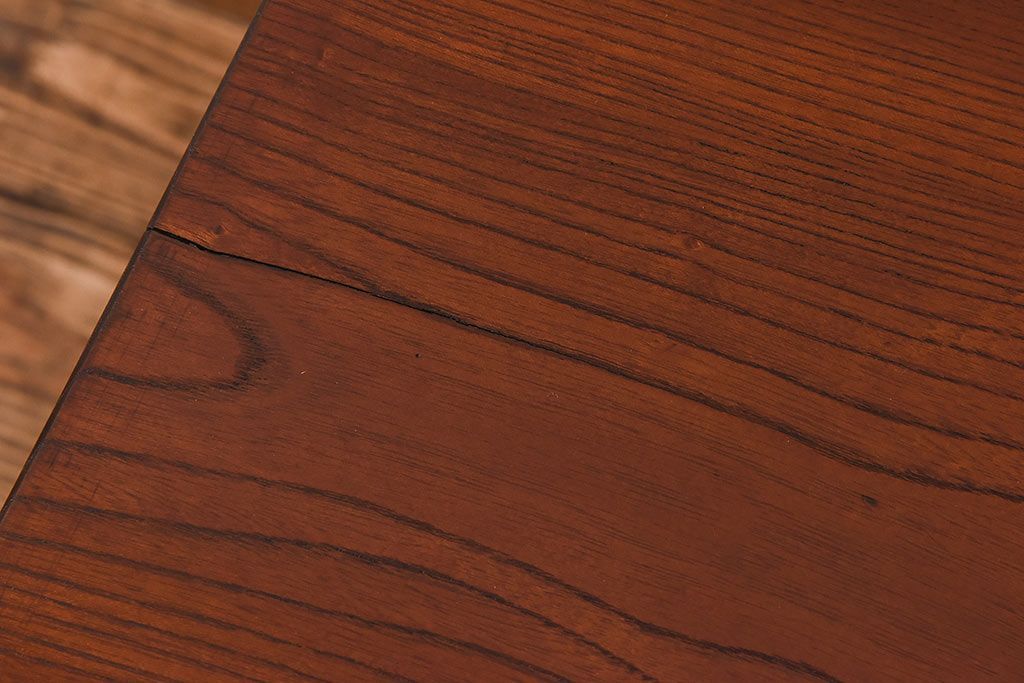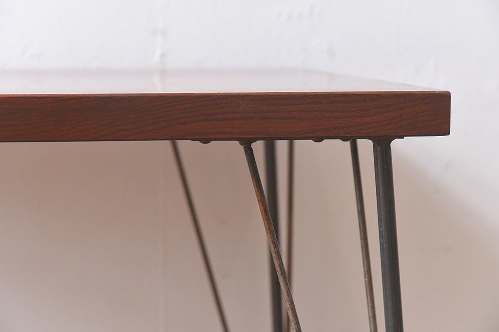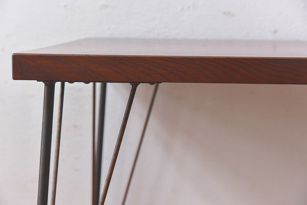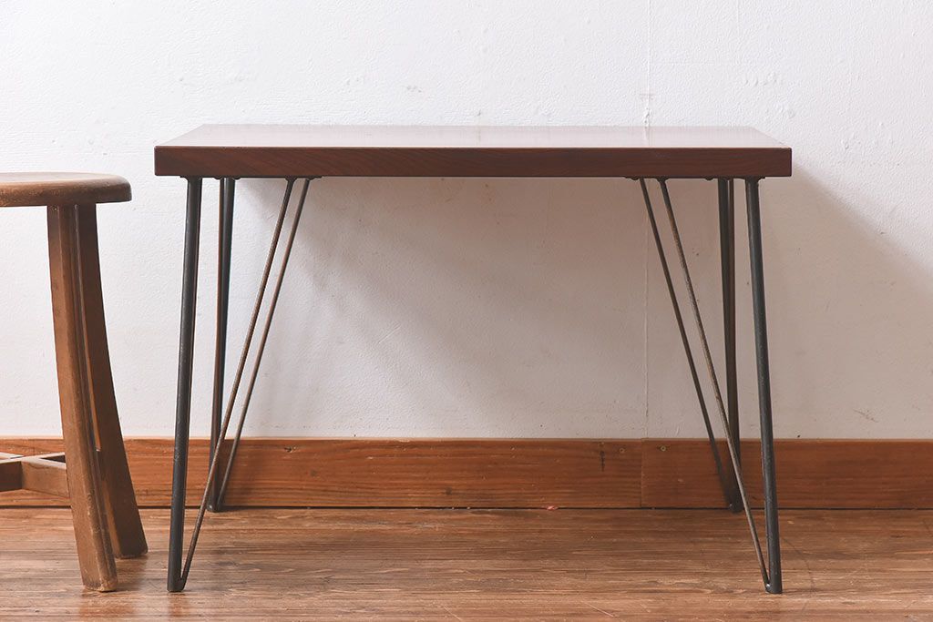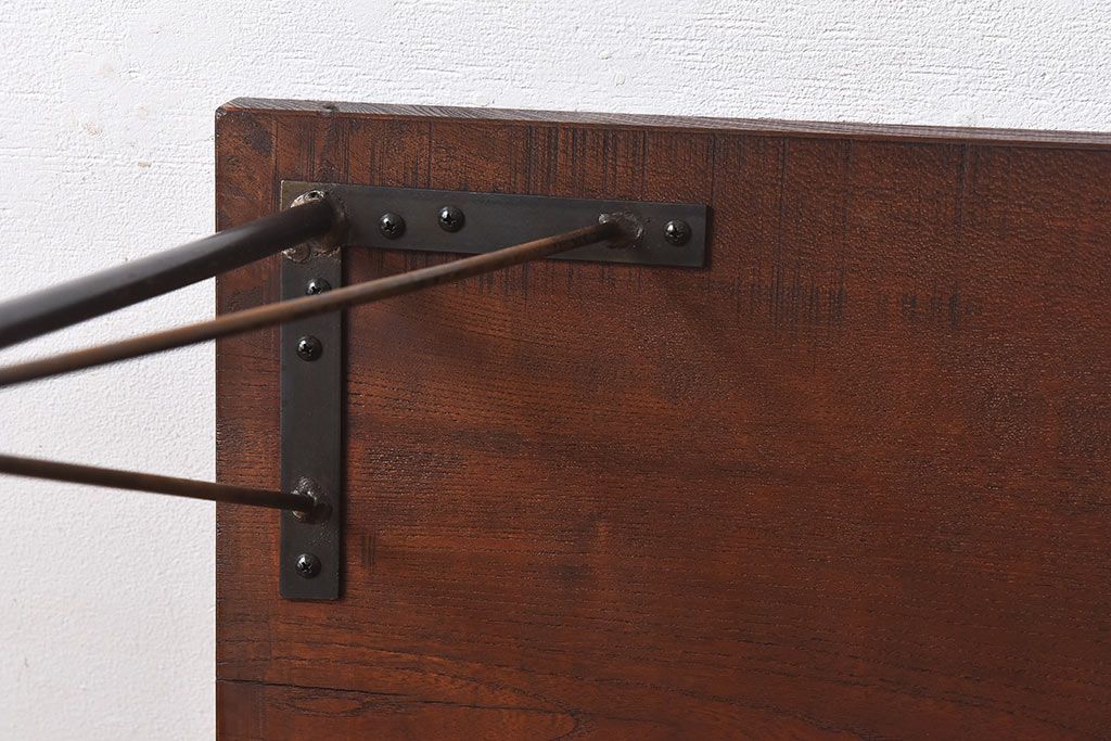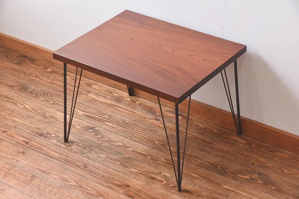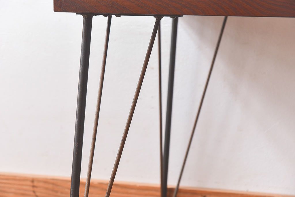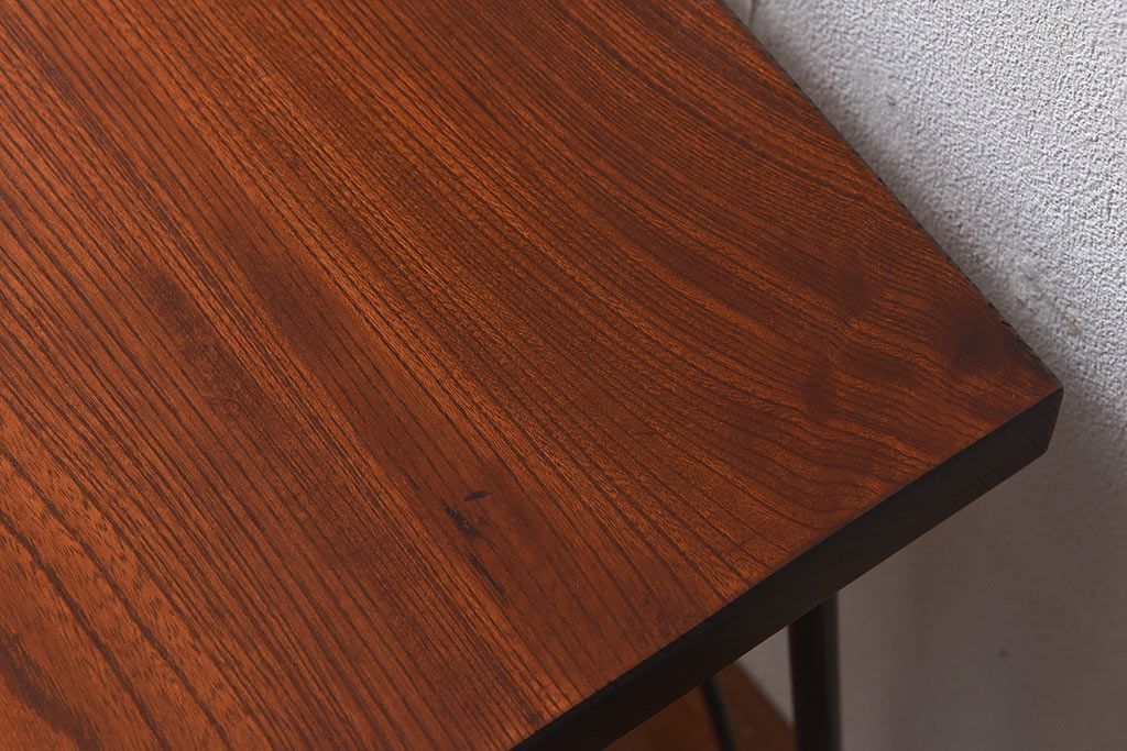 ケヤキ一枚板 古材リメイクの鉄脚ローテーブル(サイドテーブル、カフェテーブル)