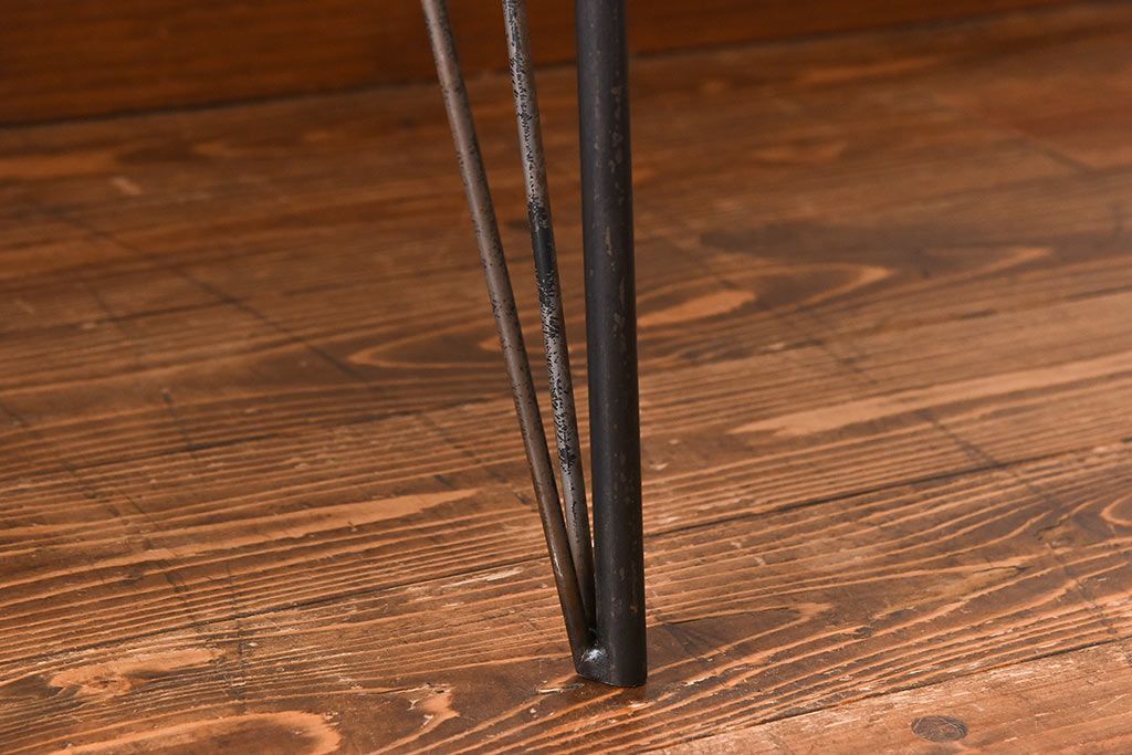 ケヤキ一枚板 古材リメイクの鉄脚ローテーブル(サイドテーブル、カフェテーブル)です。
