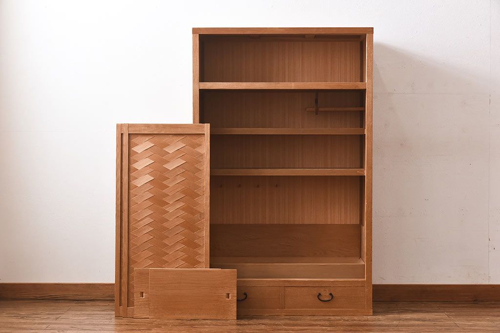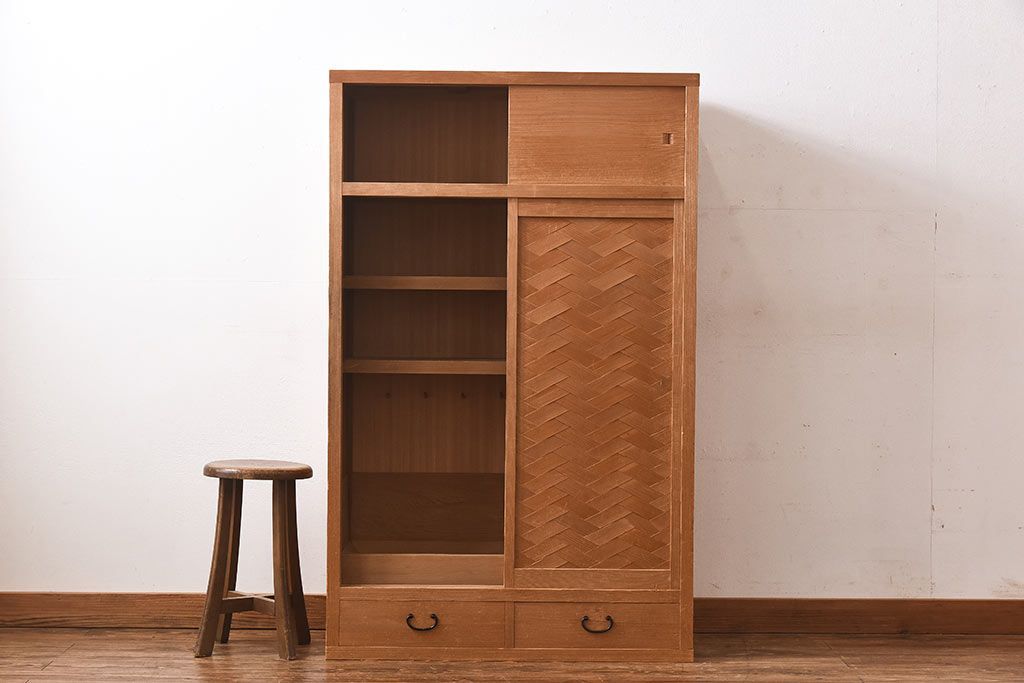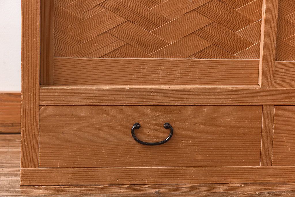 中古 木の質感が味わい深い茶水屋(置き水屋、戸棚、食器棚、茶棚)(1)