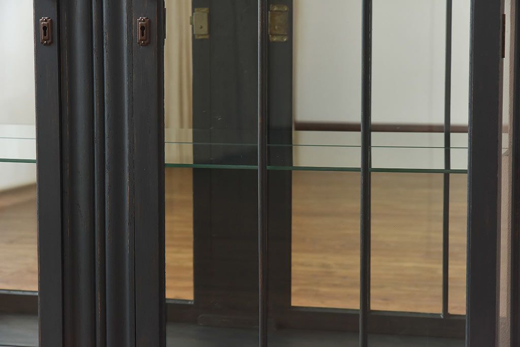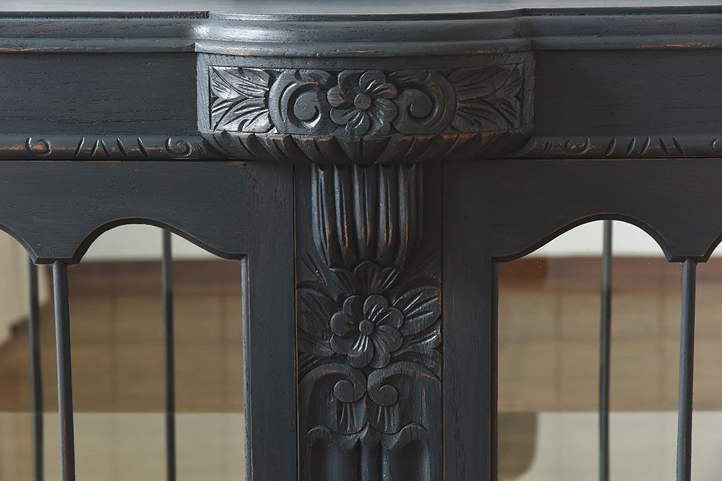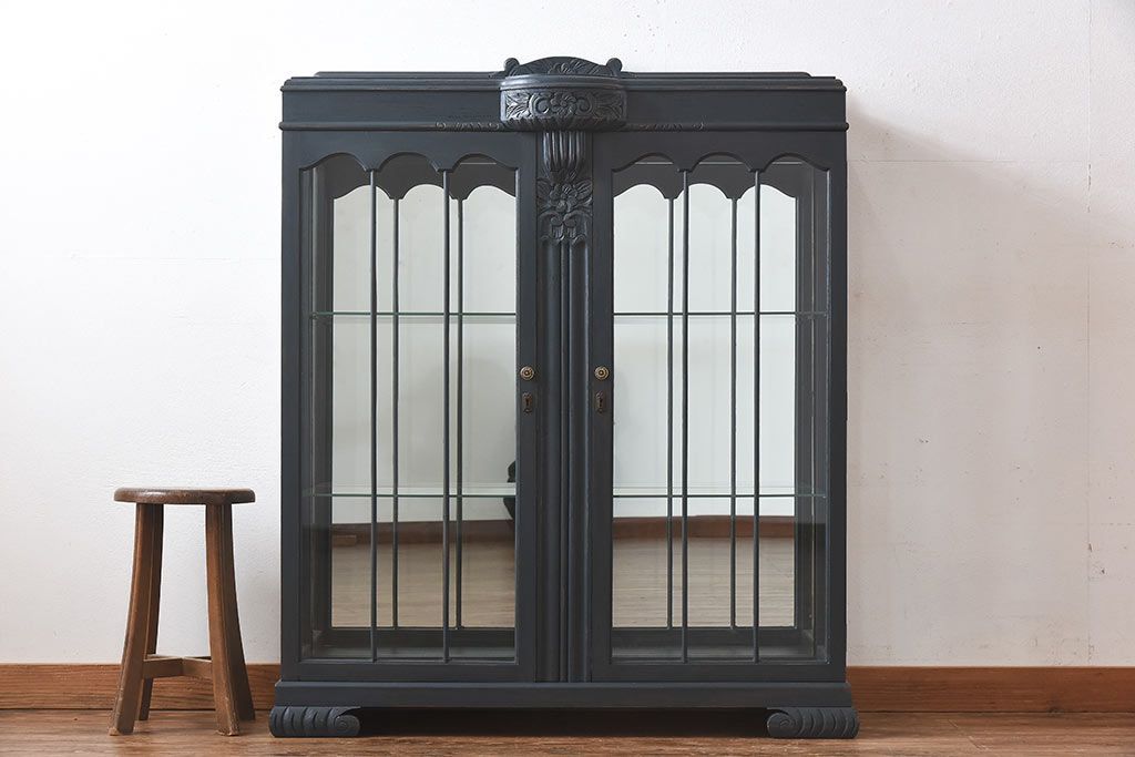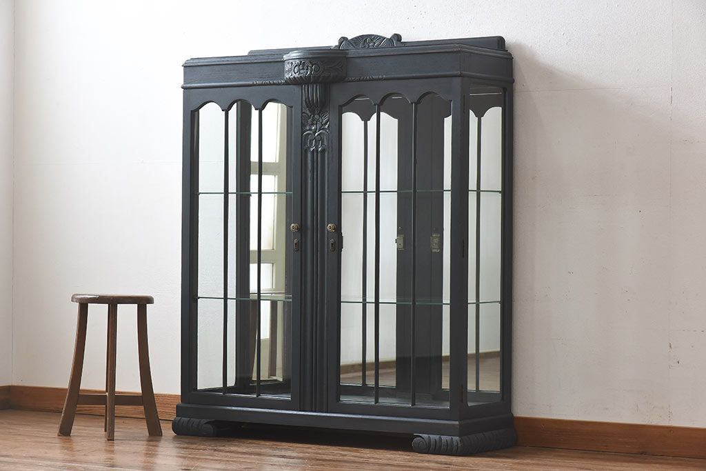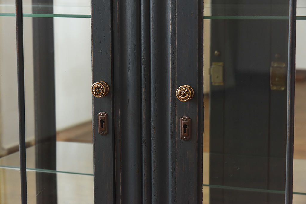 ラフジュ工房> 店舗什器 > アンティーク家具 イギリスアンティーク シックな色味のガラスキャビネット(ガラスケース、ショーケース、飾り棚、キュリオケース)