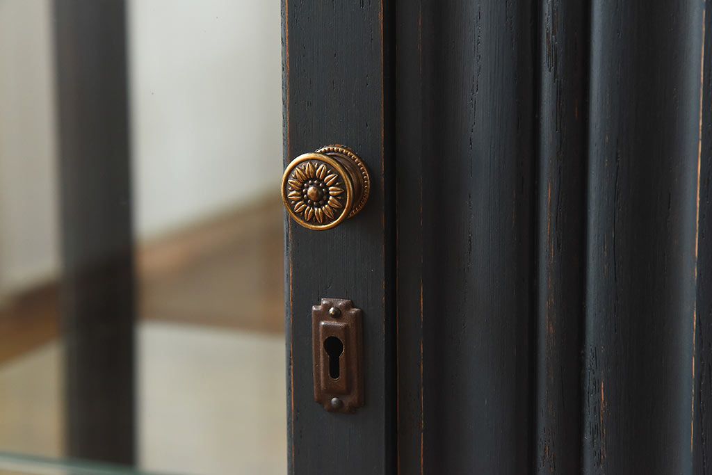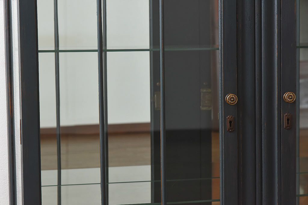 ラフジュ工房> ガラスケース・ショーケース > アンティーク家具 イギリスアンティーク シックな色味のガラスキャビネット(ガラスケース、ショーケース、飾り棚、キュリオケース)