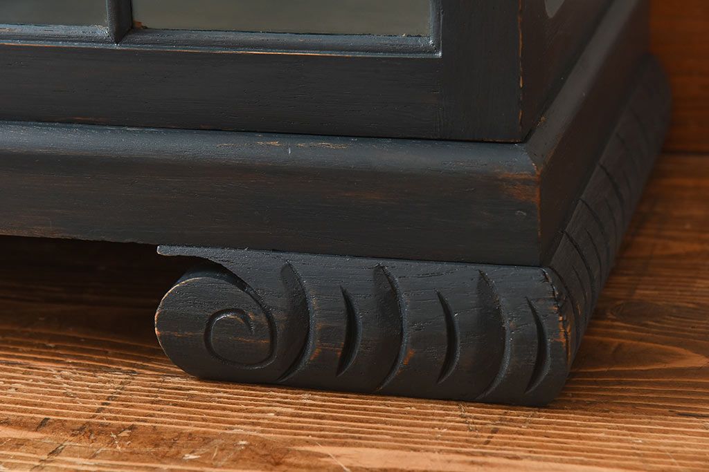 ラフジュ工房> キャビネット・戸棚> 食器棚・カップボード > アンティーク家具 イギリスアンティーク シックな色味のガラスキャビネット(ガラスケース、ショーケース、飾り棚、キュリオケース)