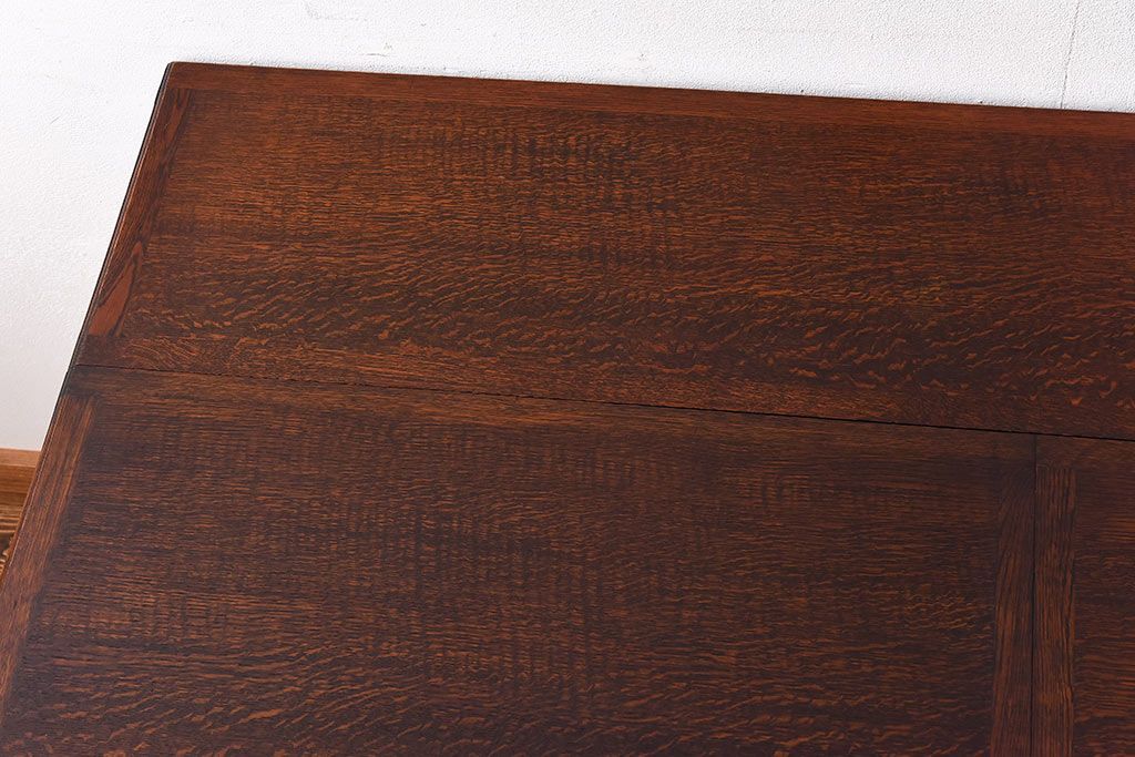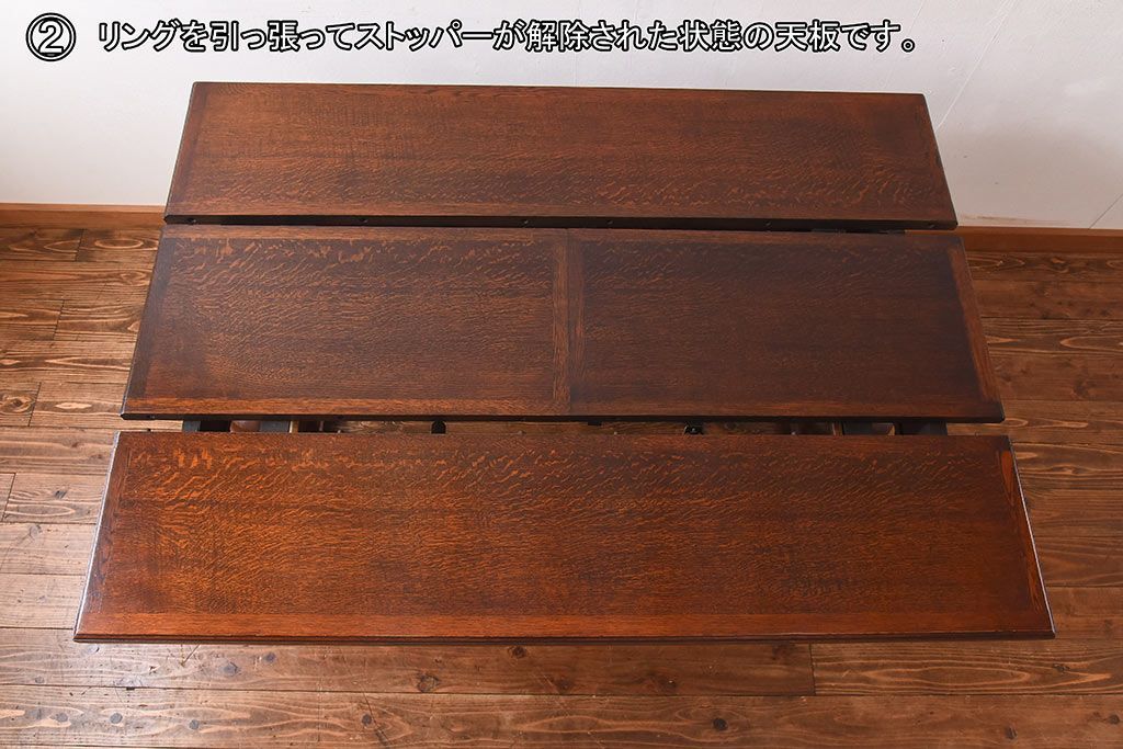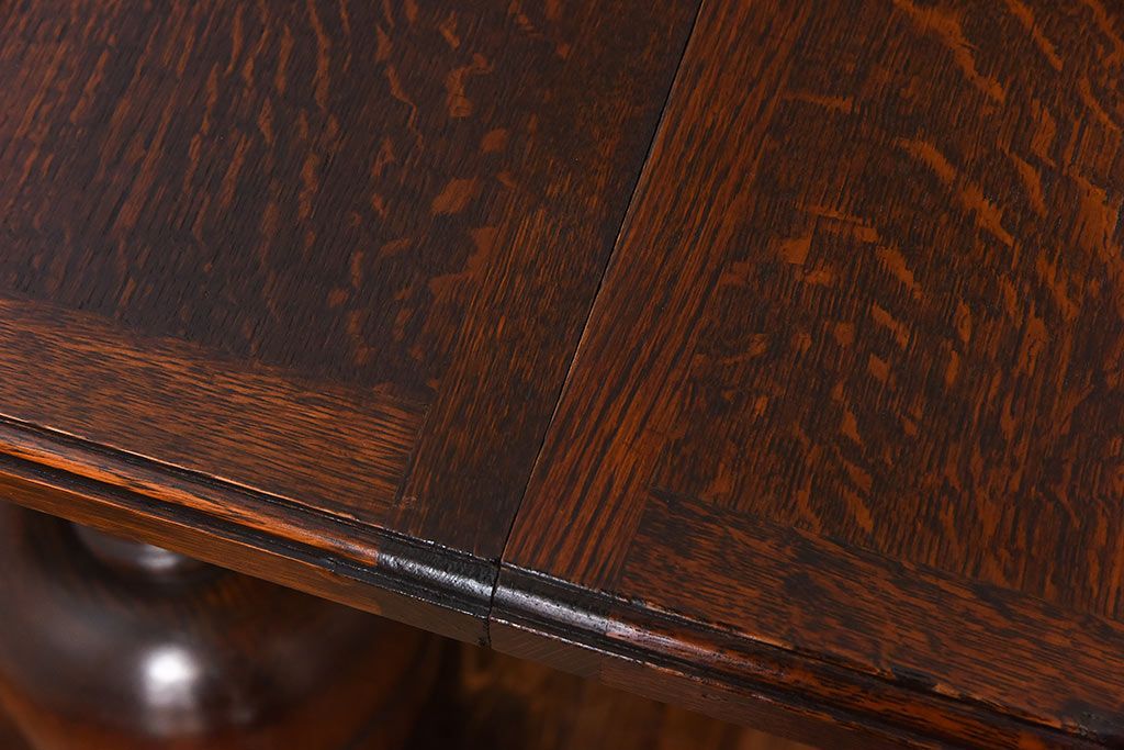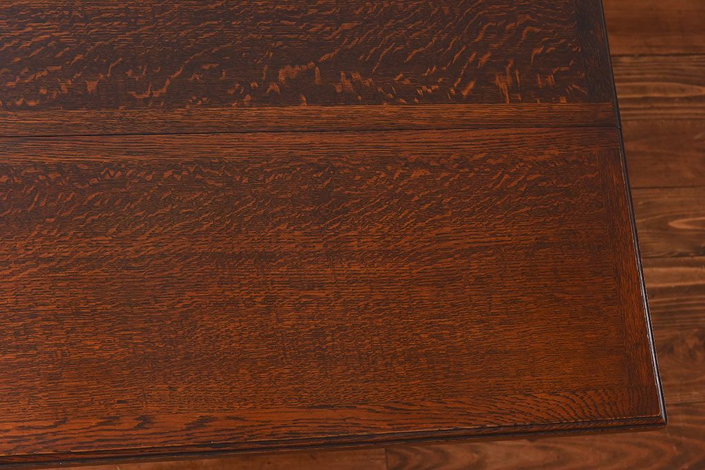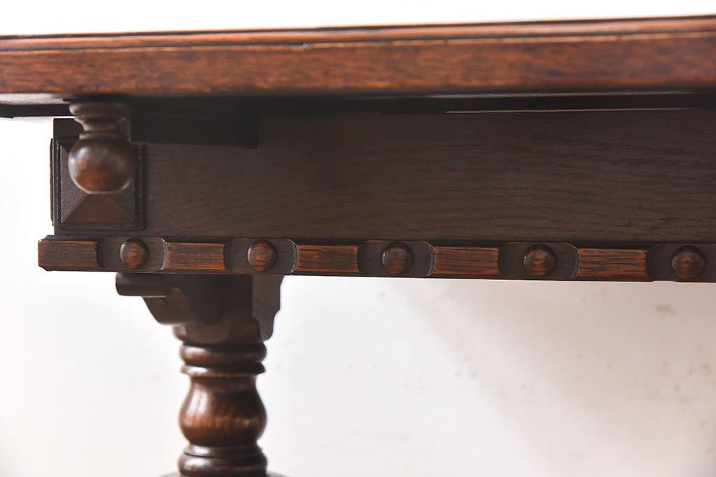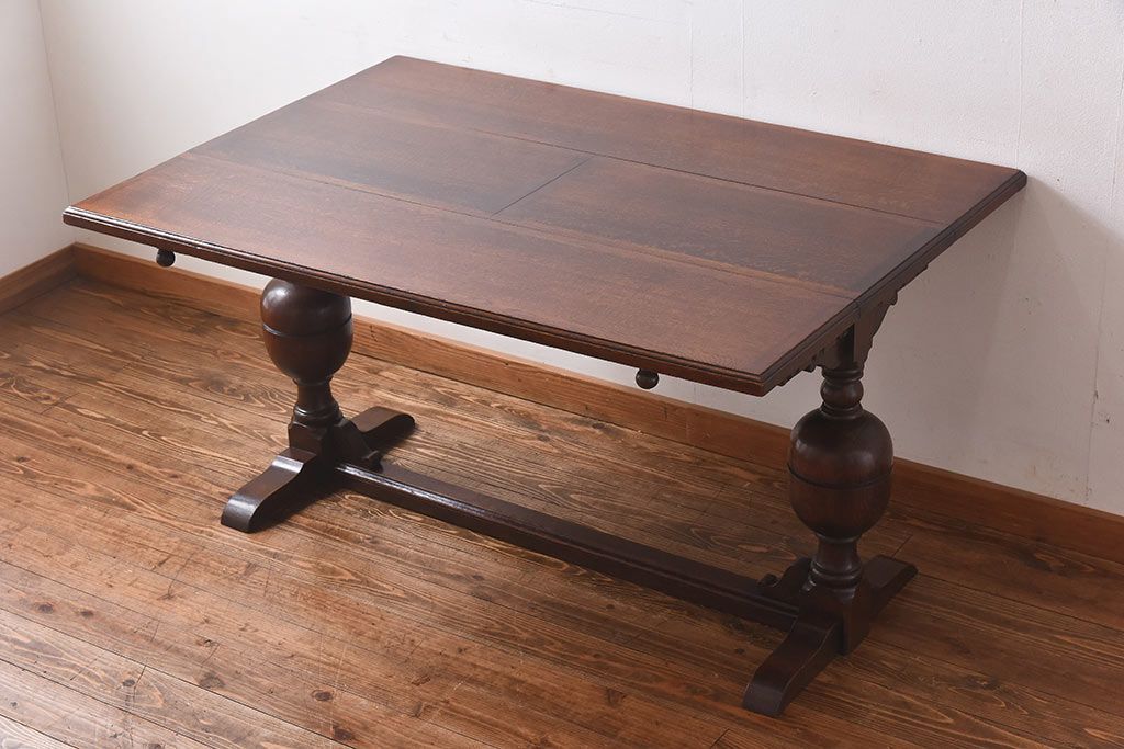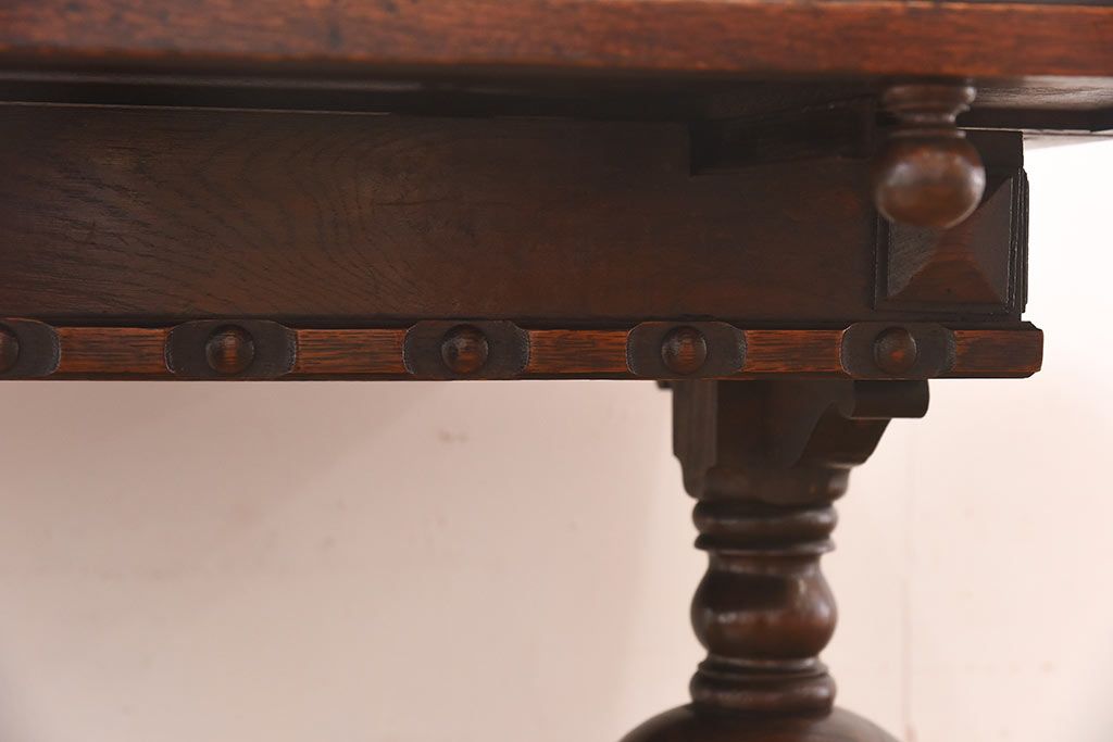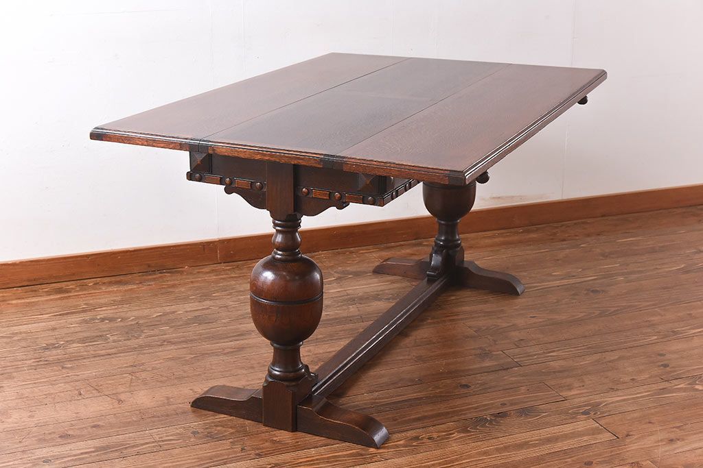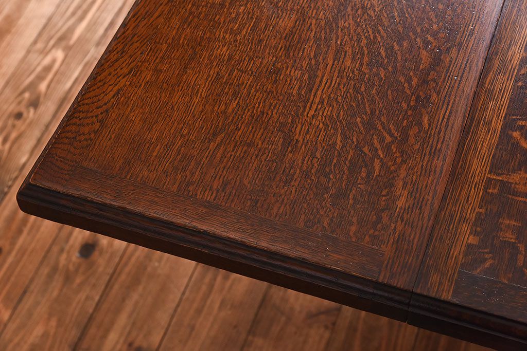 アンティーク家具 イギリスアンティーク オーク材 奥行を伸ばせる珍しいエクステンションダイニングテーブル(ドローリーフテーブル)です。