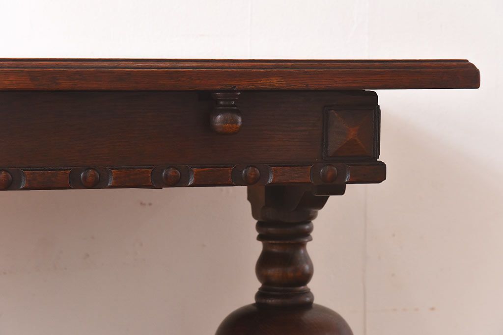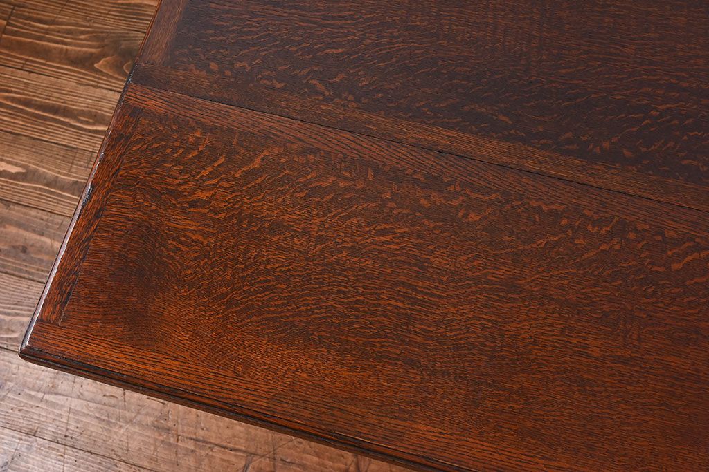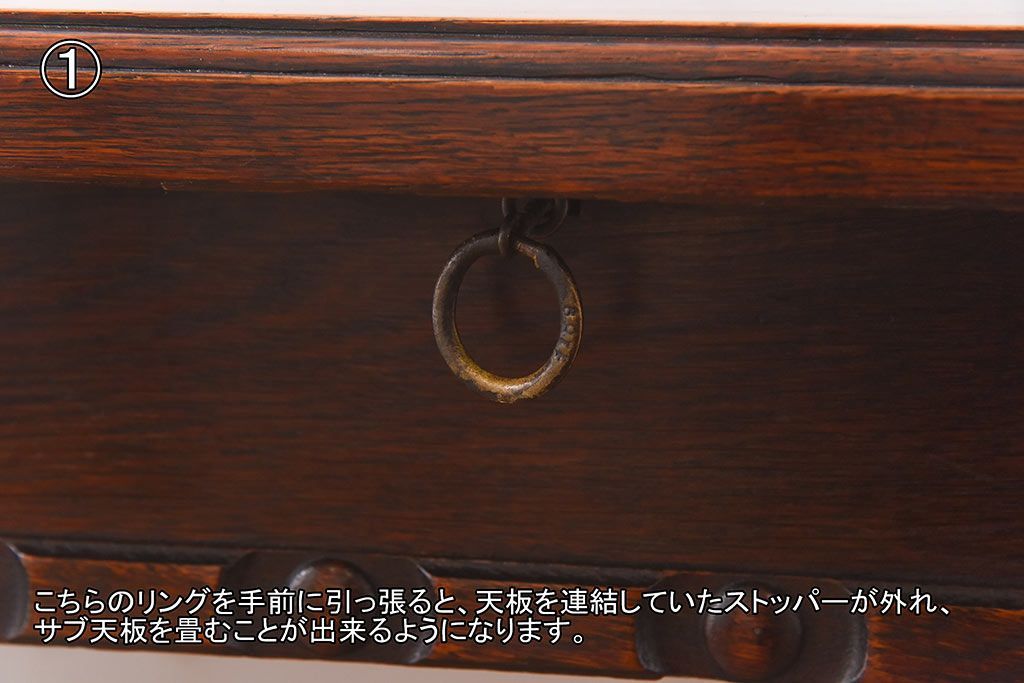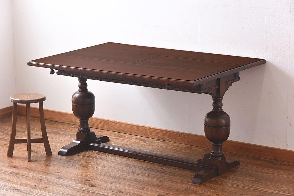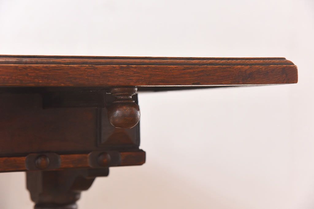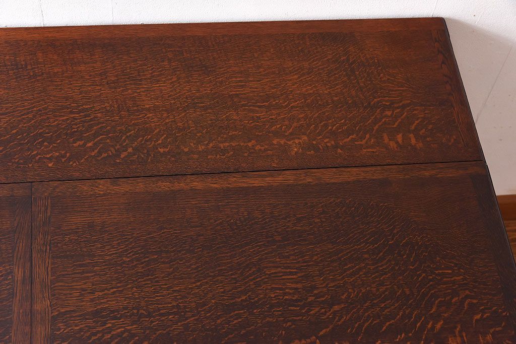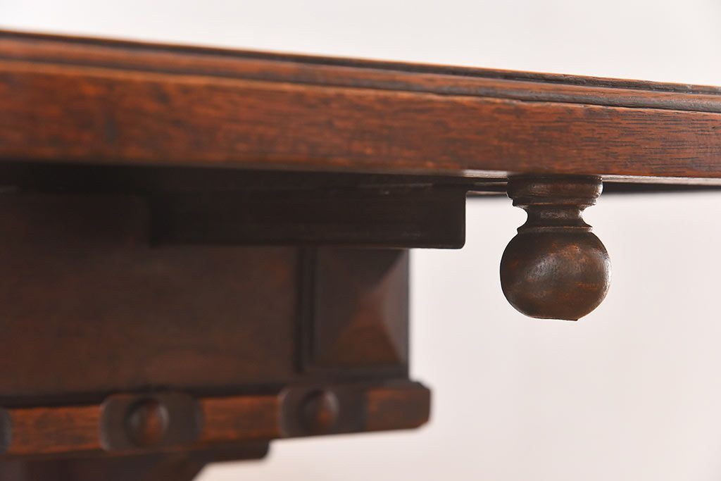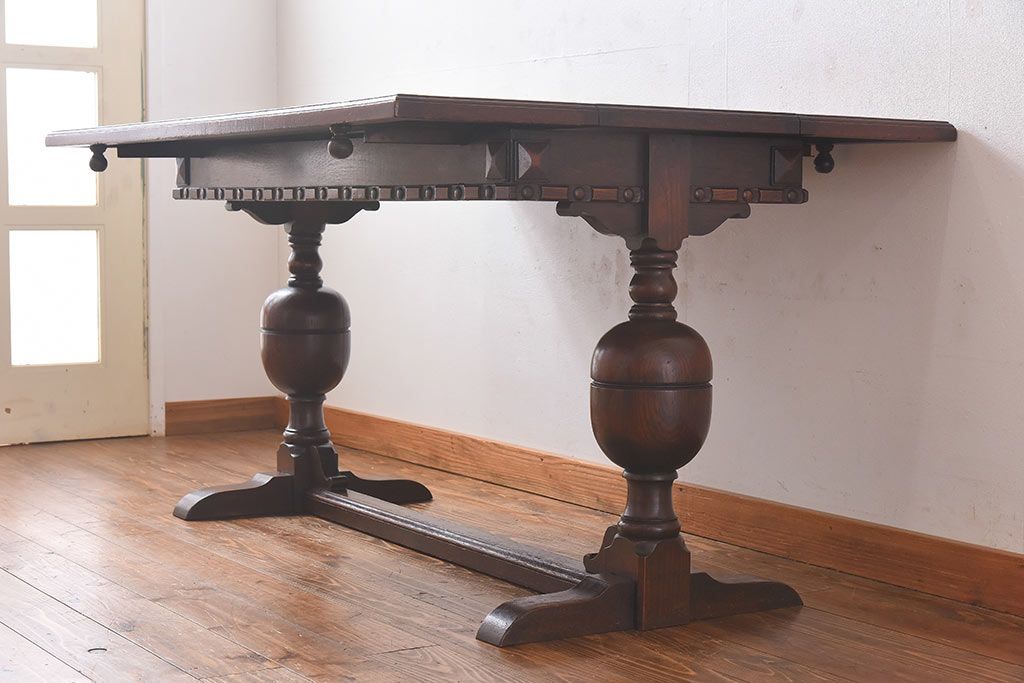 アンティーク家具 イギリスアンティーク オーク材 奥行を伸ばせる珍しいエクステンションダイニングテーブル(ドローリーフテーブル)です。