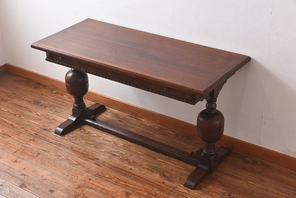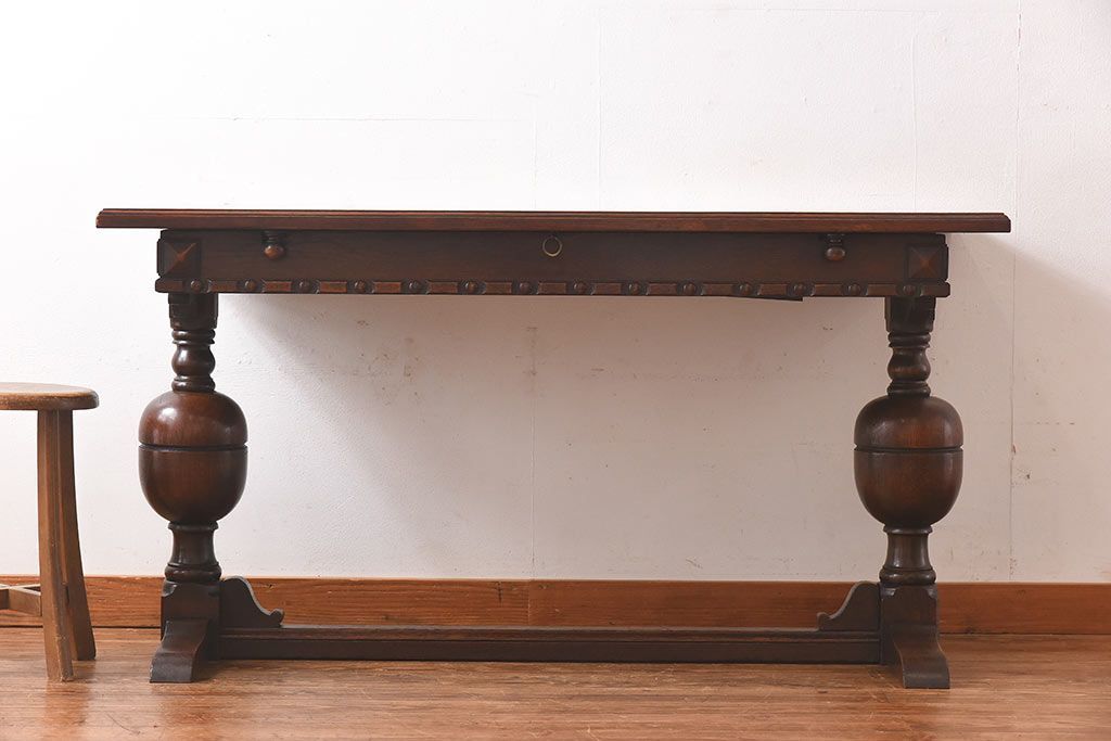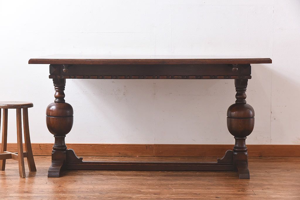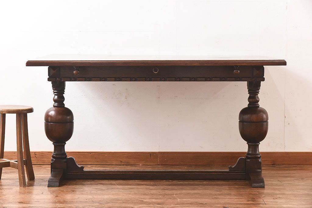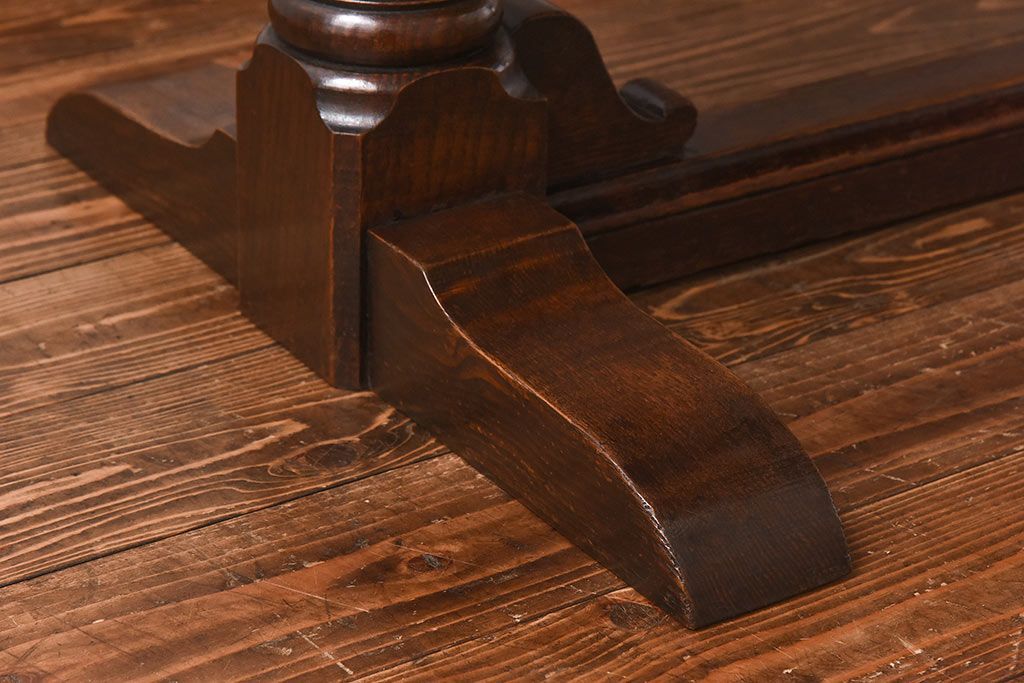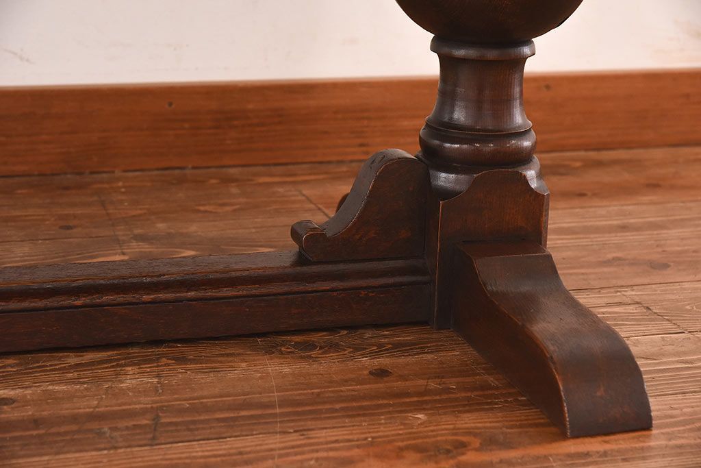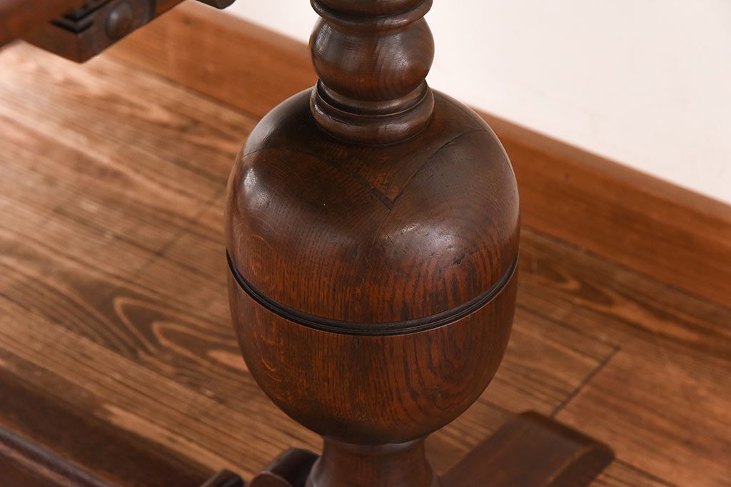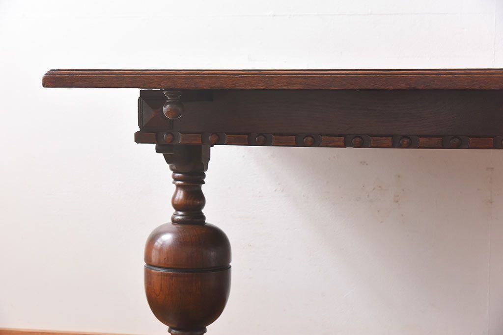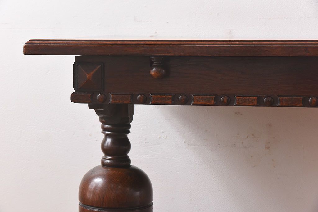 アンティーク家具 イギリスアンティーク オーク材 奥行を伸ばせる珍しいエクステンションダイニングテーブル(ドローリーフテーブル)です。