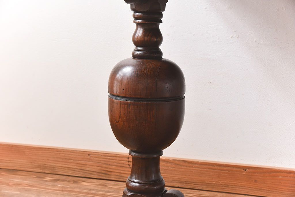 ラフジュ工房> テーブル> 2人用ダイニングテーブル > アンティーク家具 イギリスアンティーク オーク材 奥行を伸ばせる珍しいエクステンションダイニングテーブル(ドローリーフテーブル)です。