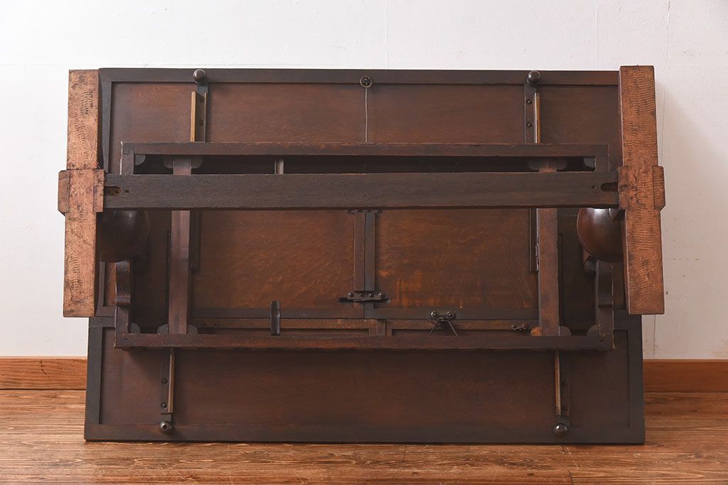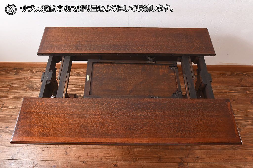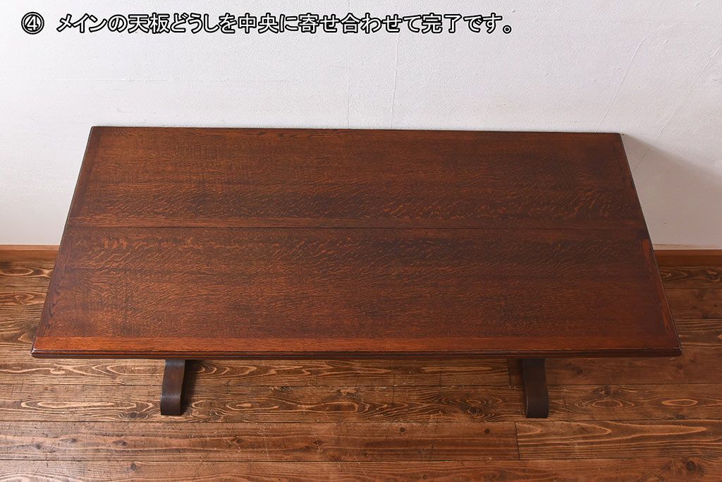 ラフジュ工房> テーブル> エクステンションテーブル > アンティーク家具 イギリスアンティーク オーク材 奥行を伸ばせる珍しいエクステンションダイニングテーブル(ドローリーフテーブル)です。