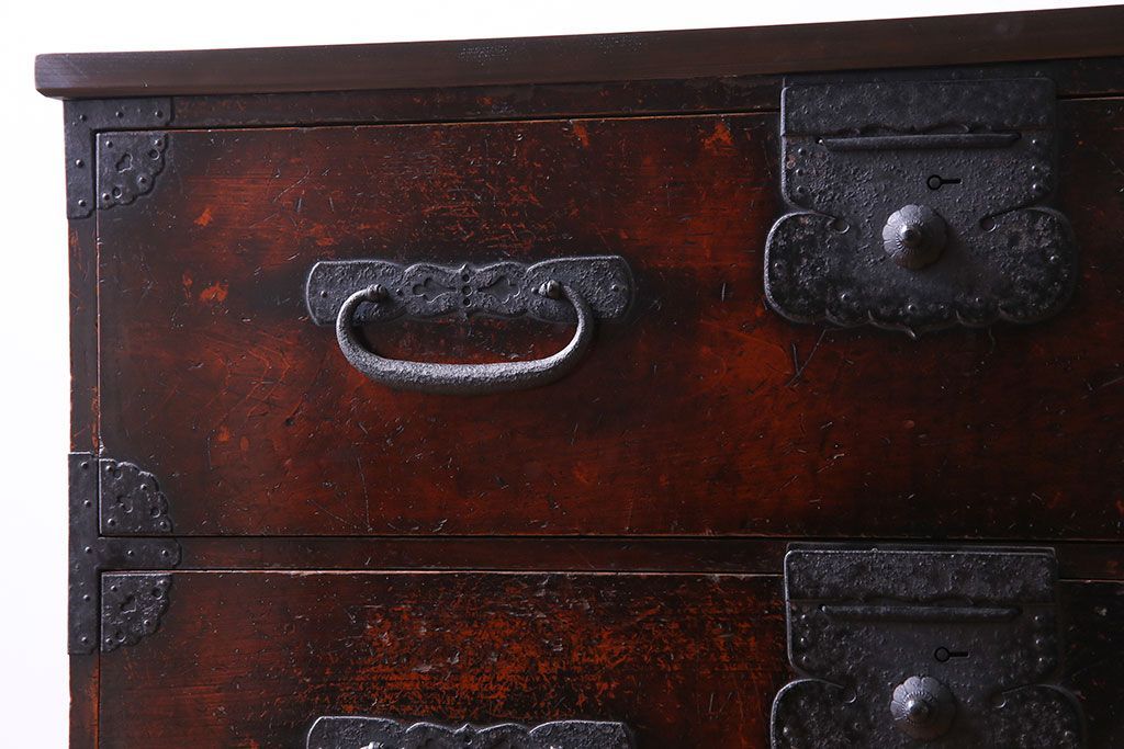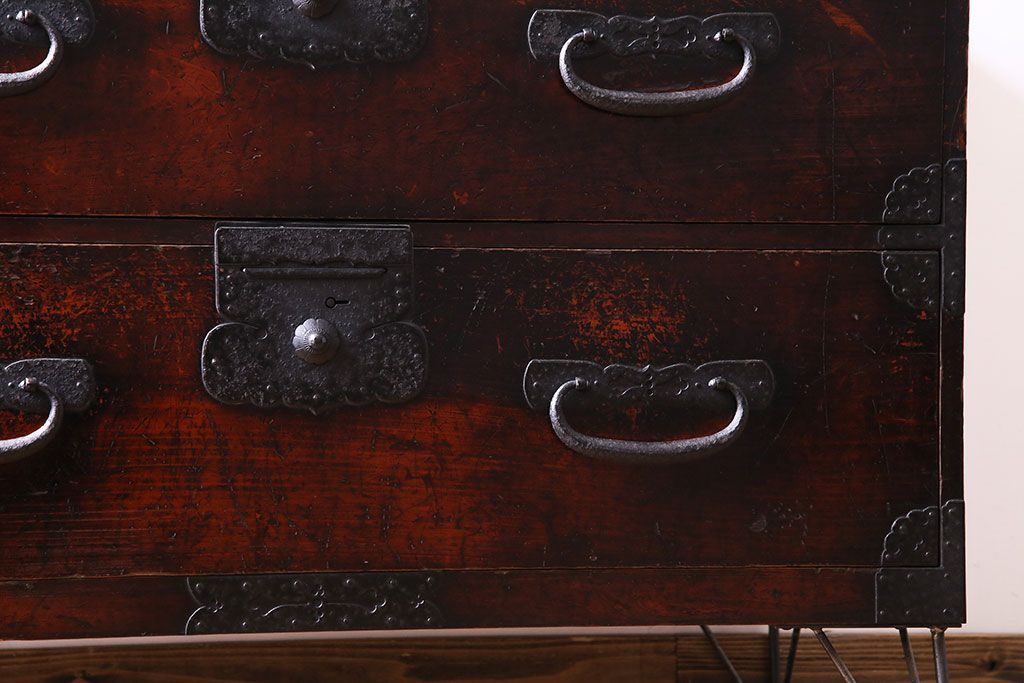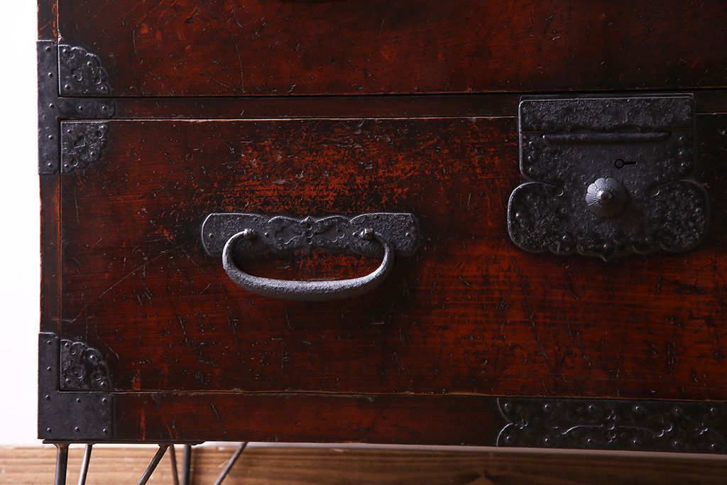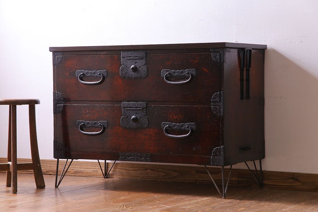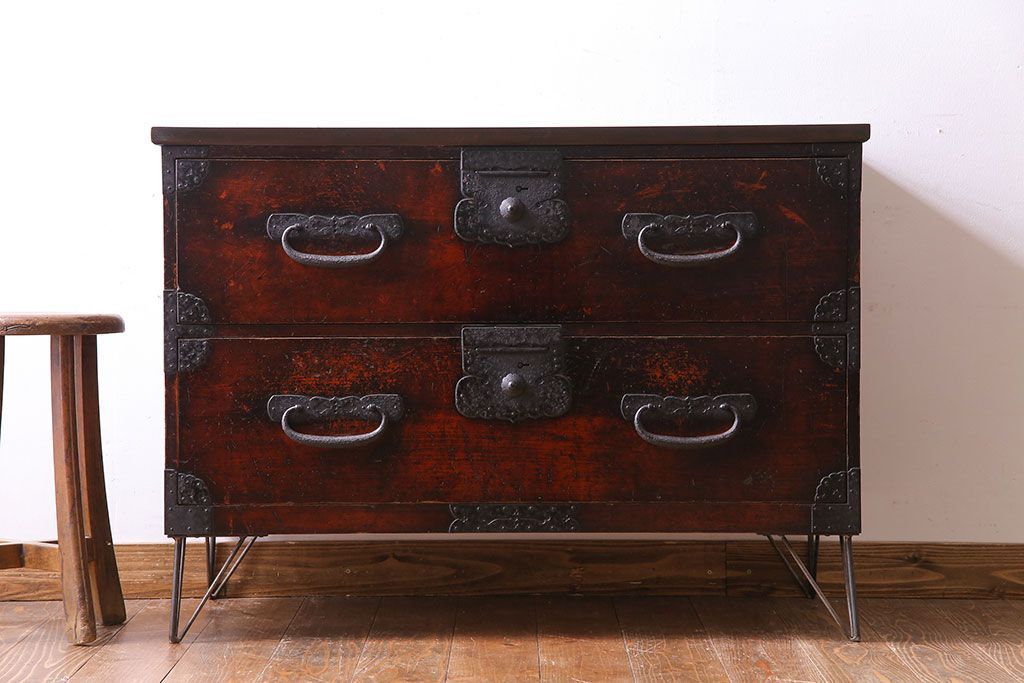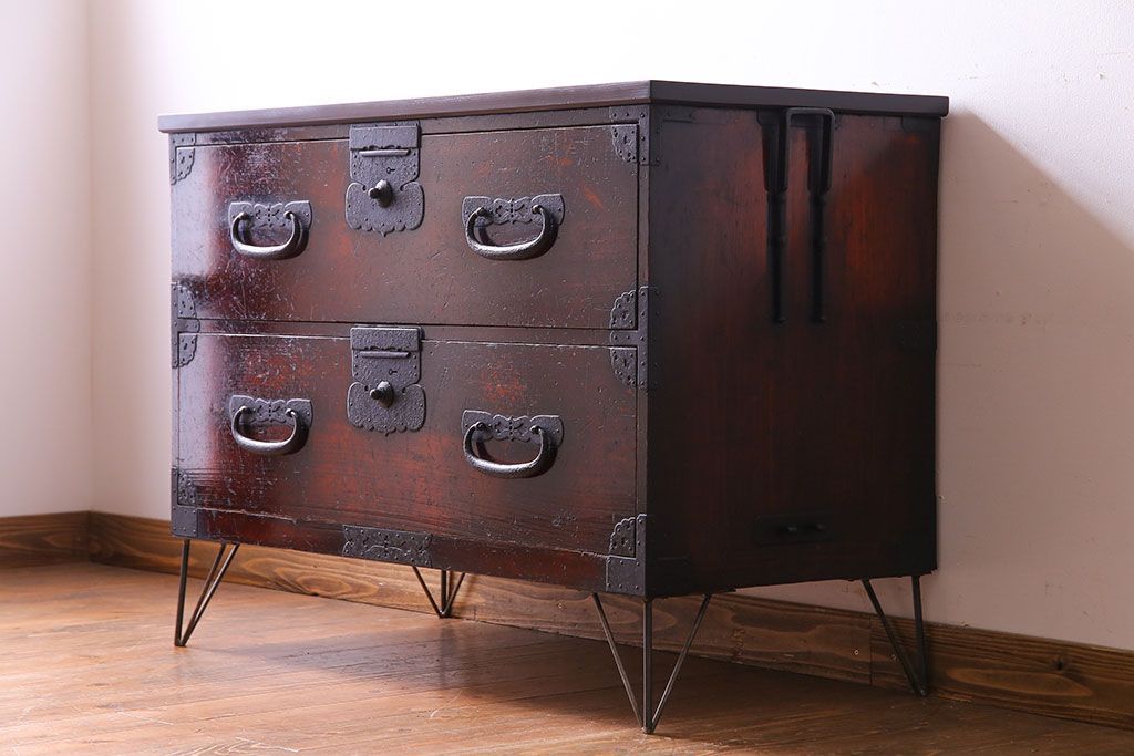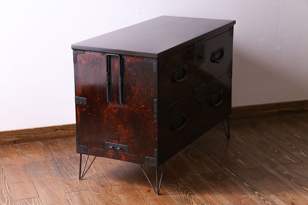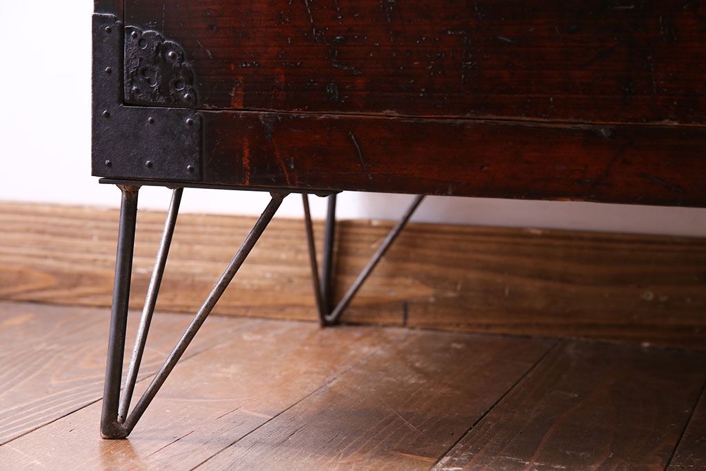 アンティーク家具 和製アンティーク 鉄脚付き 和モダンなローチェスト(箪笥ローボード、衣装箪笥、引き出し)