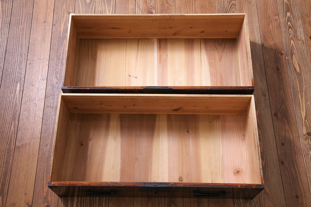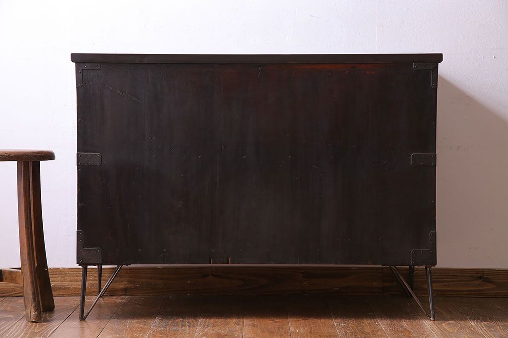ラフジュ工房> 和箪笥> 衣装箪笥 > アンティーク家具 和製アンティーク 鉄脚付き 和モダンなローチェスト(箪笥ローボード、衣装箪笥、引き出し)