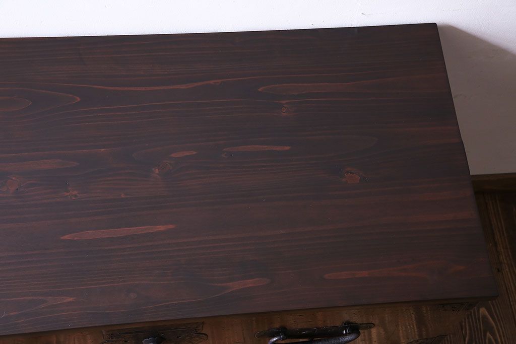 ラフジュ工房> キャビネット・戸棚> テレビ台・ローボード > アンティーク家具 和製アンティーク 鉄脚付き 和モダンなローチェスト(箪笥ローボード、衣装箪笥、引き出し)