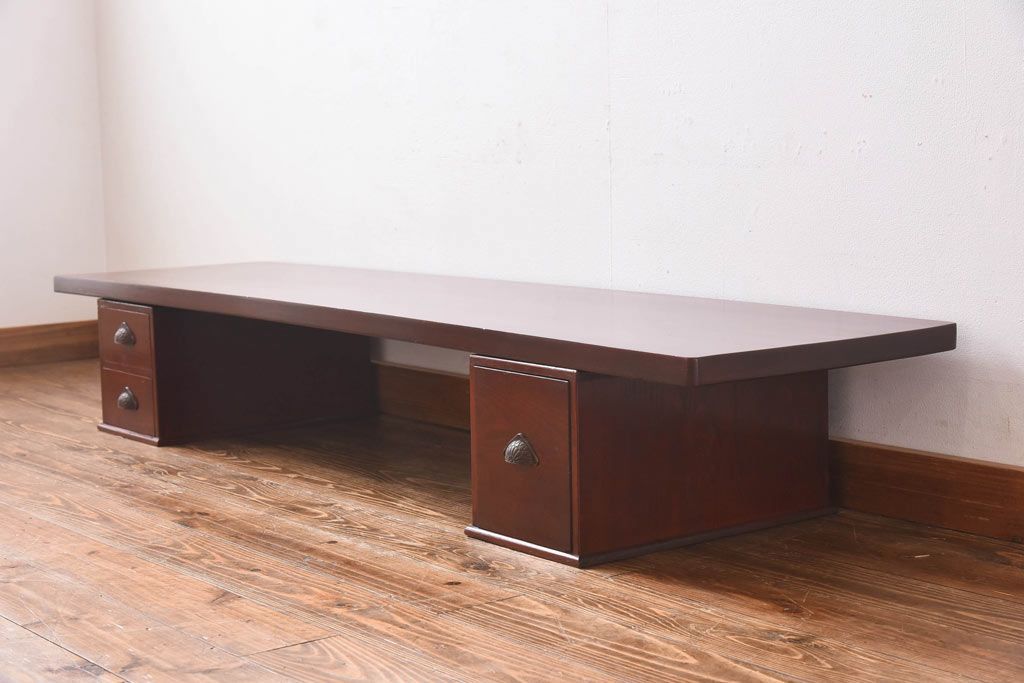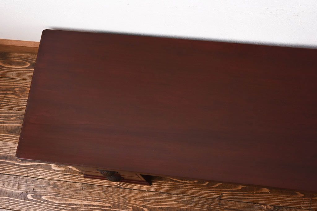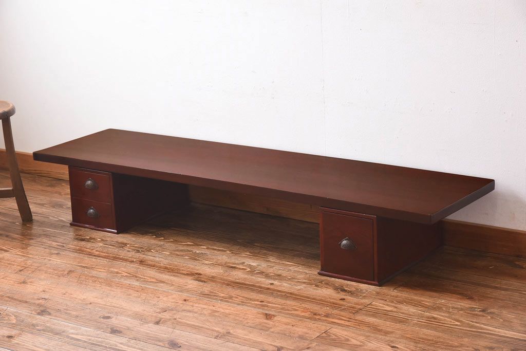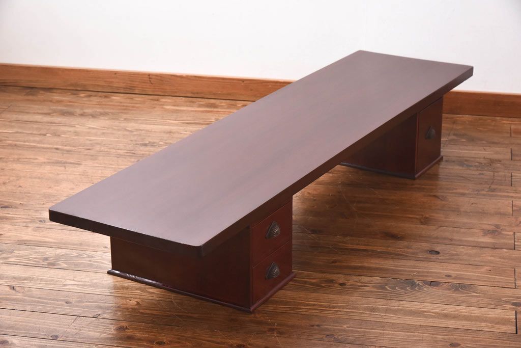 アンティーク家具 和製アンティーク 天板一枚板 小引き出し脚 木の風合いが味わい深い裁ち板(ローテーブル、作業台)