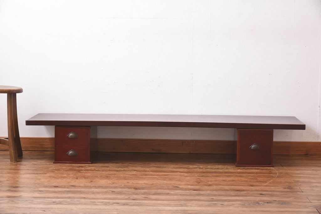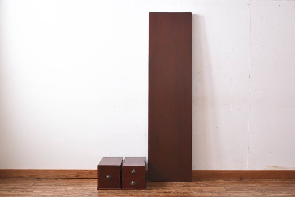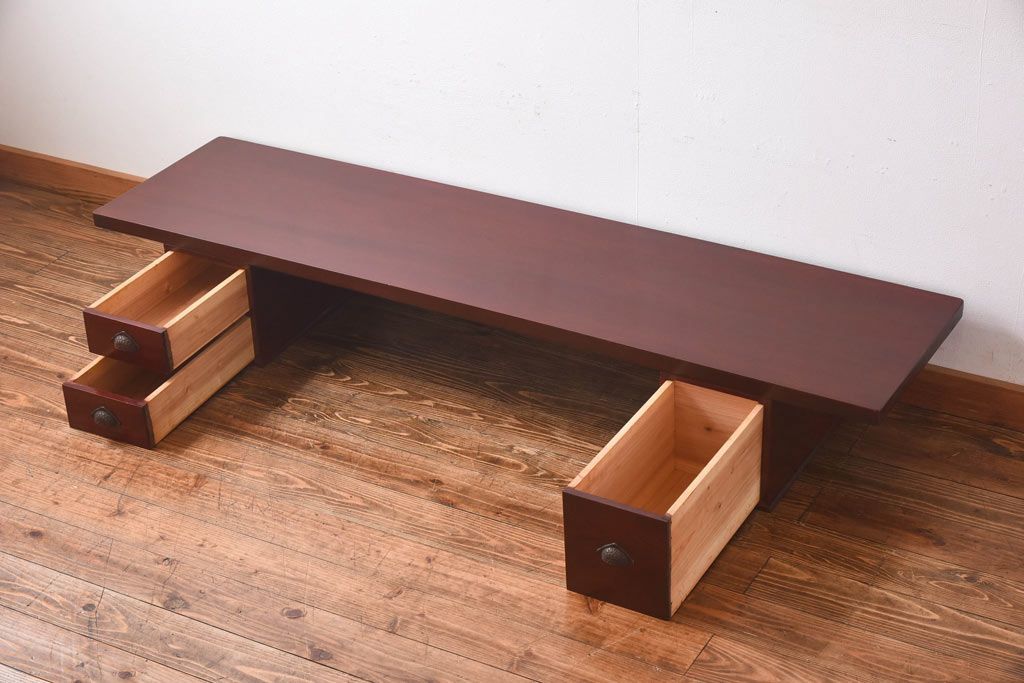 和製アンティーク 天板一枚板 小引き出し脚 木の風合いが味わい深い裁ち板(ローテーブル、作業台)です。