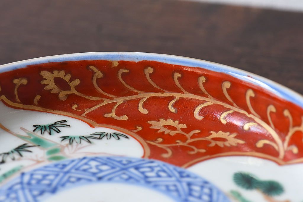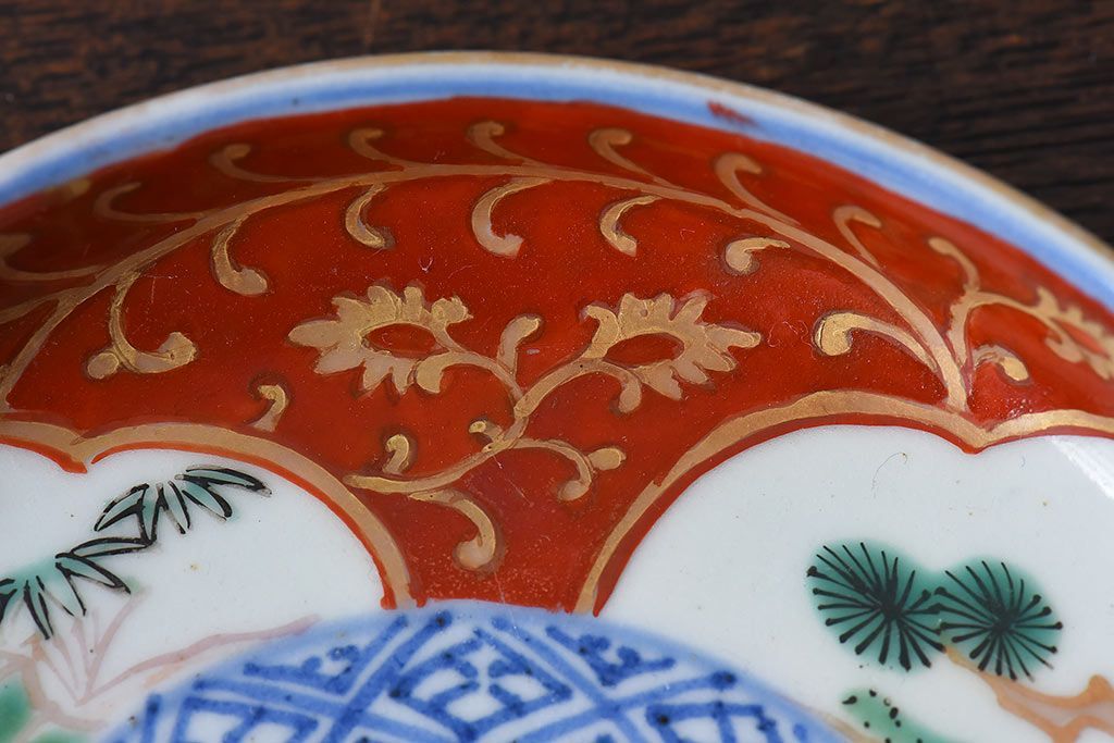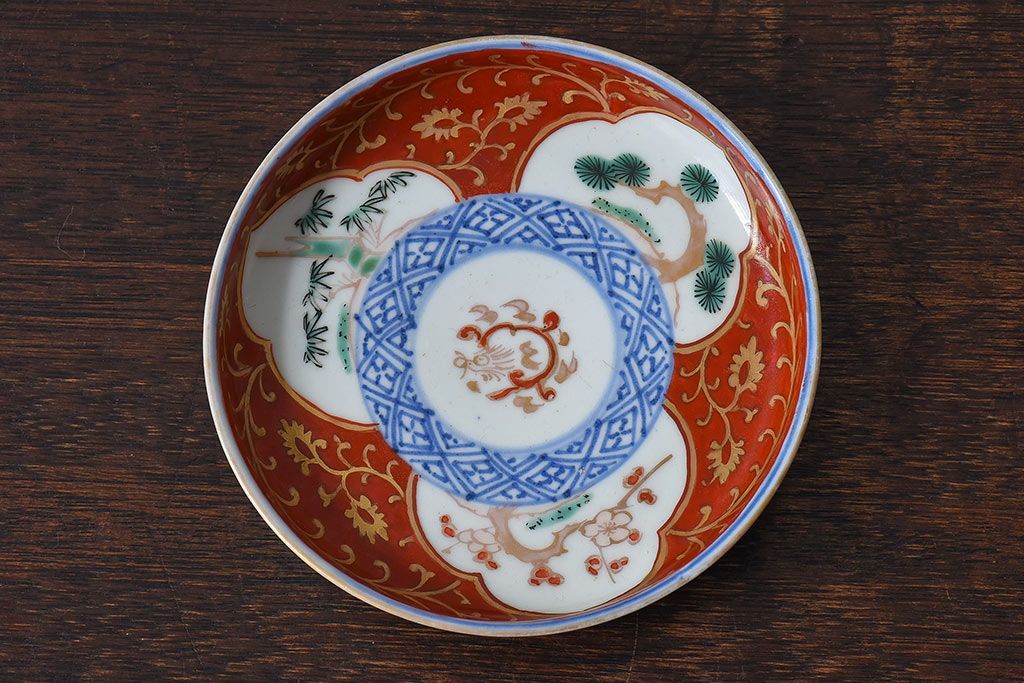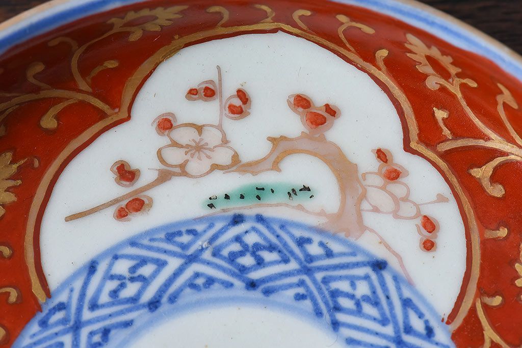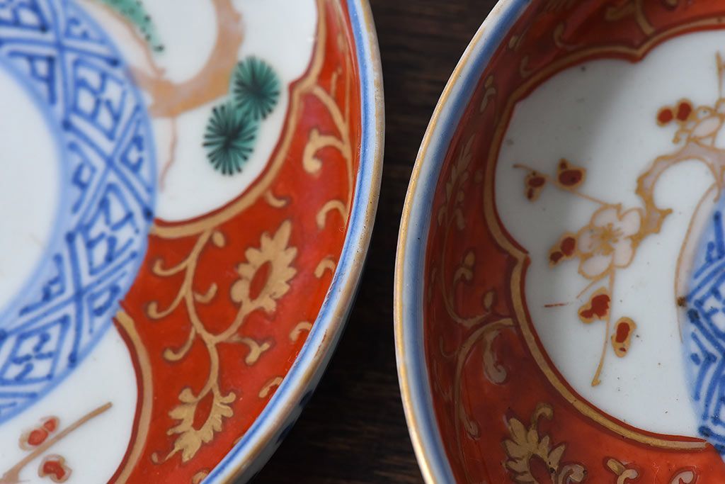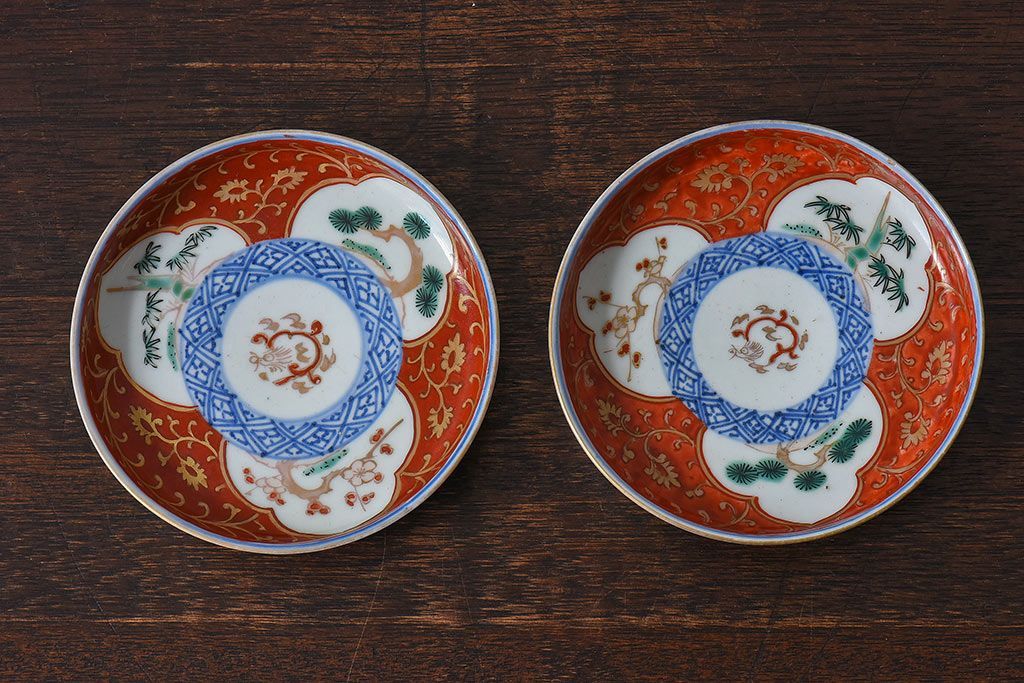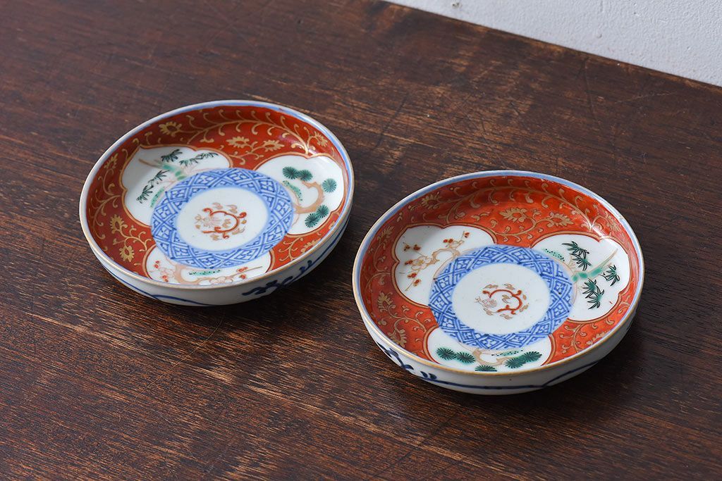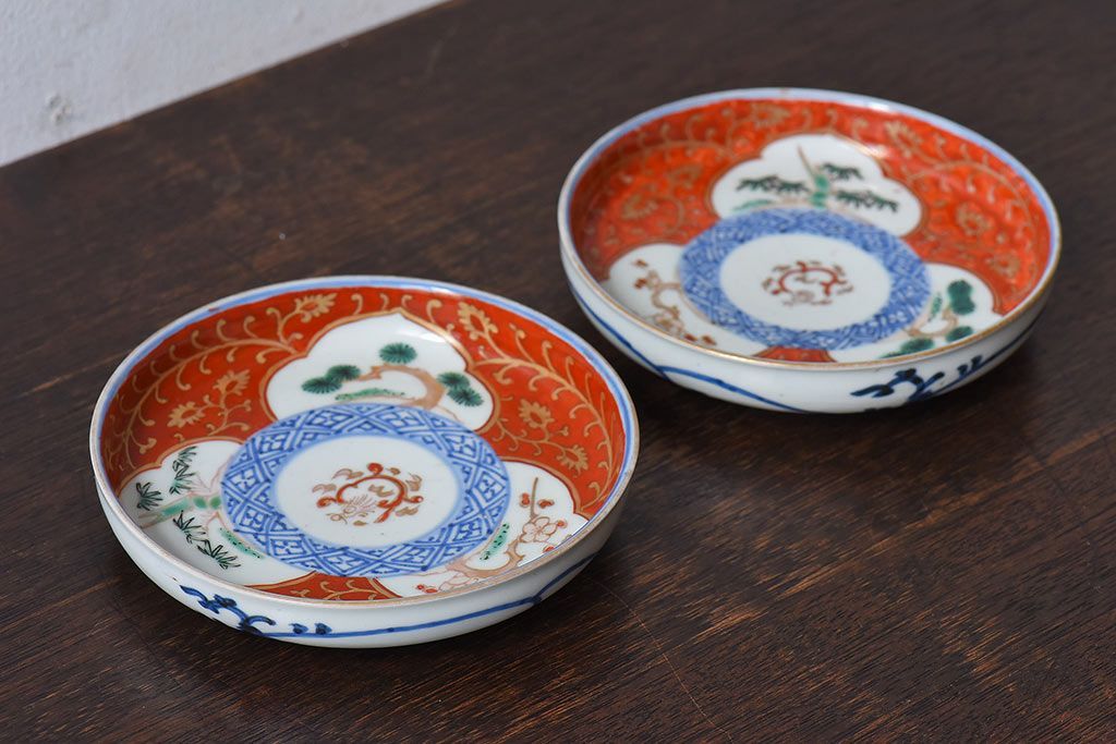 ラフジュ工房> 骨董・美術品> 骨董-陶磁器 > アンティーク雑貨 江戸期 古伊万里 赤絵染付小皿(和食器)2枚セット(2)