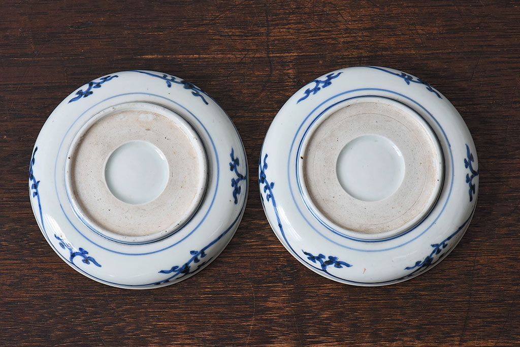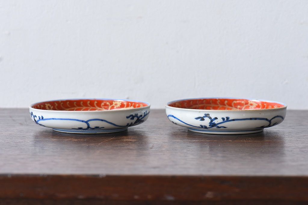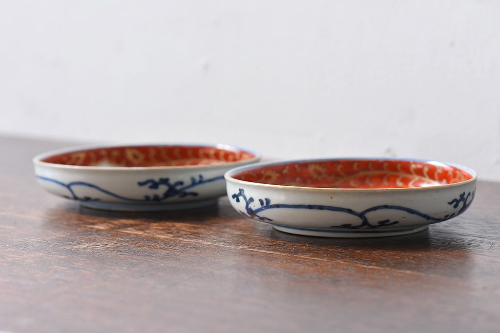アンティーク雑貨 江戸期 古伊万里 赤絵染付小皿(和食器)2枚セット(2)