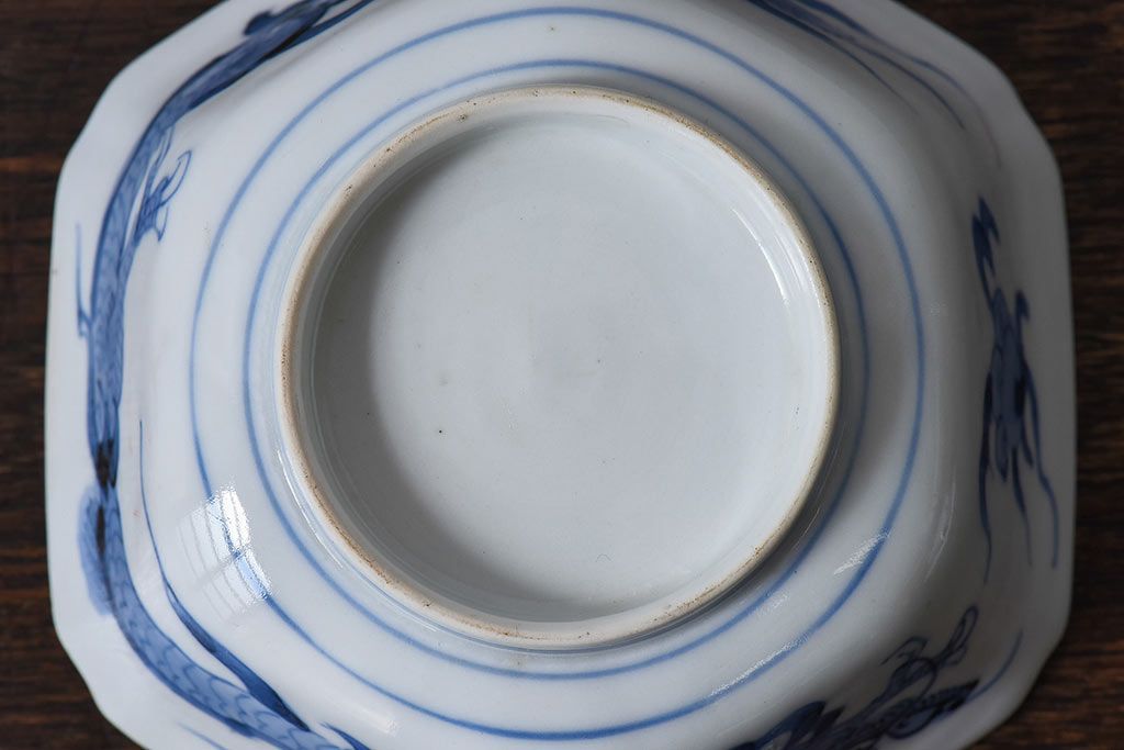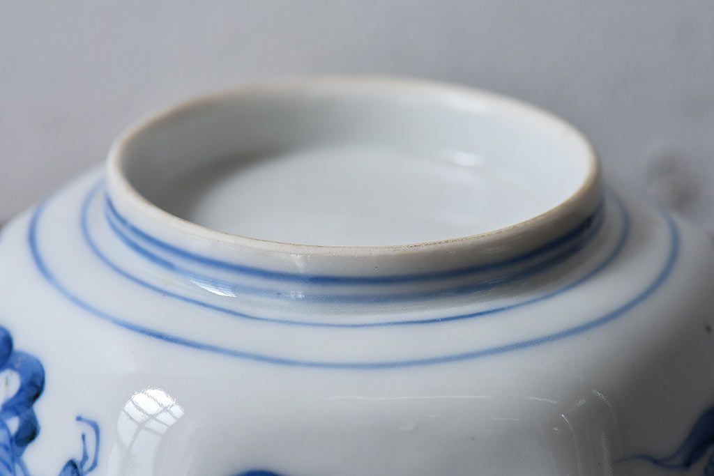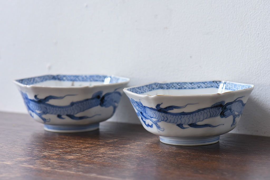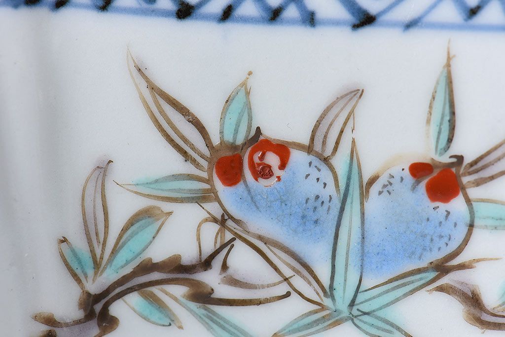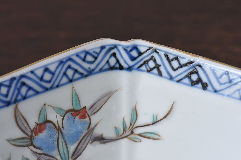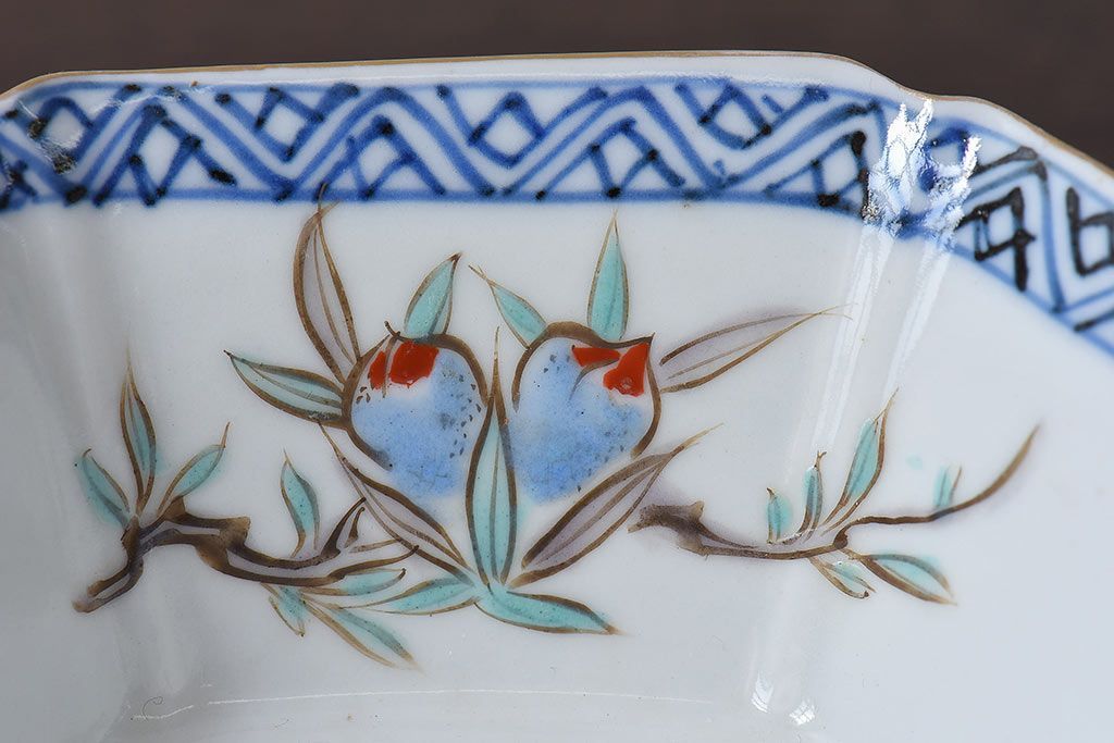 アンティーク雑貨 江戸期 古伊万里 色絵柘榴文 染付向付(和食器)2客セット(2)