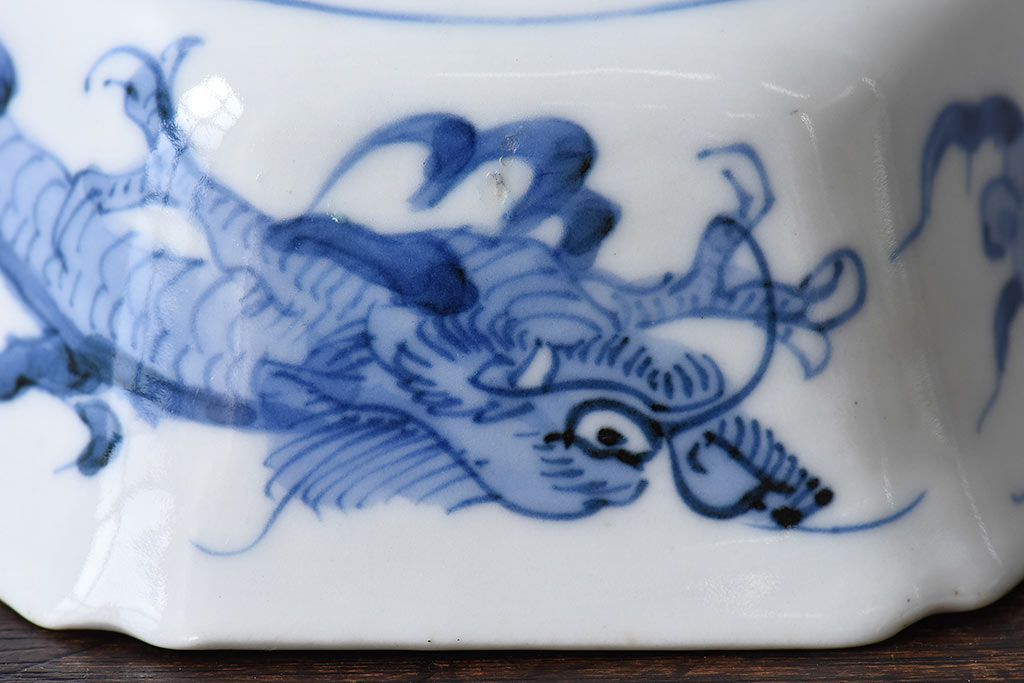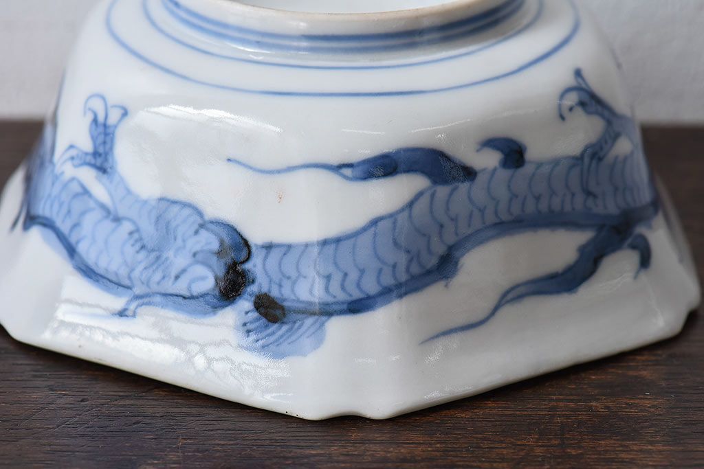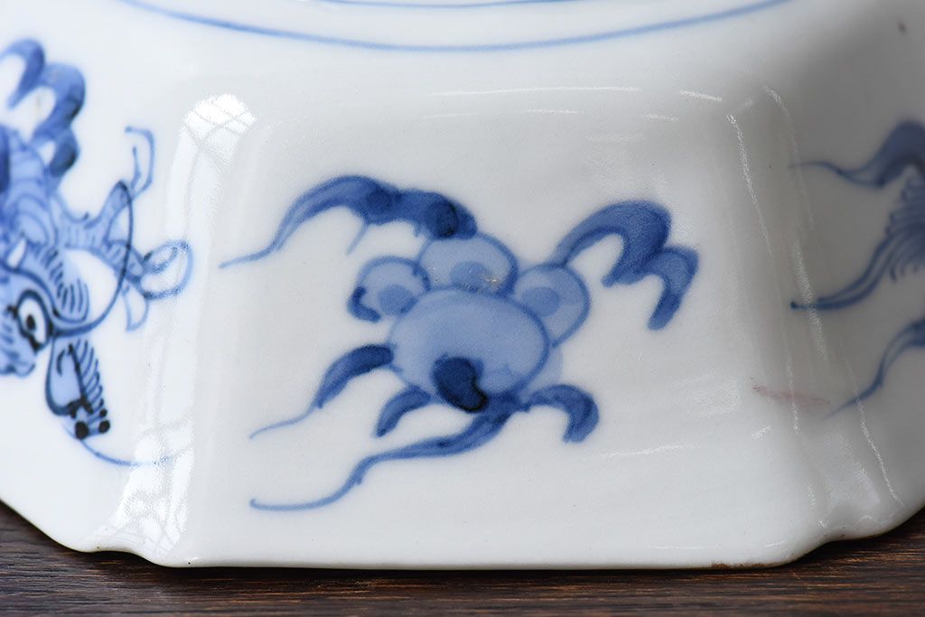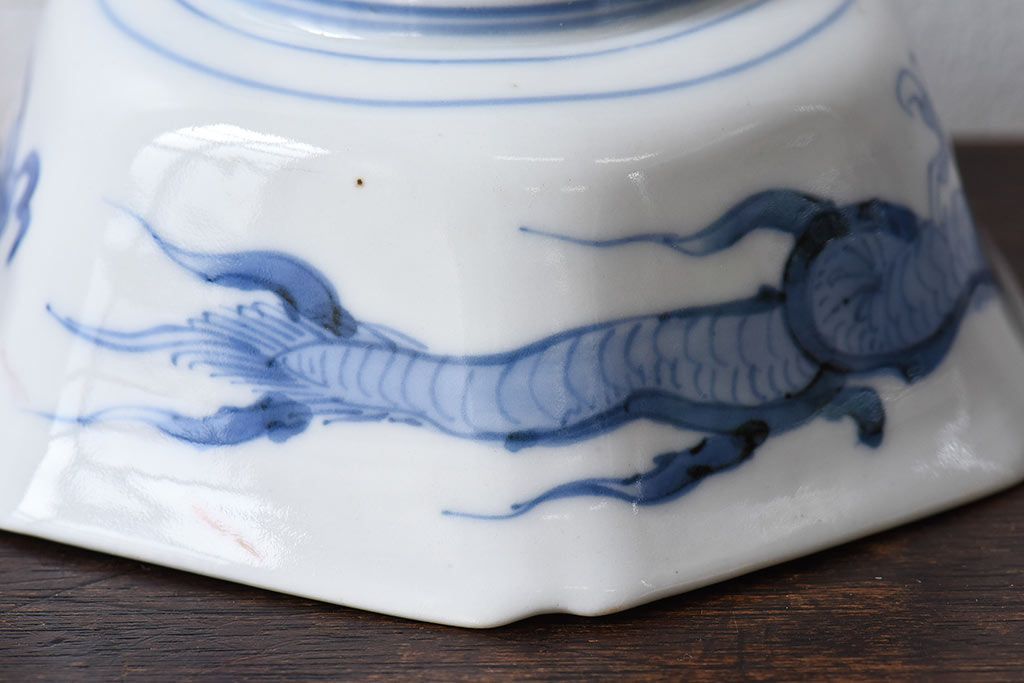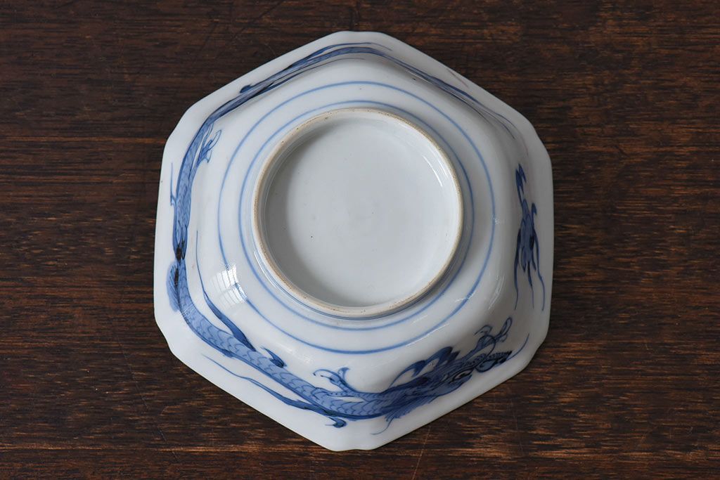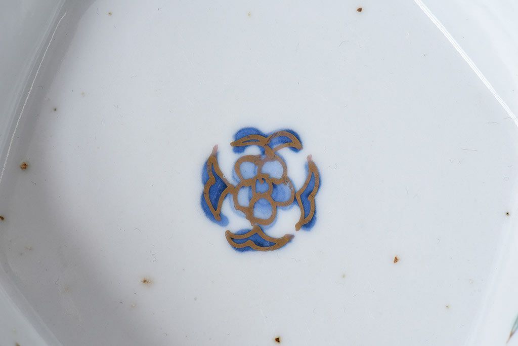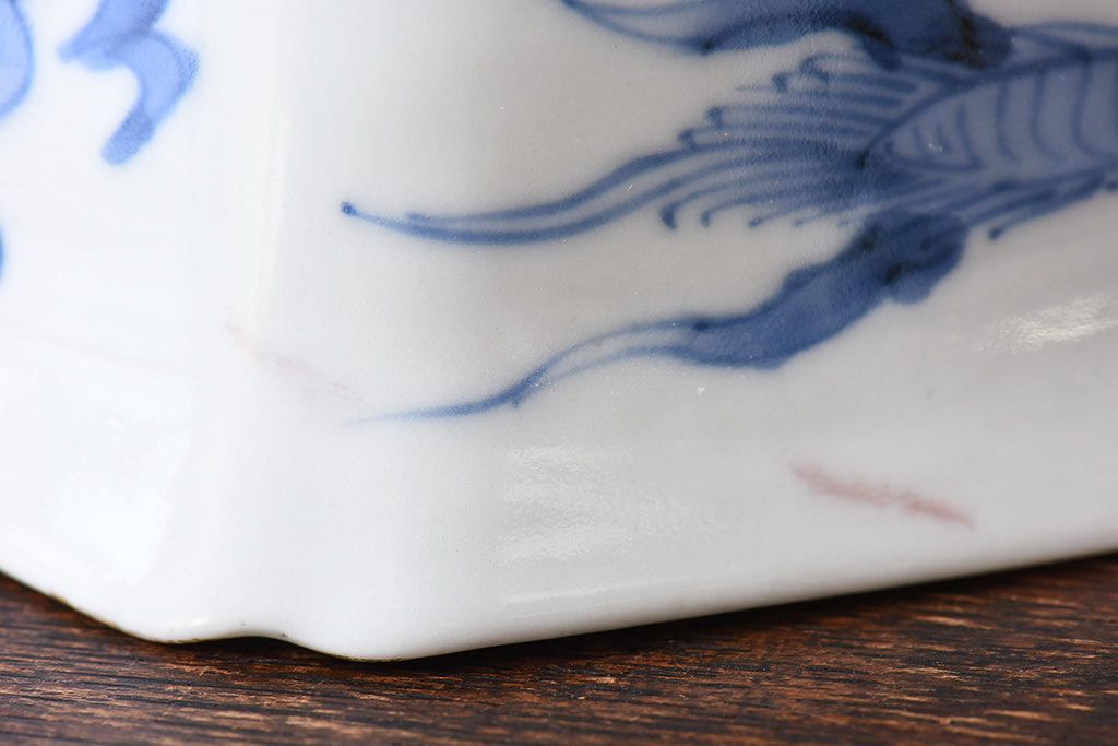 アンティーク雑貨 江戸期 古伊万里 色絵柘榴文 染付向付(和食器)2客セット(2)