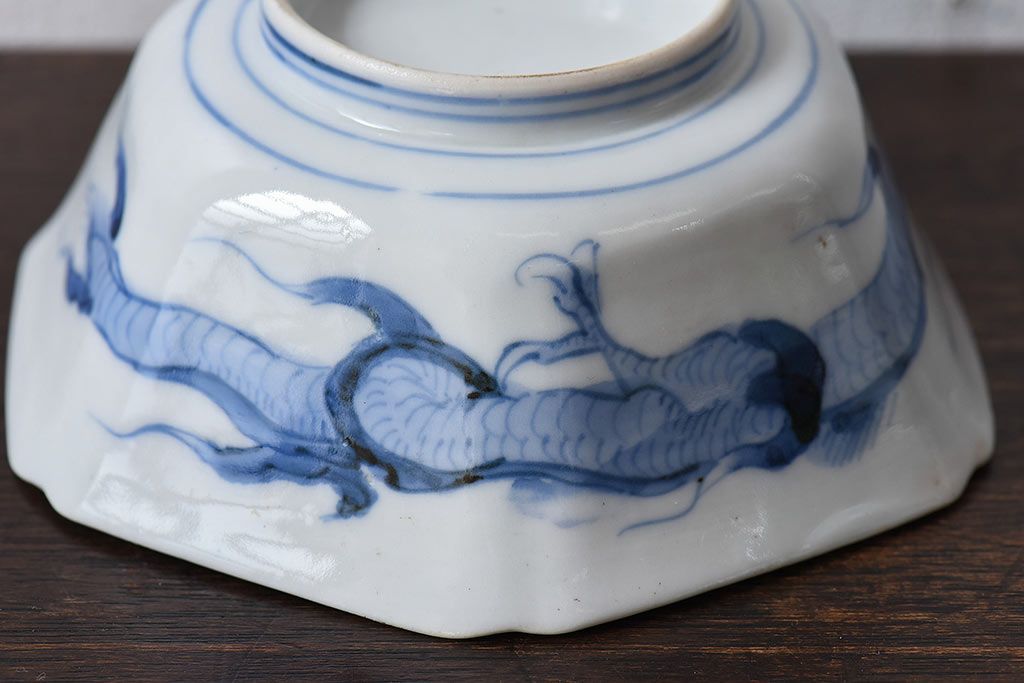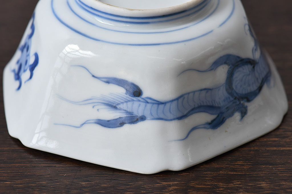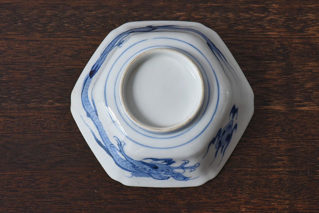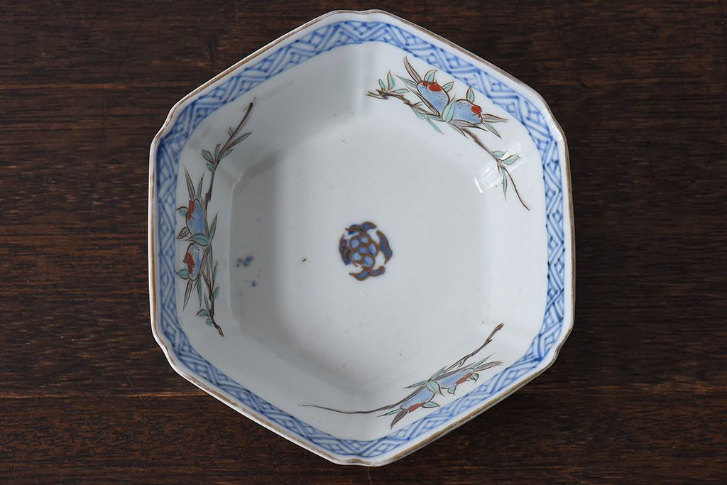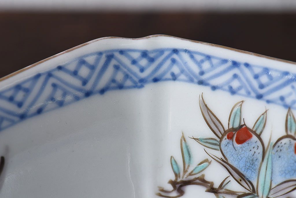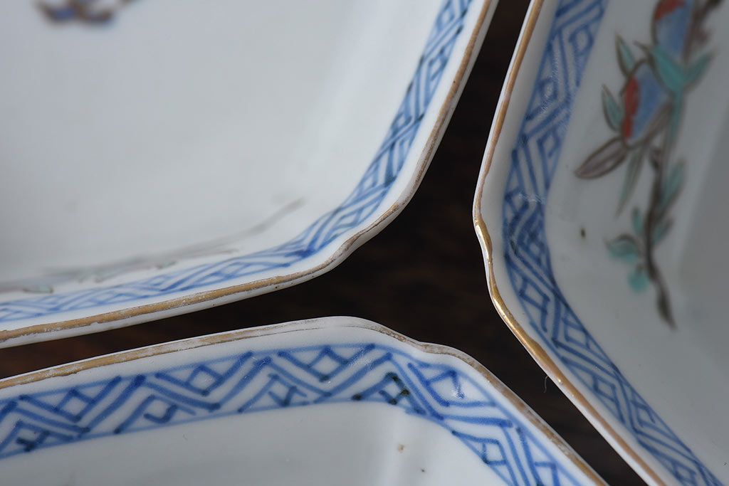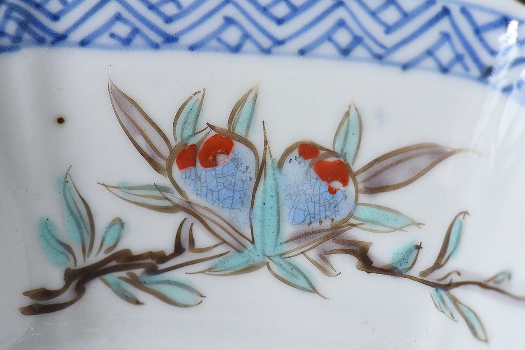 アンティーク雑貨 江戸期 古伊万里 色絵柘榴文 染付向付(和食器)3客セット