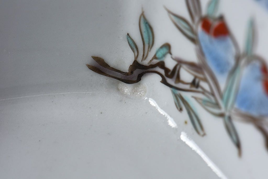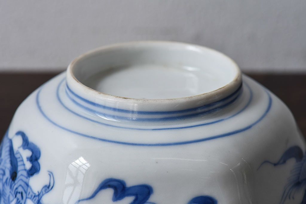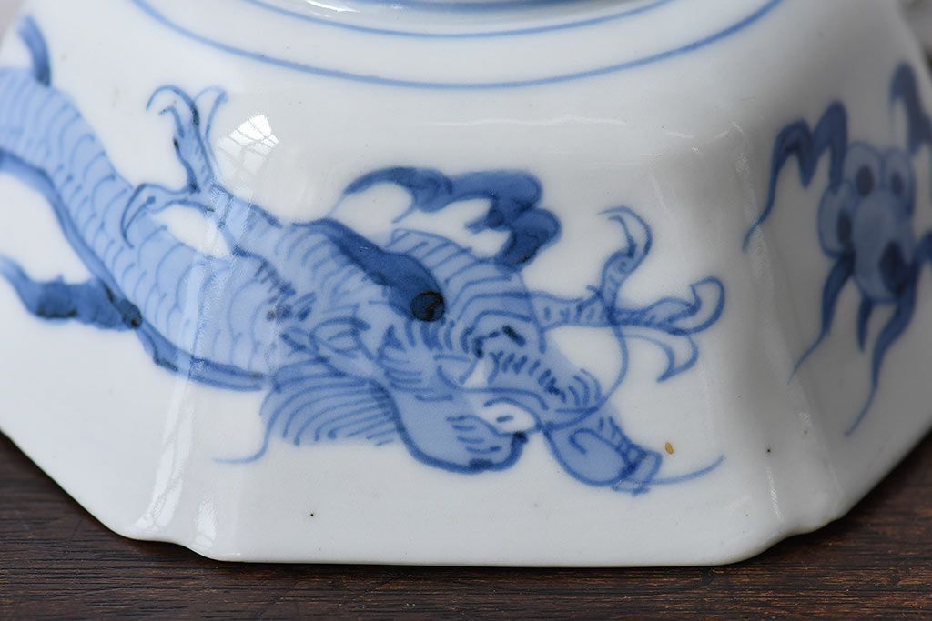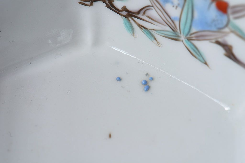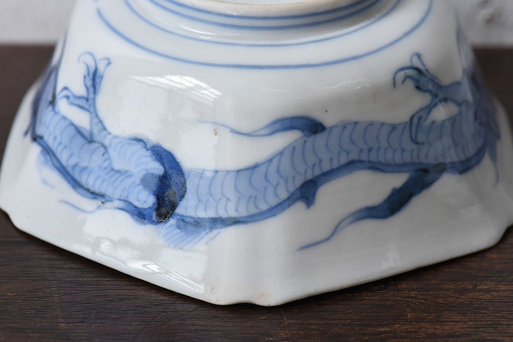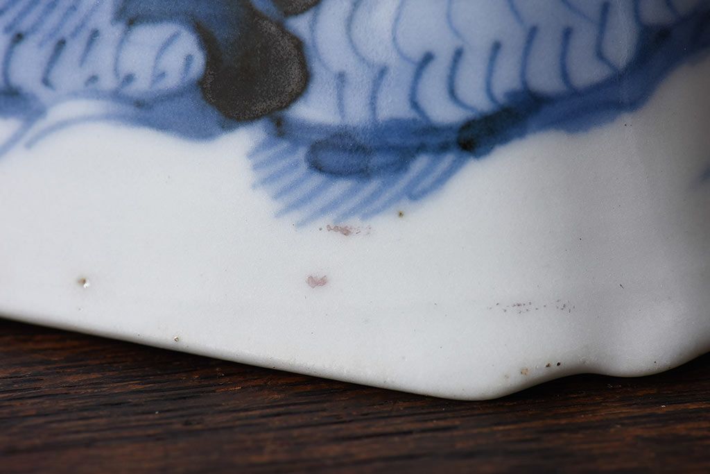 アンティーク雑貨 江戸期 古伊万里 色絵柘榴文 染付向付(和食器)3客セット