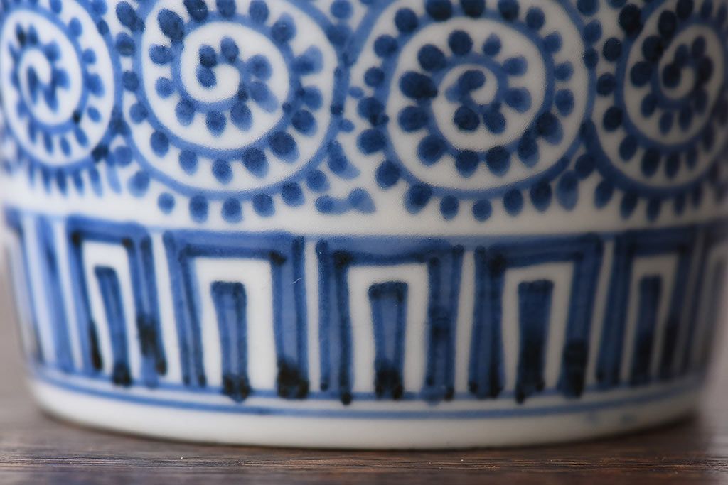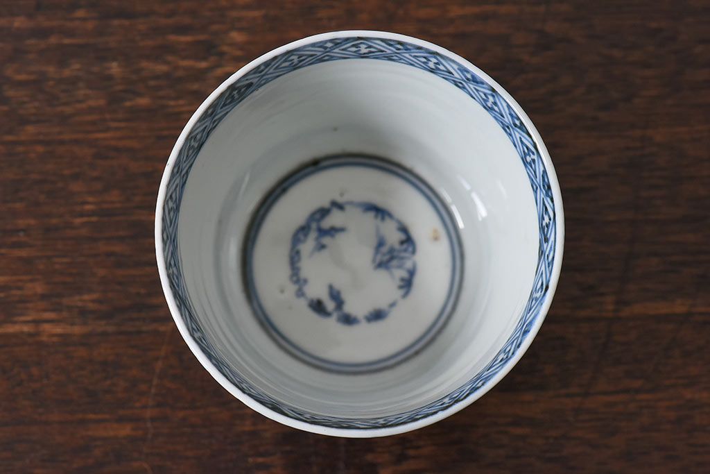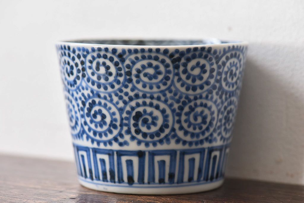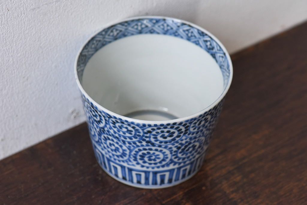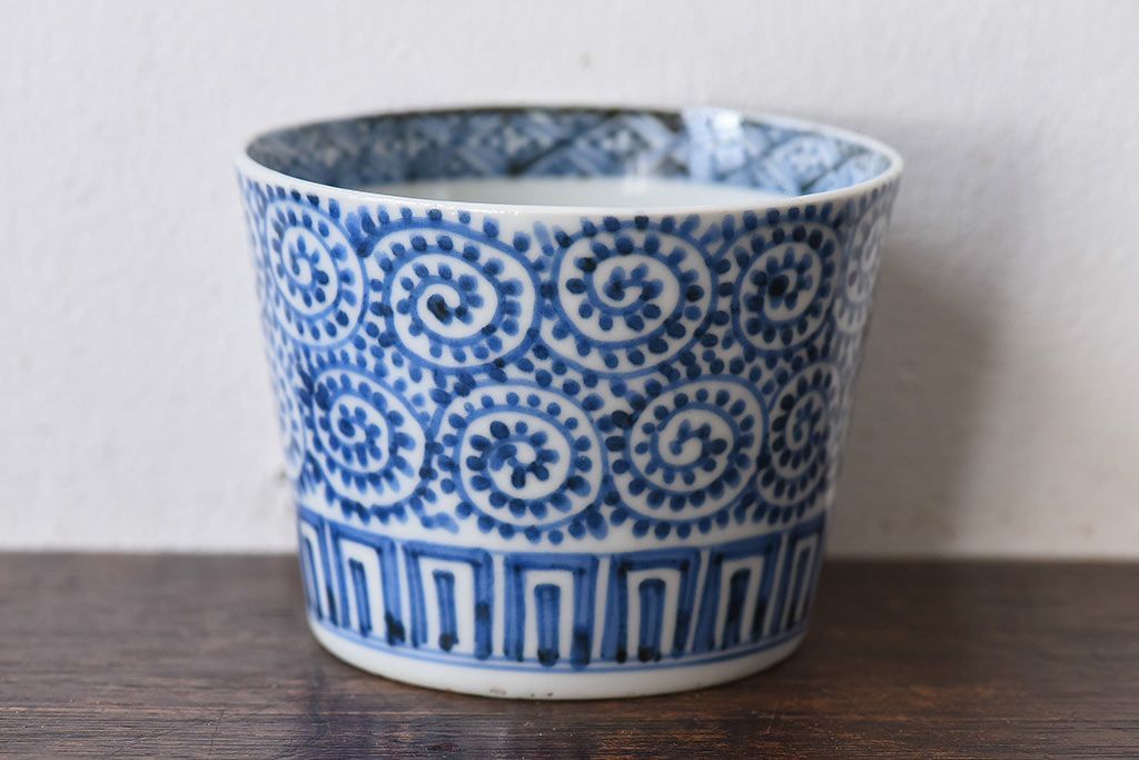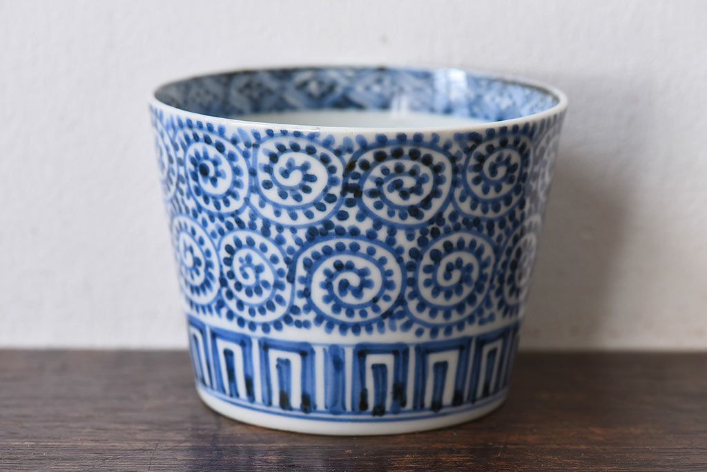 アンティーク雑貨 江戸期 古伊万里 染付 蛸唐草蕎麦猪口(和食器)(3)