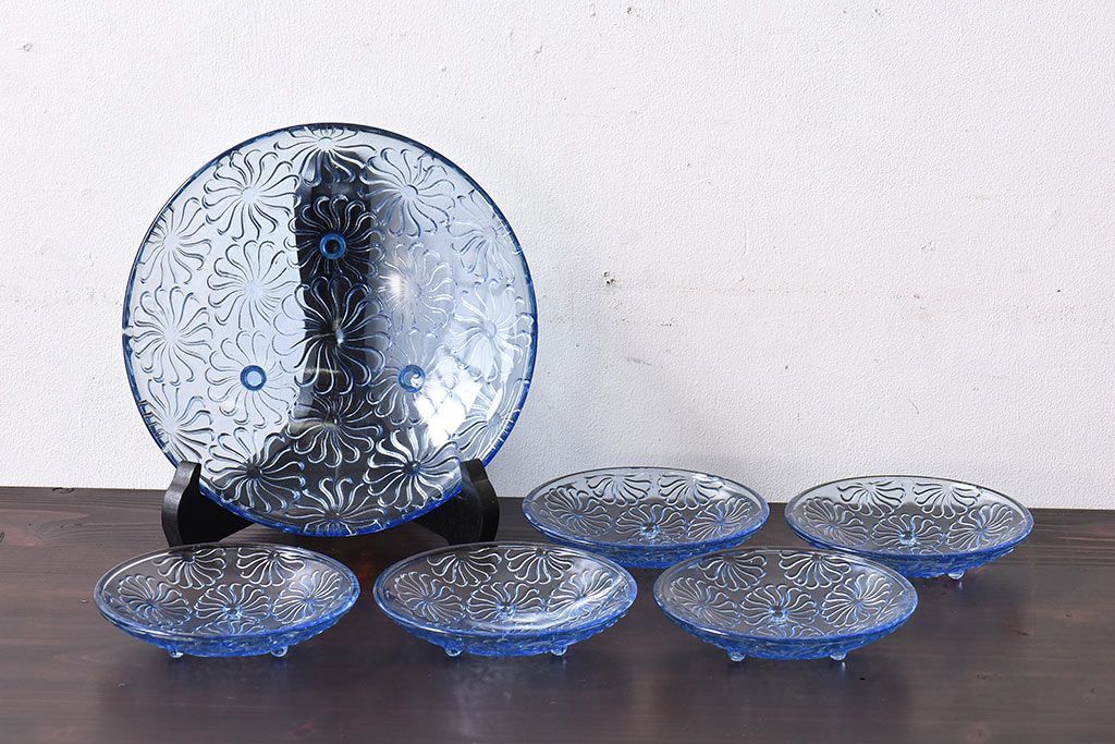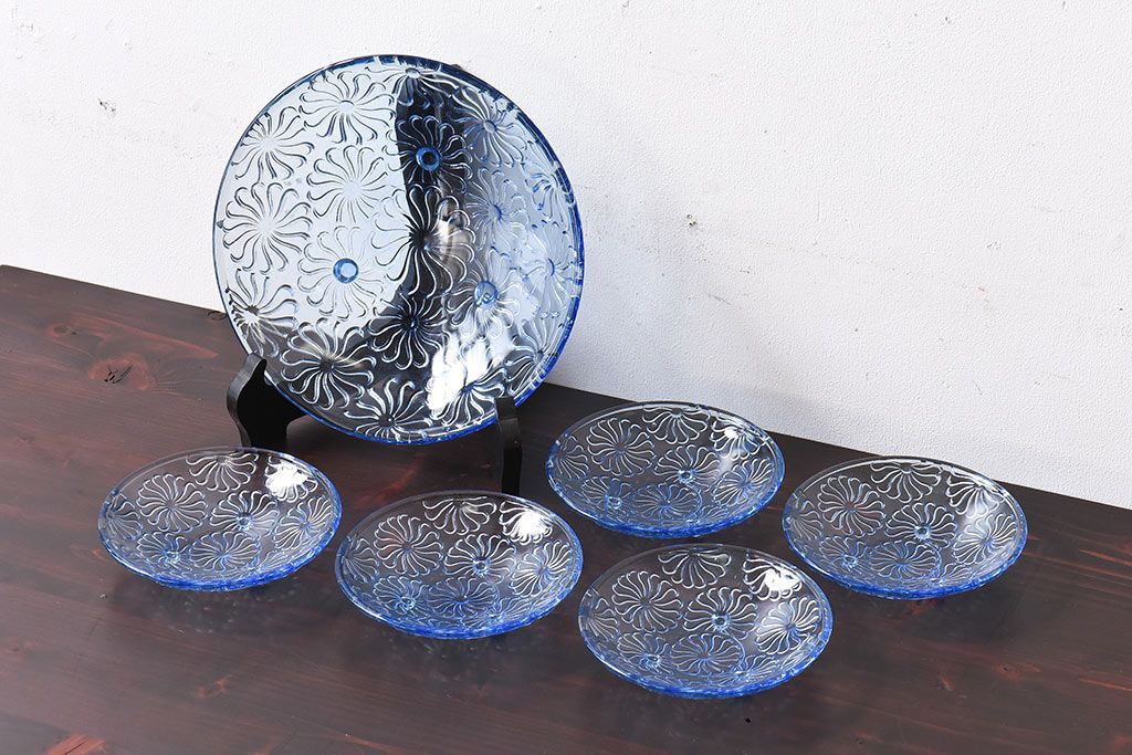 ラフジュ工房> 和食器・茶道具> 皿 > アンティーク雑貨 昭和レトロ マーガレットのような模様が愛らしいプレスガラス皿(和食器)6枚セット