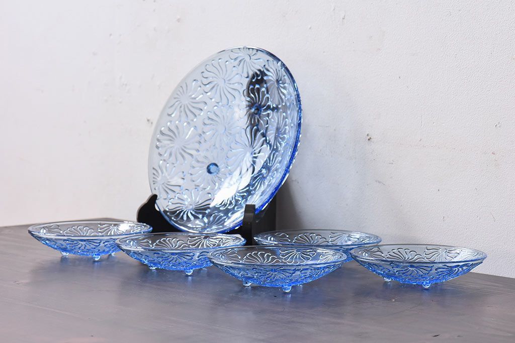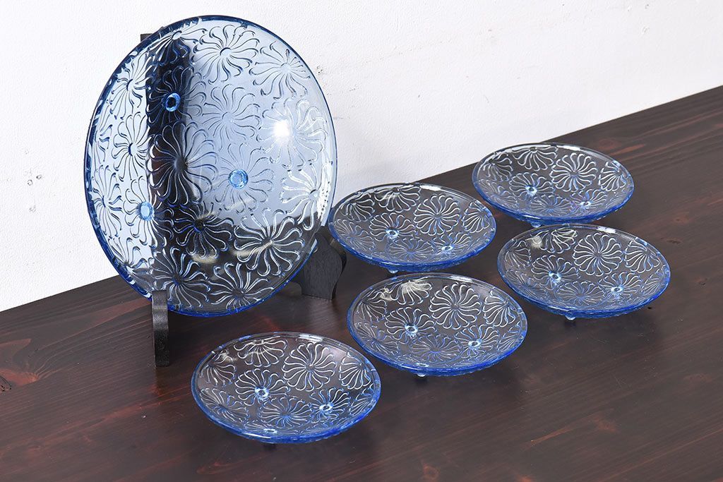 アンティーク雑貨 昭和レトロ マーガレットのような模様が愛らしいプレスガラス皿(和食器)6枚セット