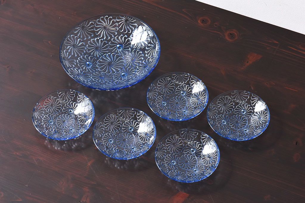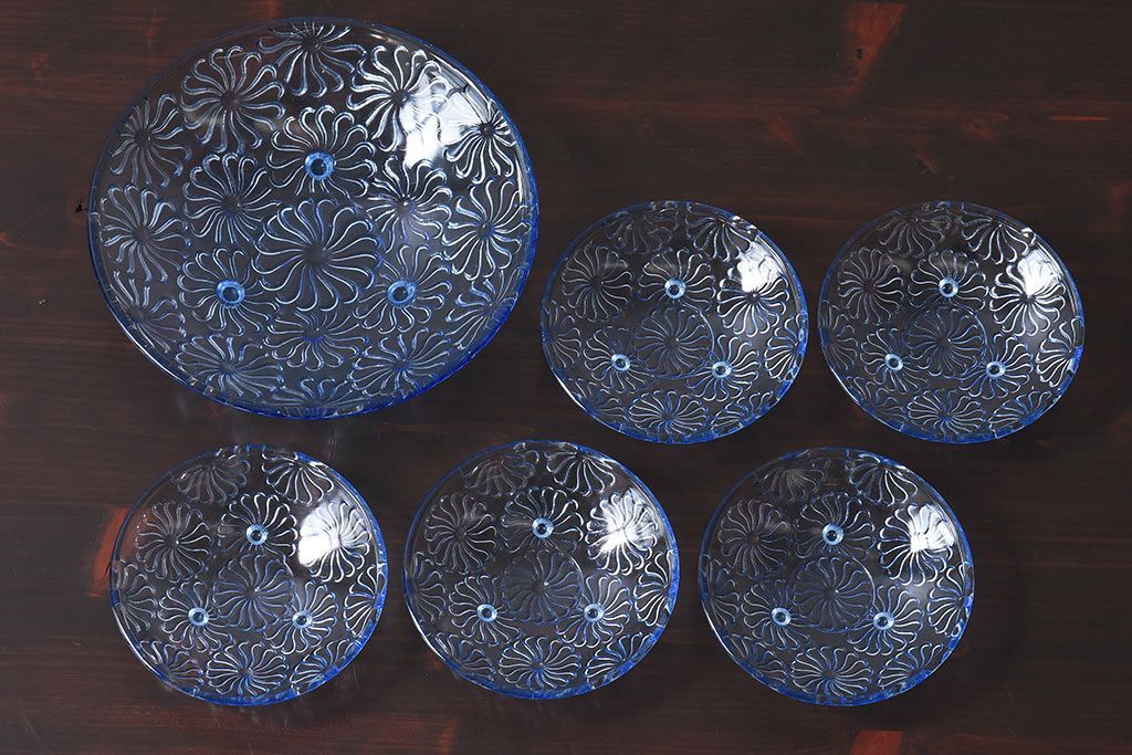 ラフジュ工房> 和食器・茶道具 > アンティーク雑貨 昭和レトロ マーガレットのような模様が愛らしいプレスガラス皿(和食器)6枚セット