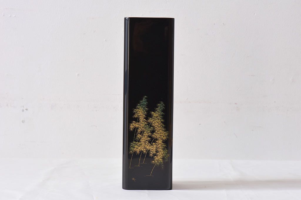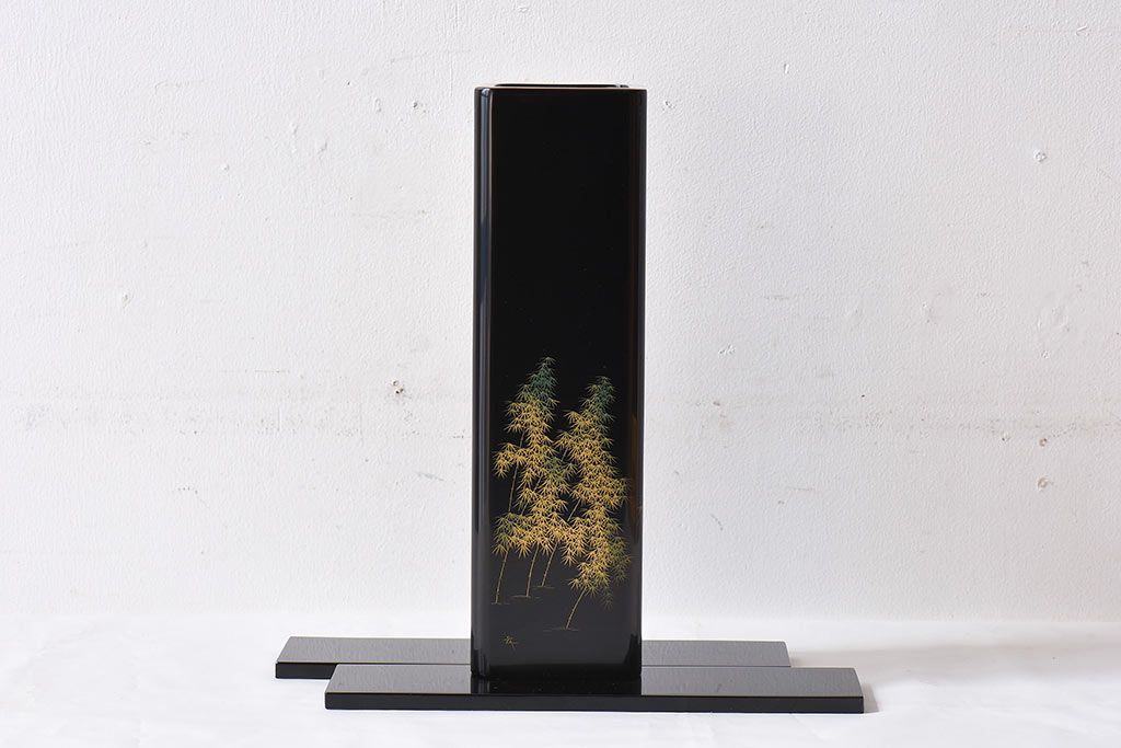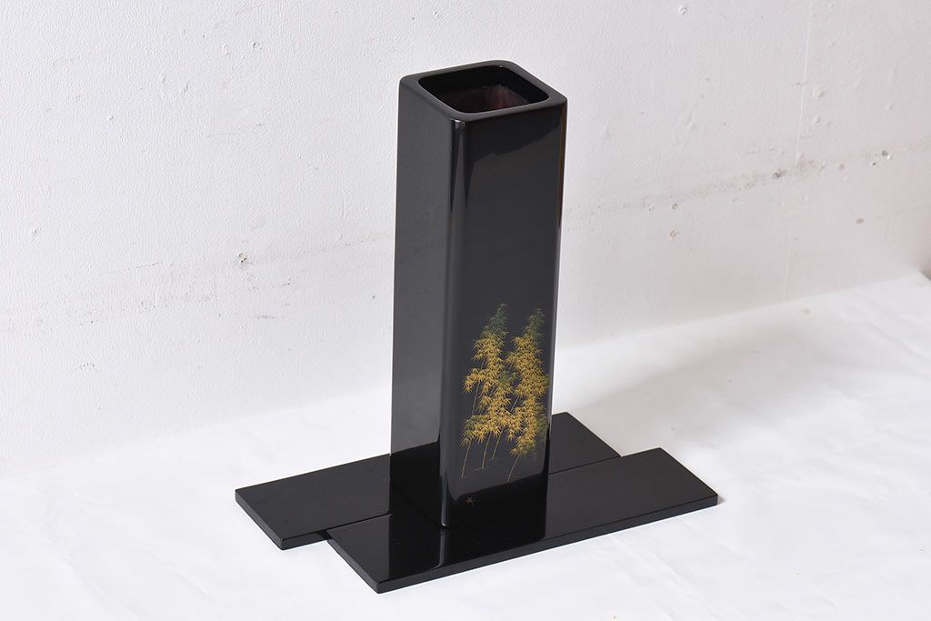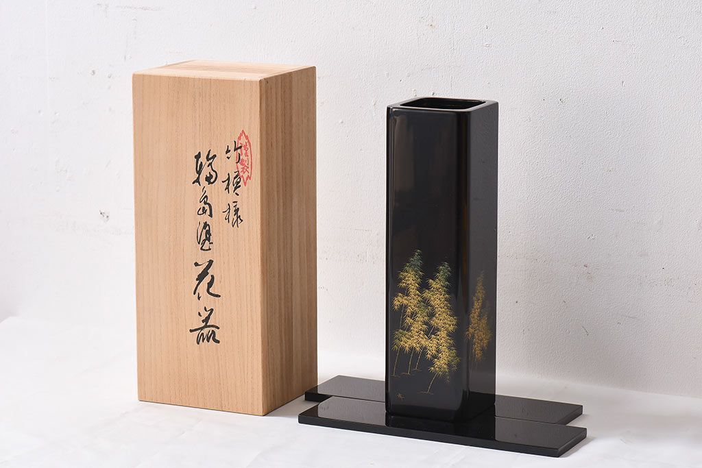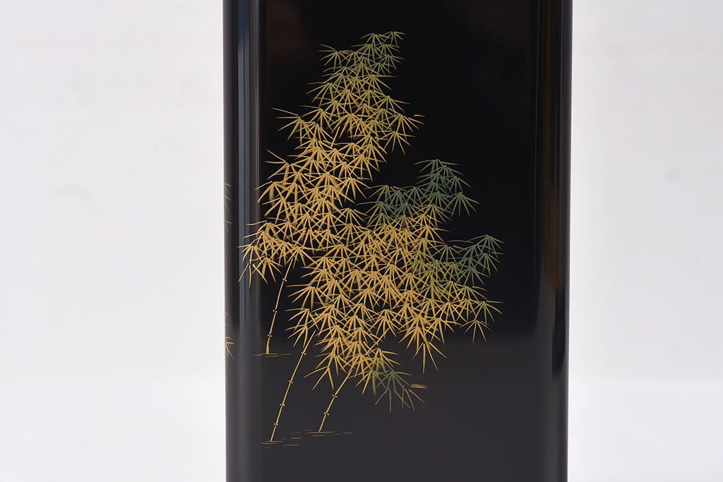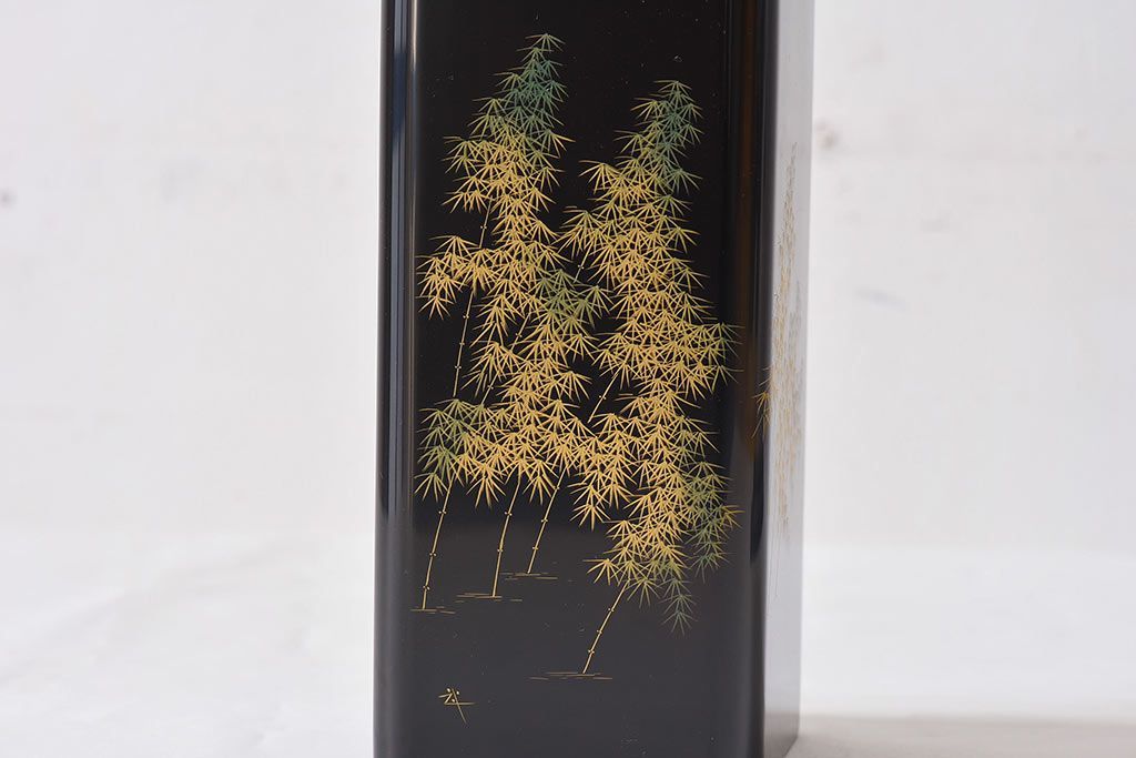 アンティーク雑貨 加治武作 箱付 輪島塗 竹模様 花器(花瓶)