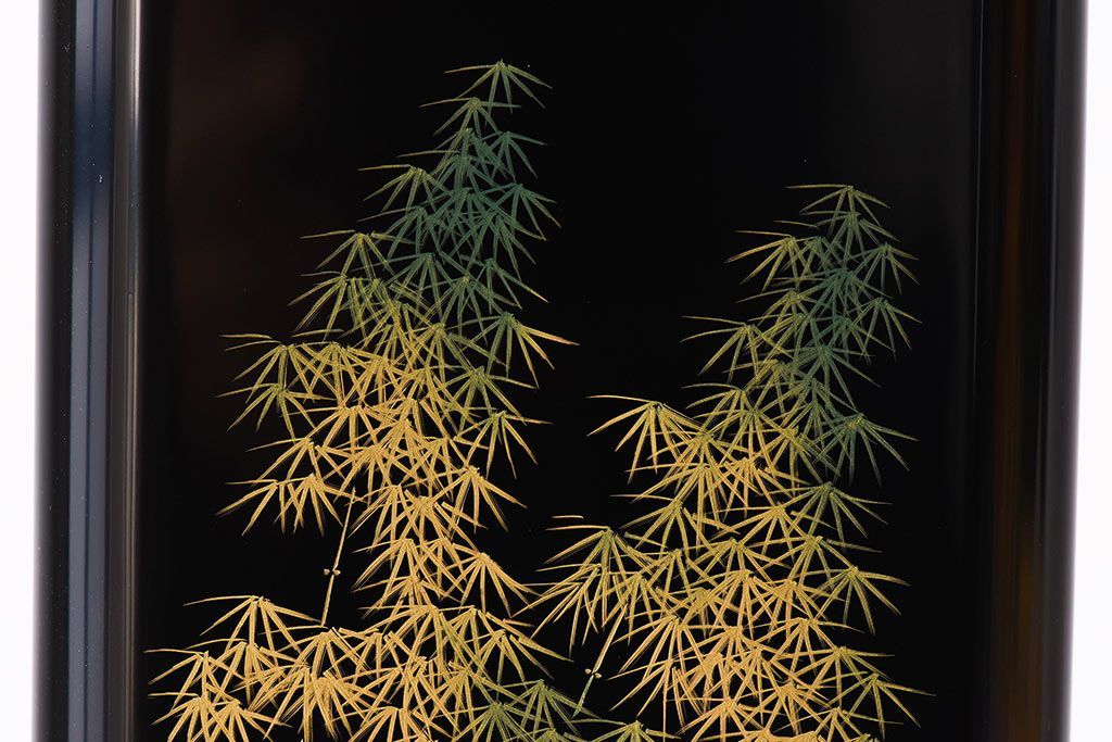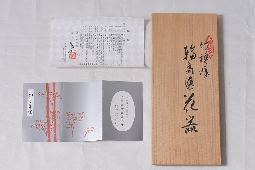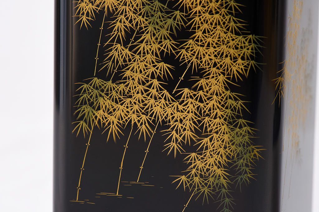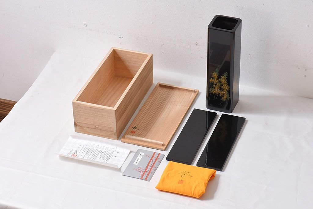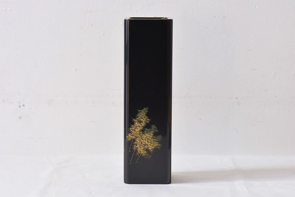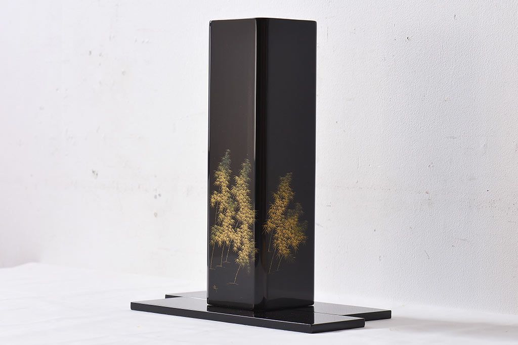 アンティーク雑貨 加治武作 箱付 輪島塗 竹模様 花器(花瓶)