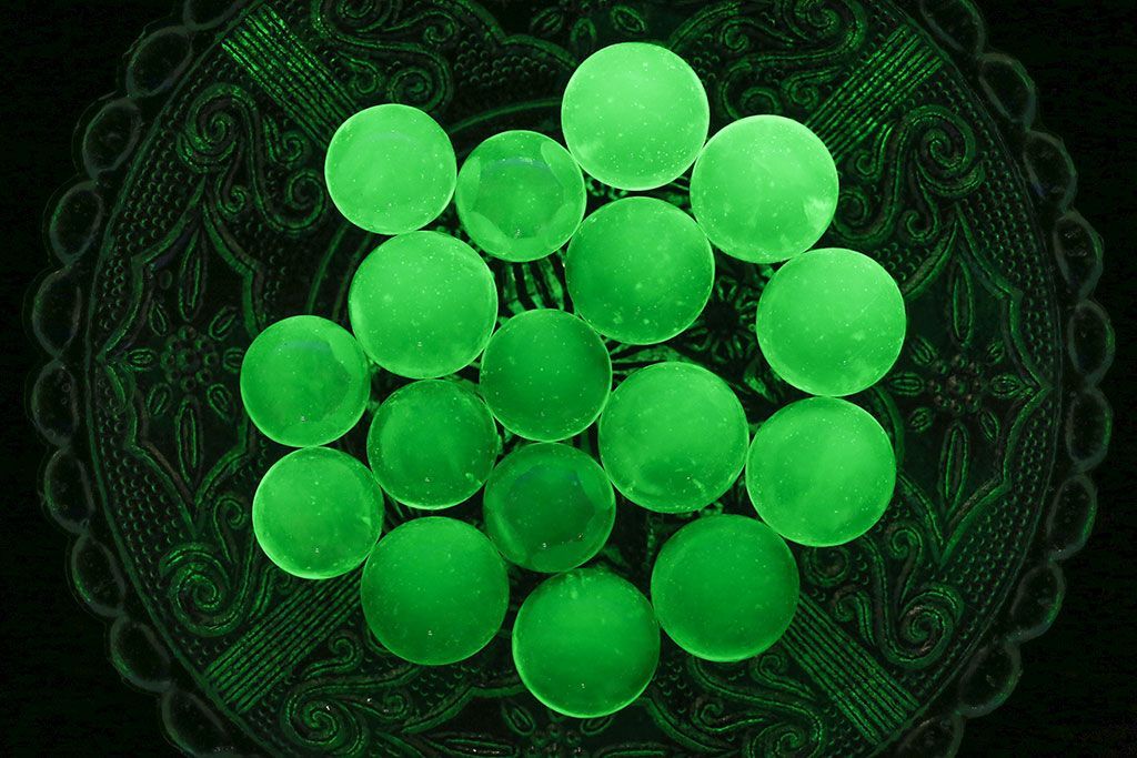 アンティーク雑貨 幻想的なウランガラス製ビー玉17個セット