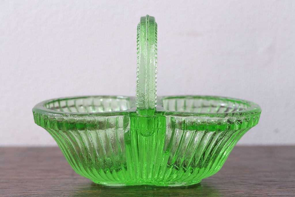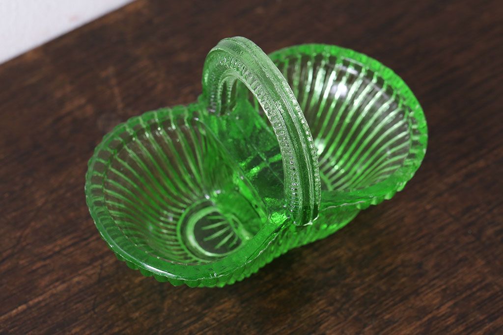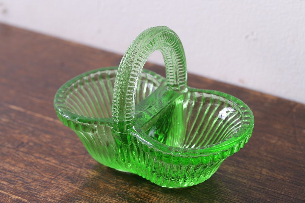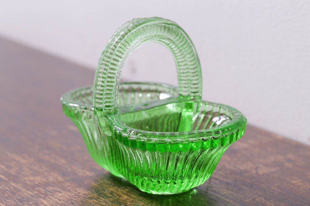 アンティーク雑貨 ウランガラス製の小さなバスケット(小物入れ)