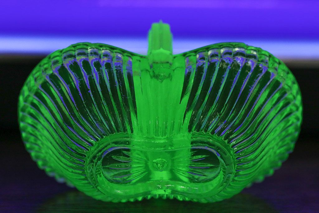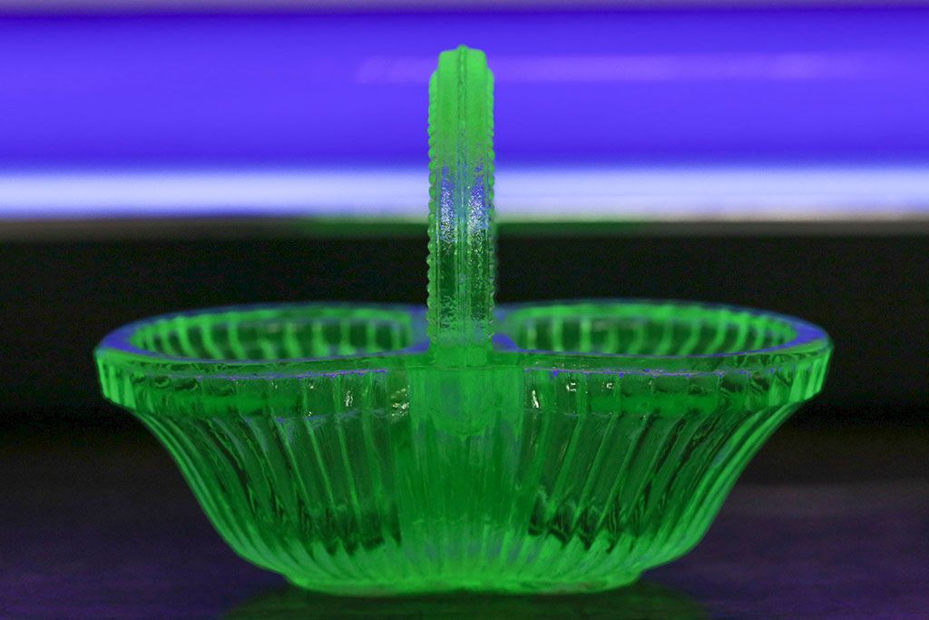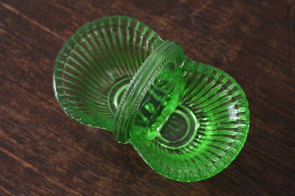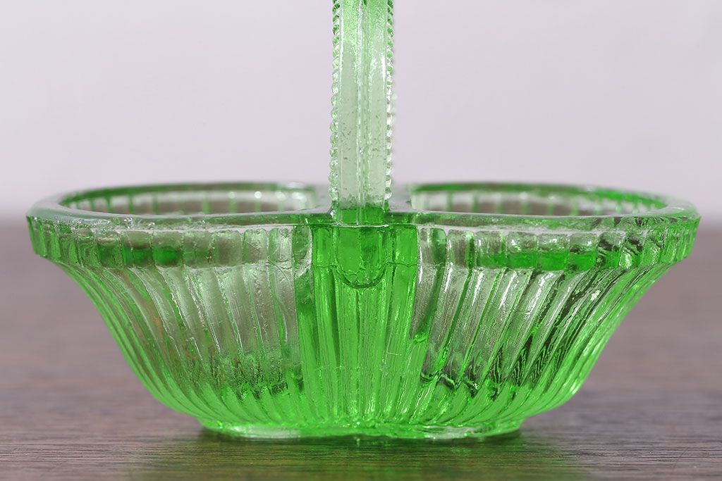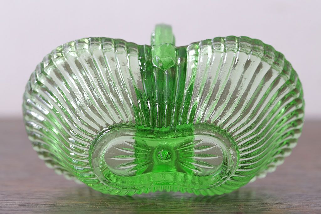 アンティーク雑貨 ウランガラス製の小さなバスケット(小物入れ)