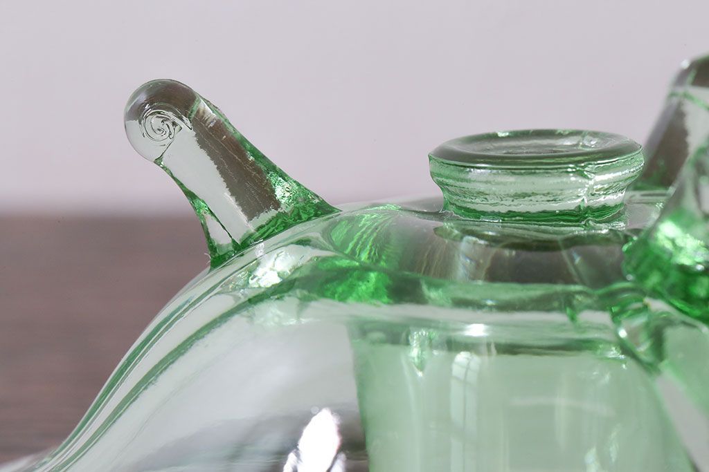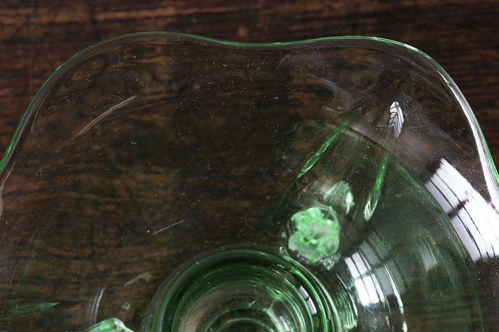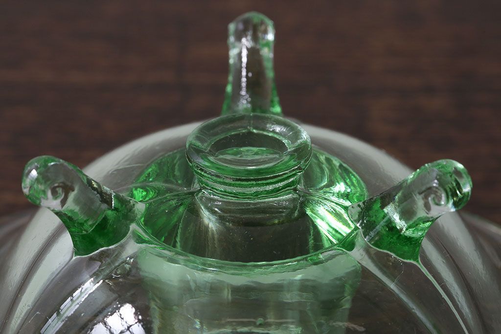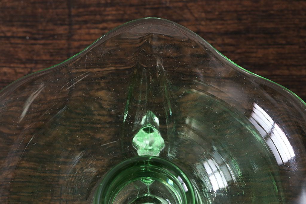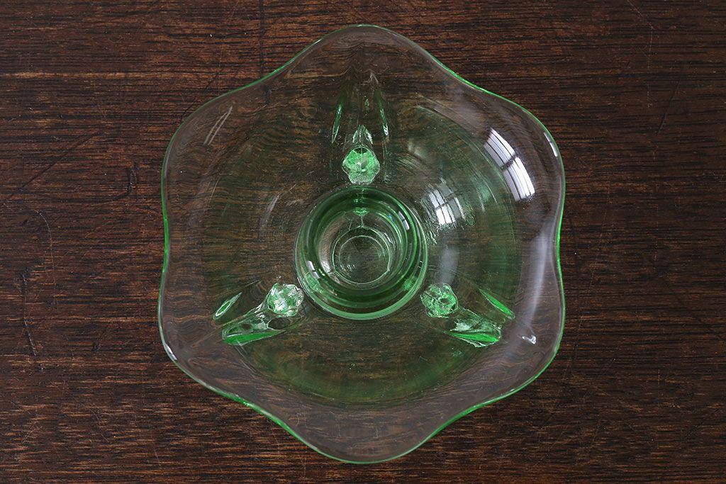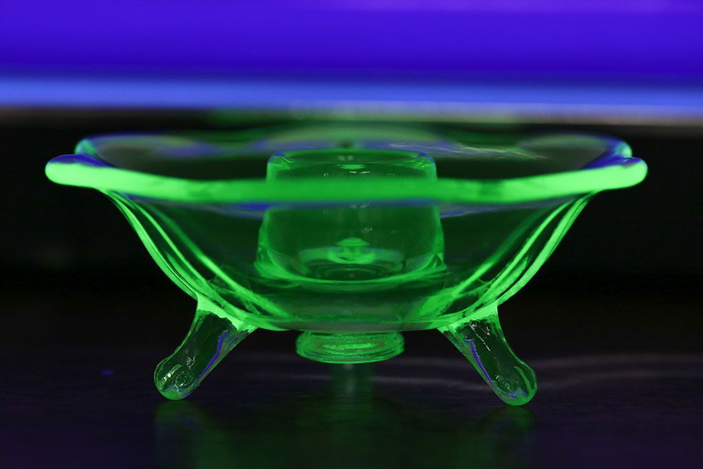 アンティーク雑貨 イギリスビンテージ ウランガラス製の小振りな三つ足キャンドルスタンド(ろうそく立て)(1)