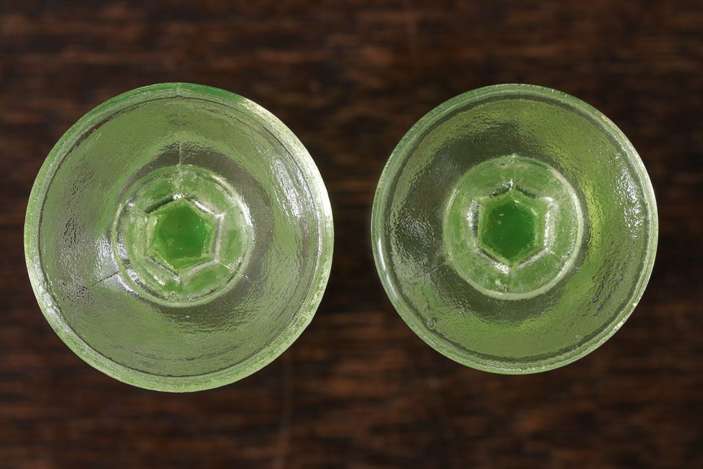 ラフジュ工房> 骨董・美術品> 骨董-ガラス食器 > アンティーク雑貨 【K様ご成約分】フランスアンティーク ウランガラス製 二つの表情が魅力的なリキュールグラス(ガラス杯、酒器、脚付コップ)