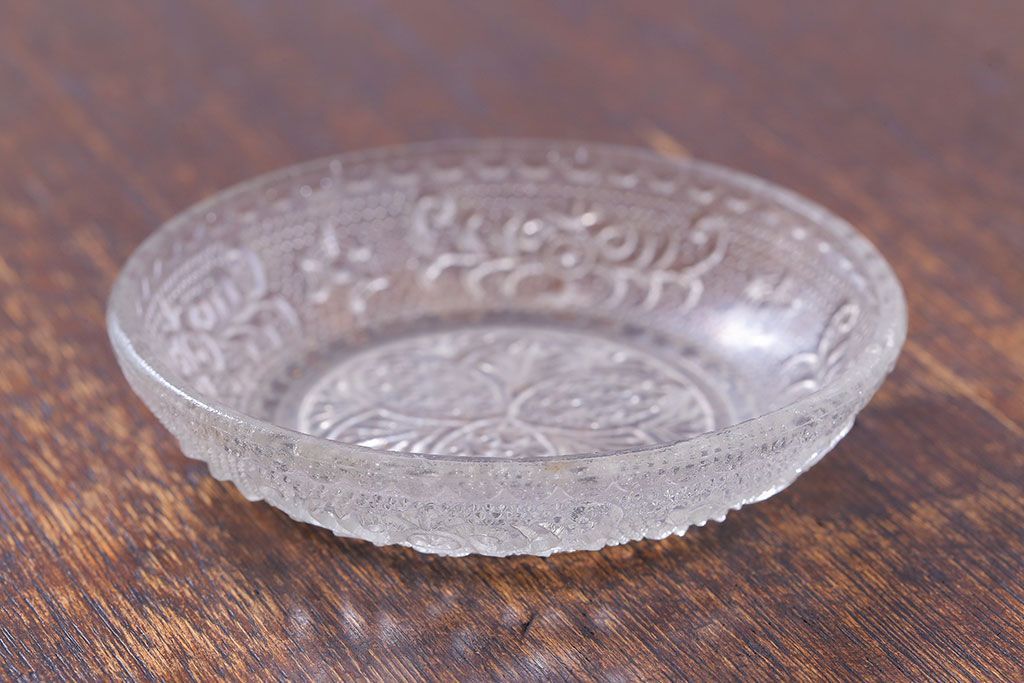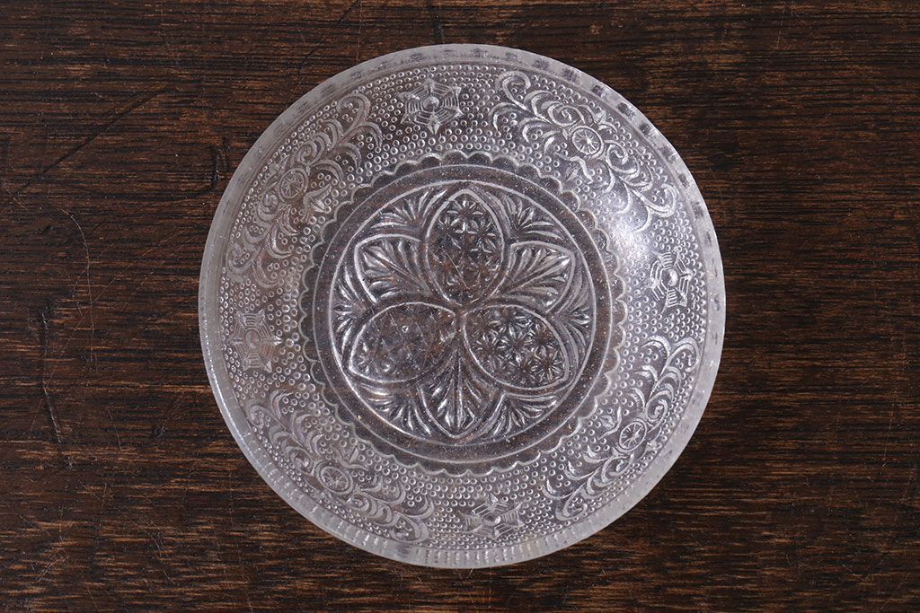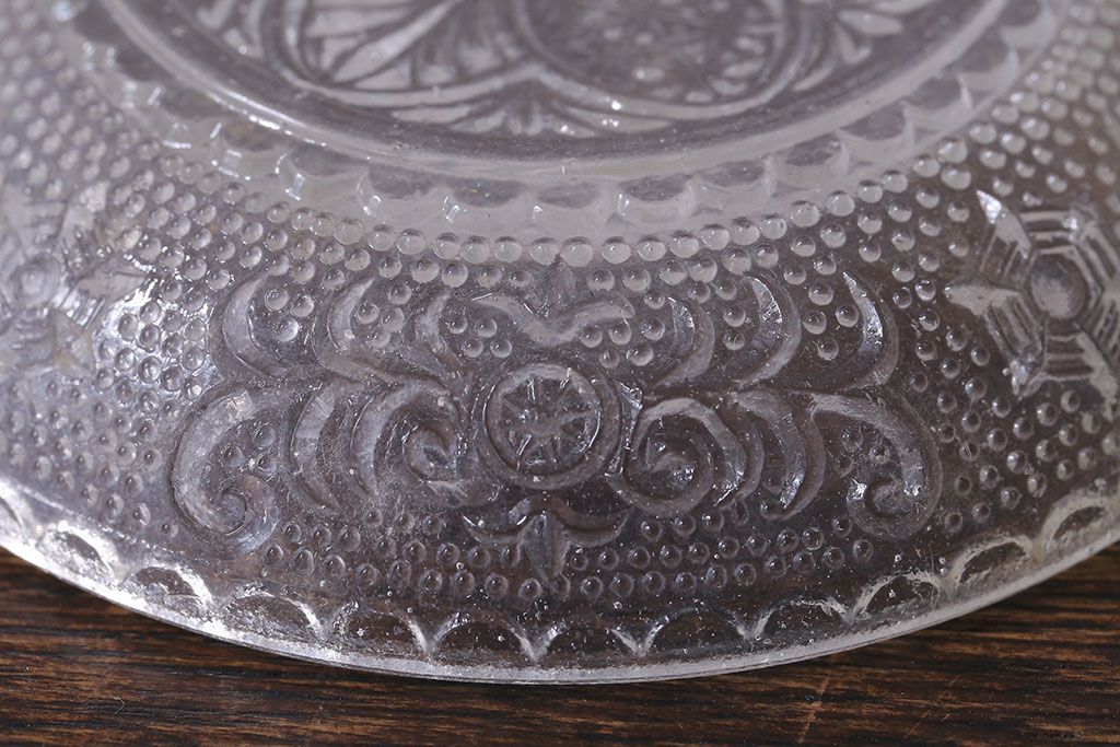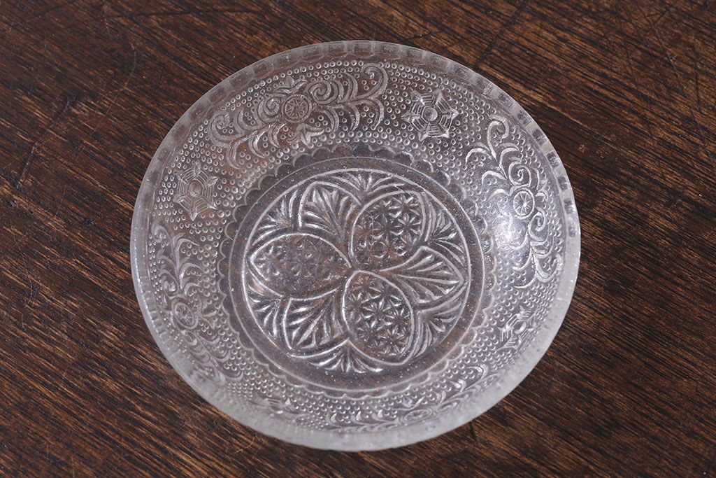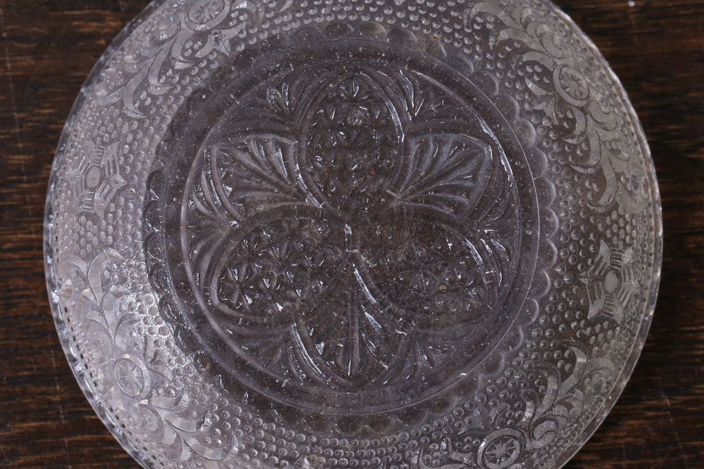 アンティーク雑貨 大正期 古い質感が味わい深いプレスガラスの小皿(ガラスプレート)(2)