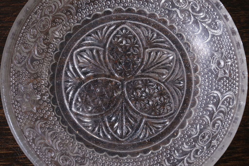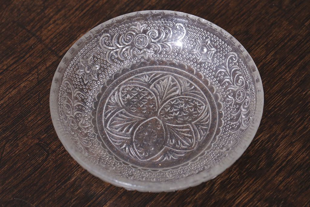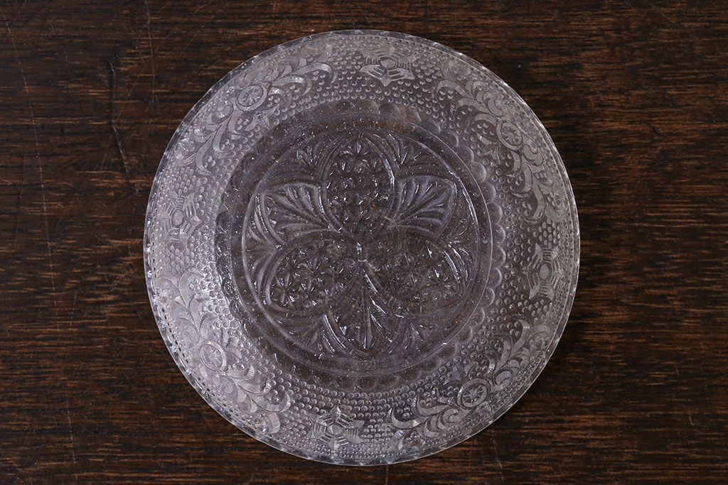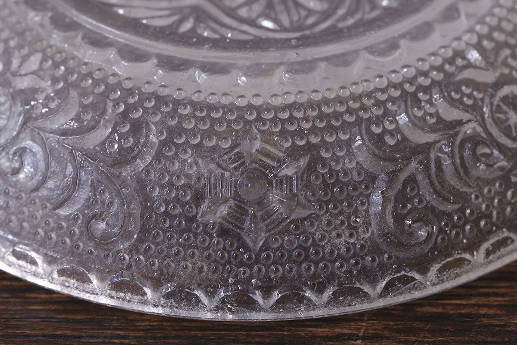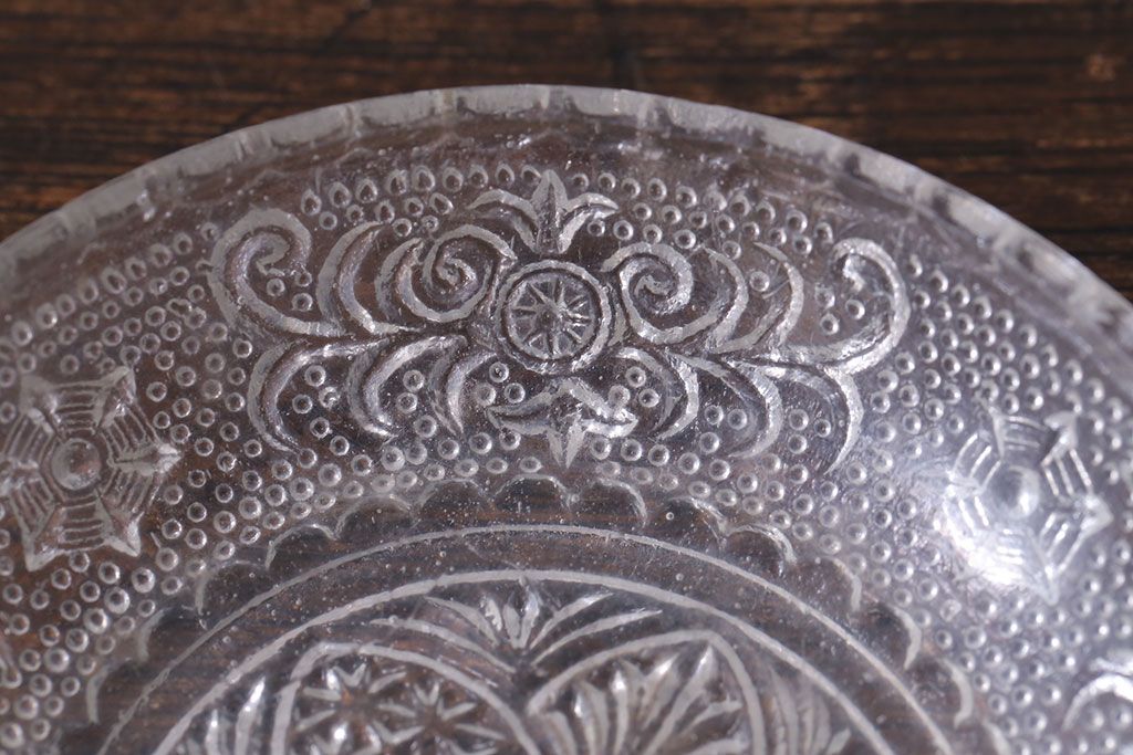 アンティーク雑貨 大正期 古い質感が味わい深いプレスガラスの小皿(ガラスプレート)(2)