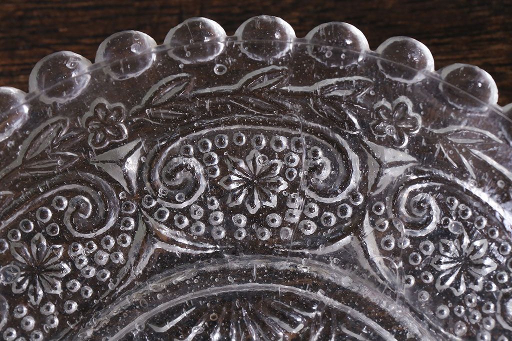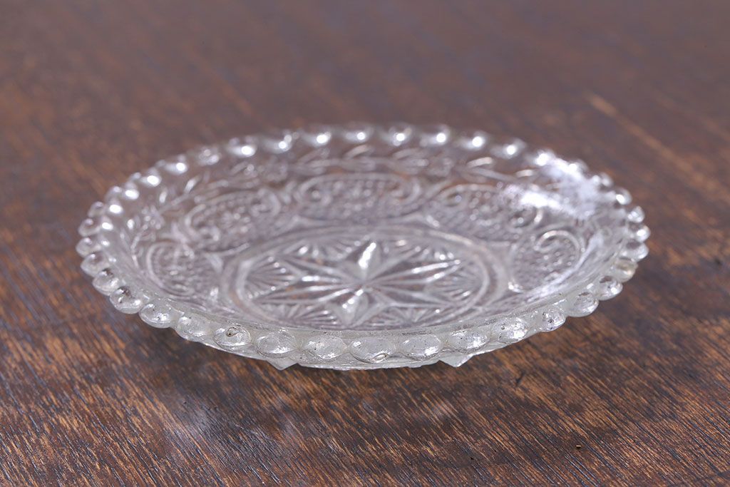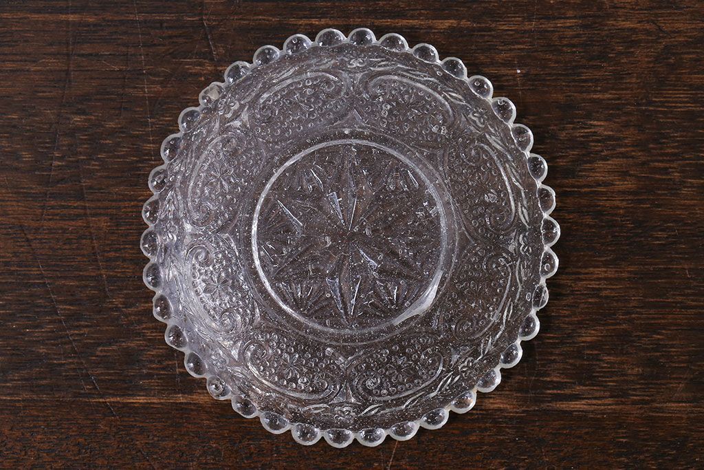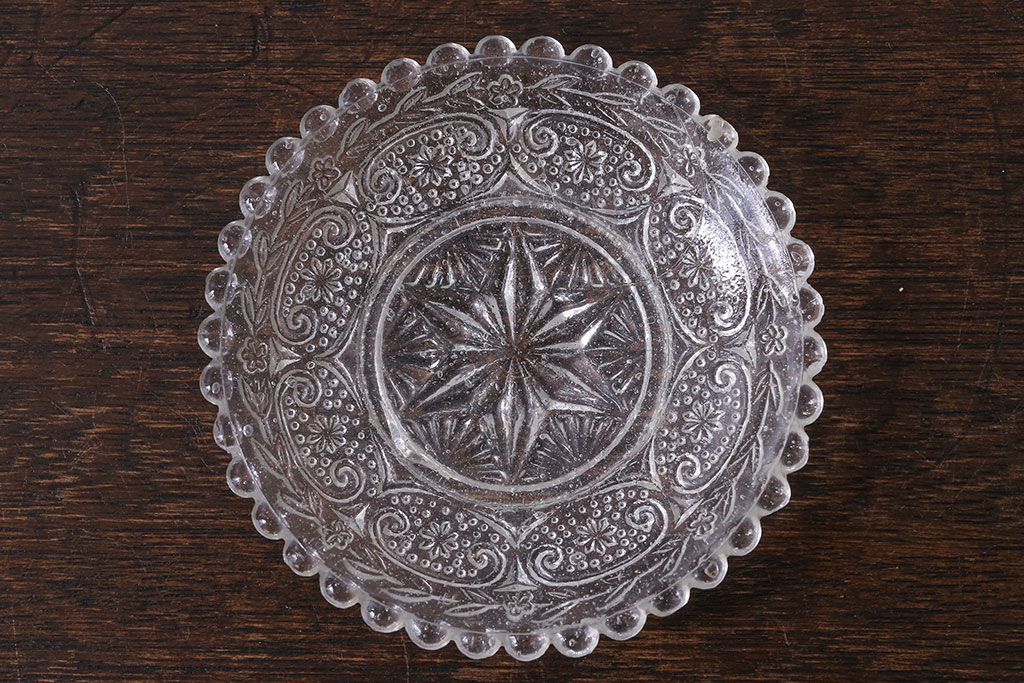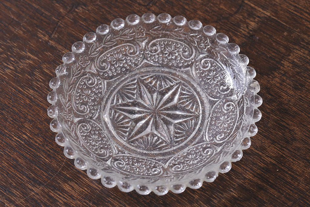 アンティーク雑貨 大正期 古い質感が味わい深いプレスガラスの小皿(ガラスプレート)(3)