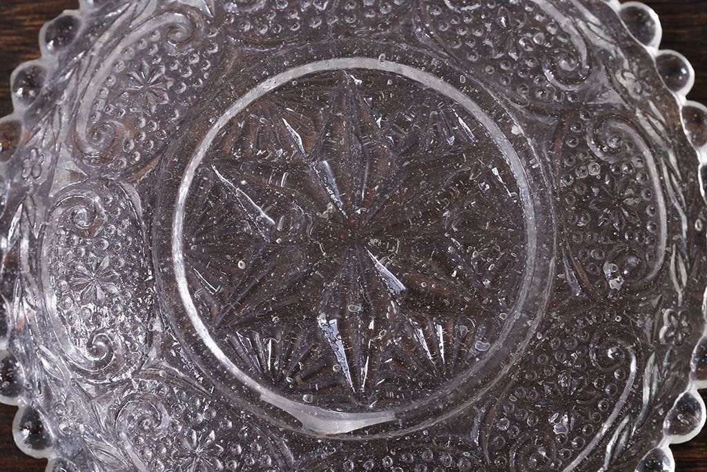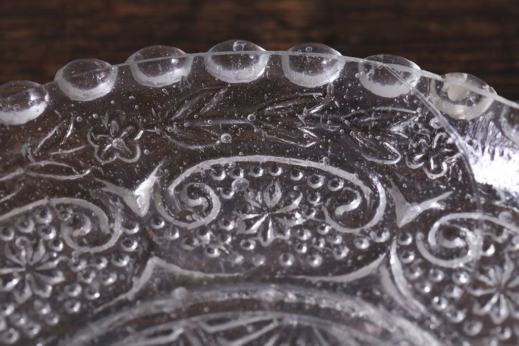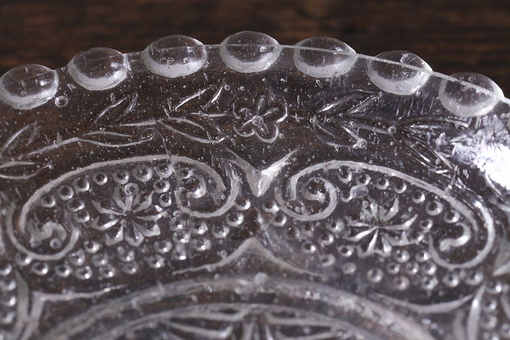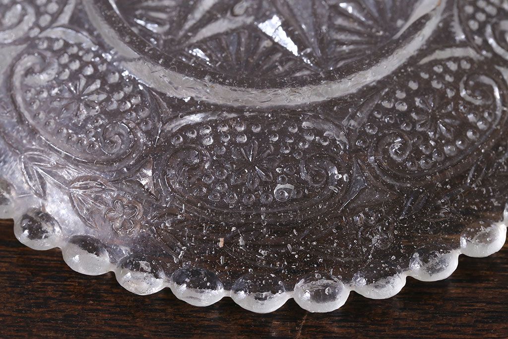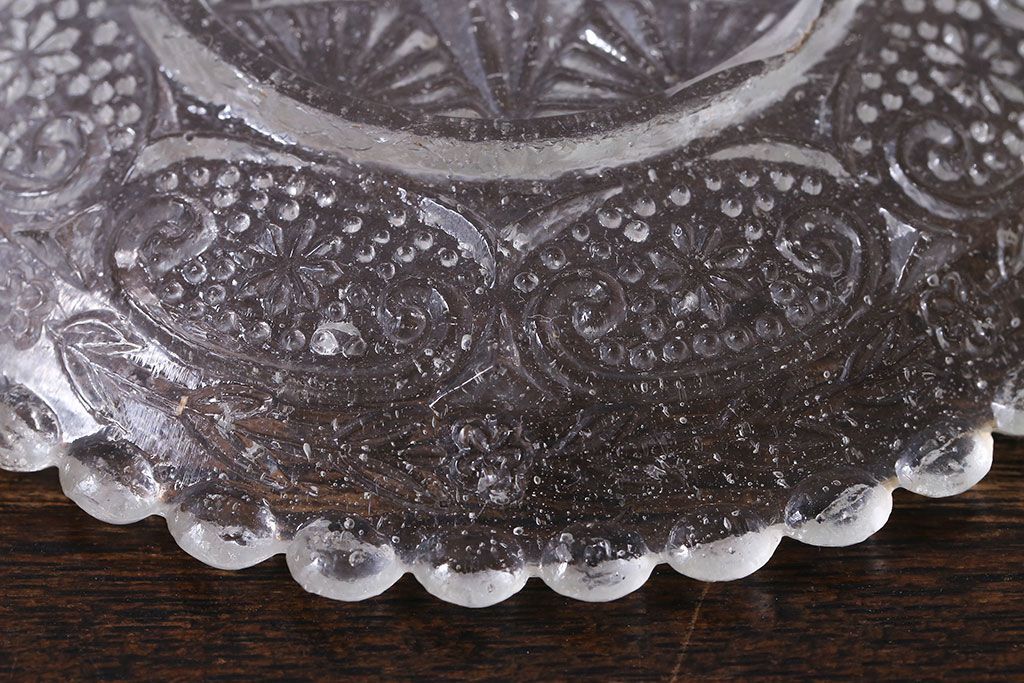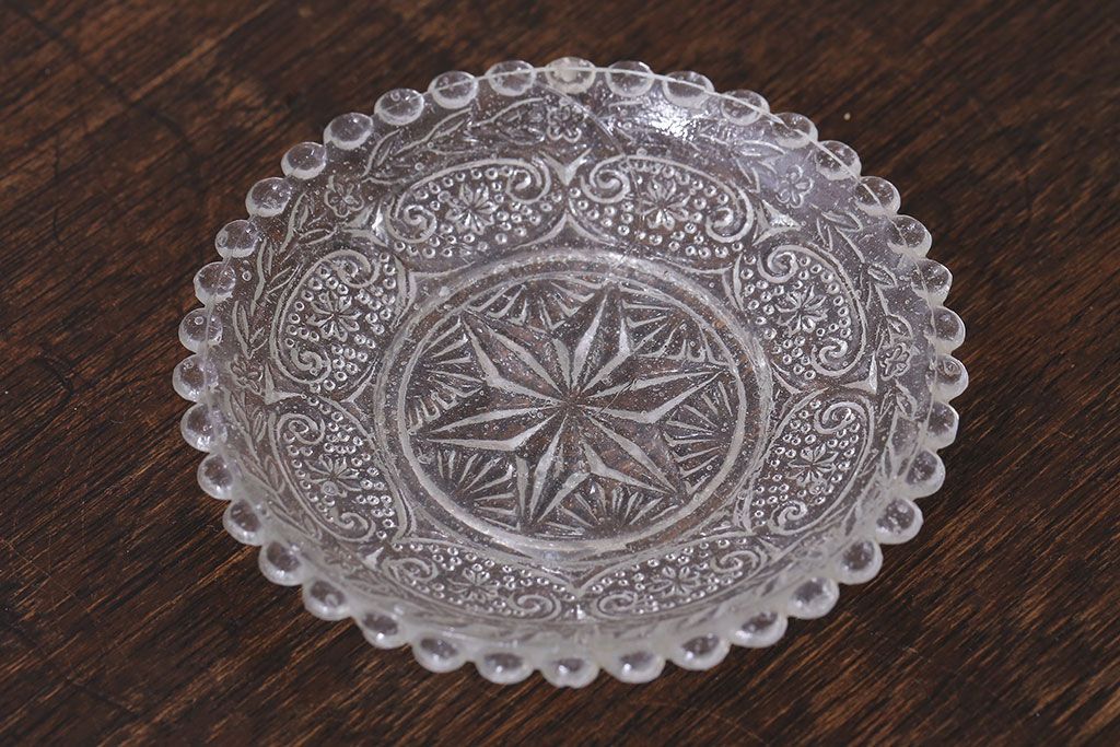 アンティーク雑貨 大正期 古い質感が味わい深いプレスガラスの小皿(ガラスプレート)(3)
