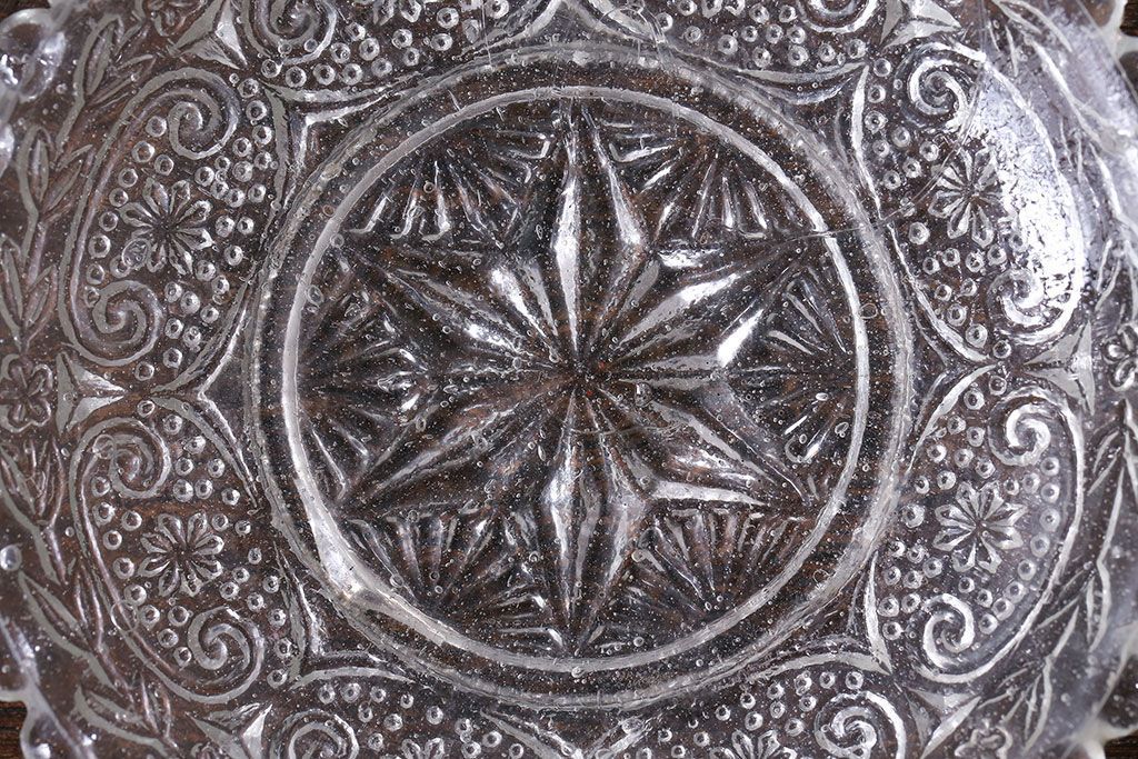 ラフジュ工房> 骨董・美術品> 骨董-ガラス食器 > アンティーク雑貨 大正期 古い質感が味わい深いプレスガラスの小皿(ガラスプレート)(3)