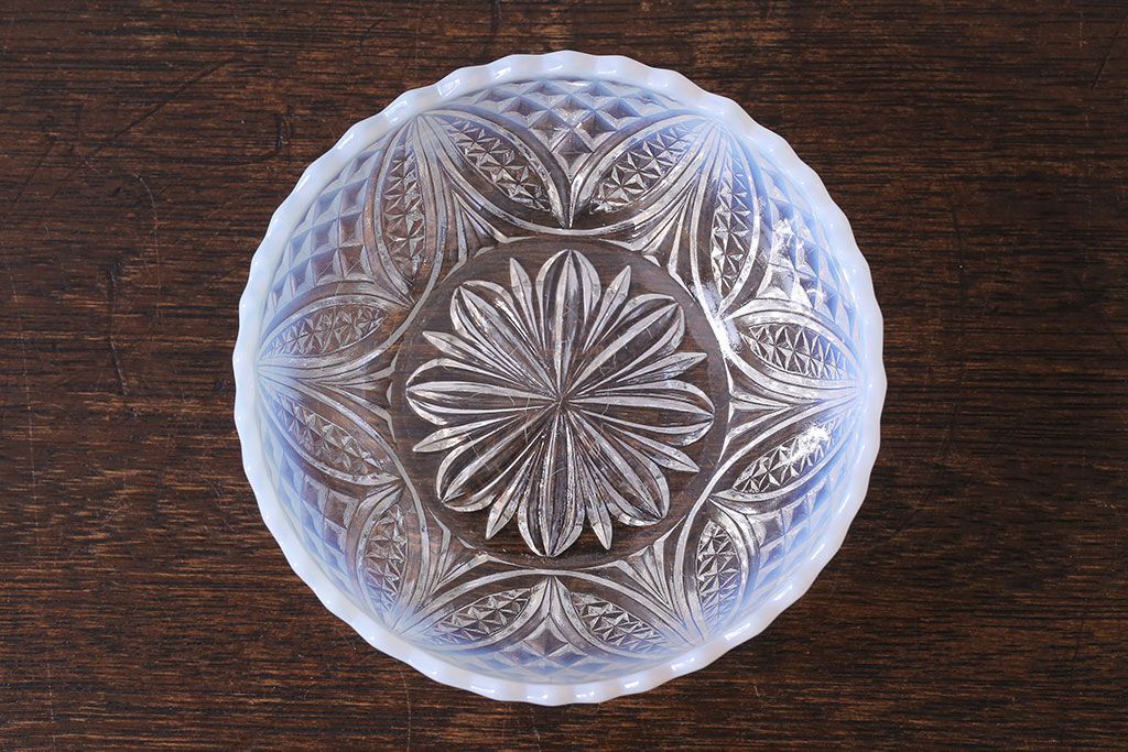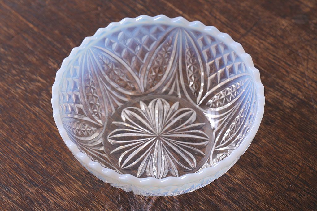 アンティーク雑貨 昭和期 優しい乳白色が魅力のプレスガラス小鉢(ガラスボウル)