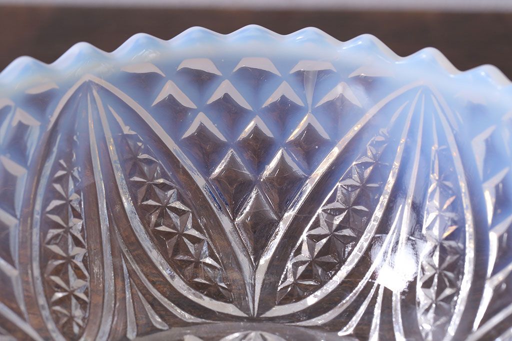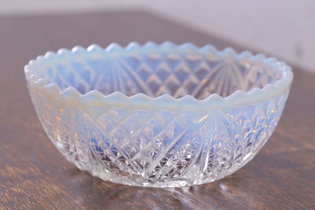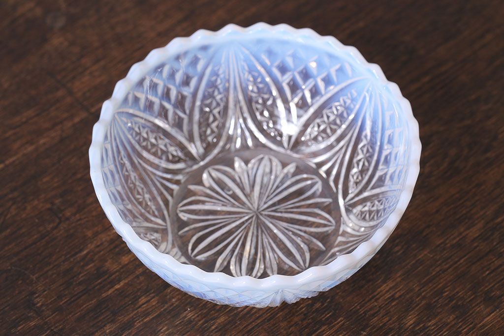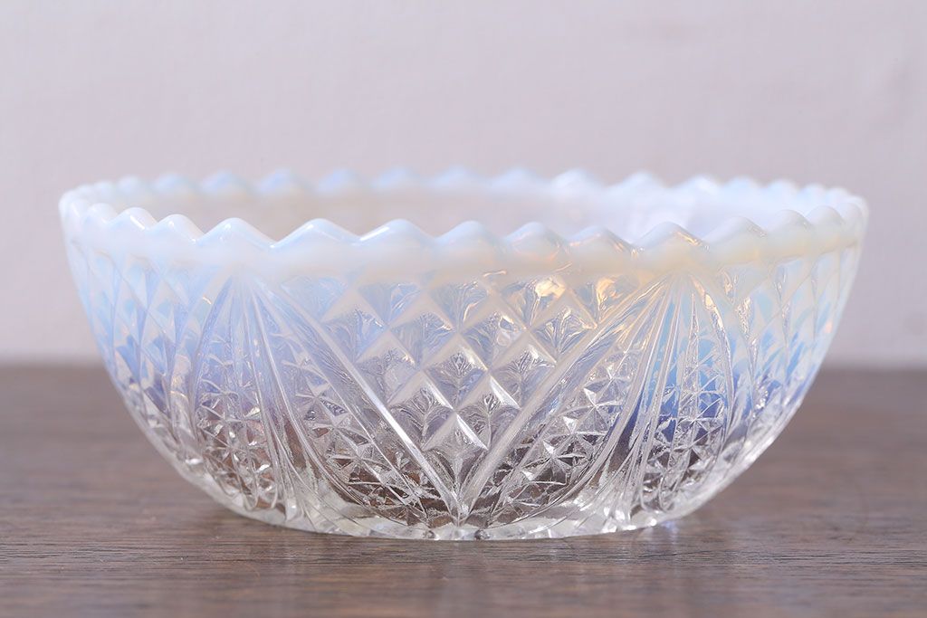 ラフジュ工房> 和食器・茶道具> 鉢 > アンティーク雑貨 昭和期 優しい乳白色が魅力のプレスガラス小鉢(ガラスボウル)