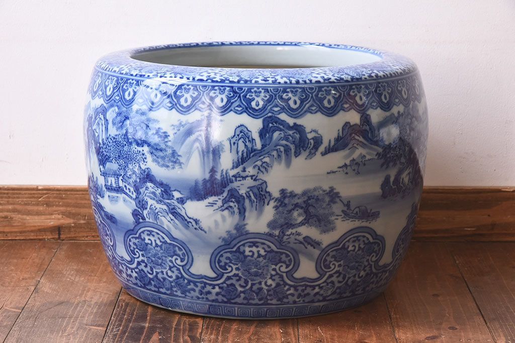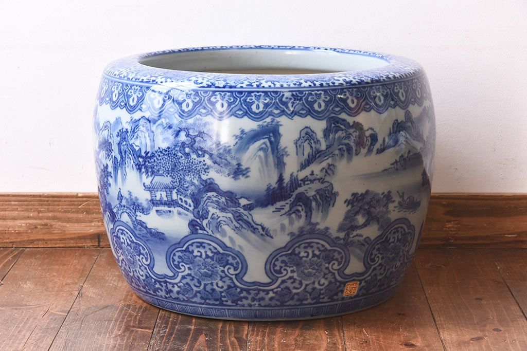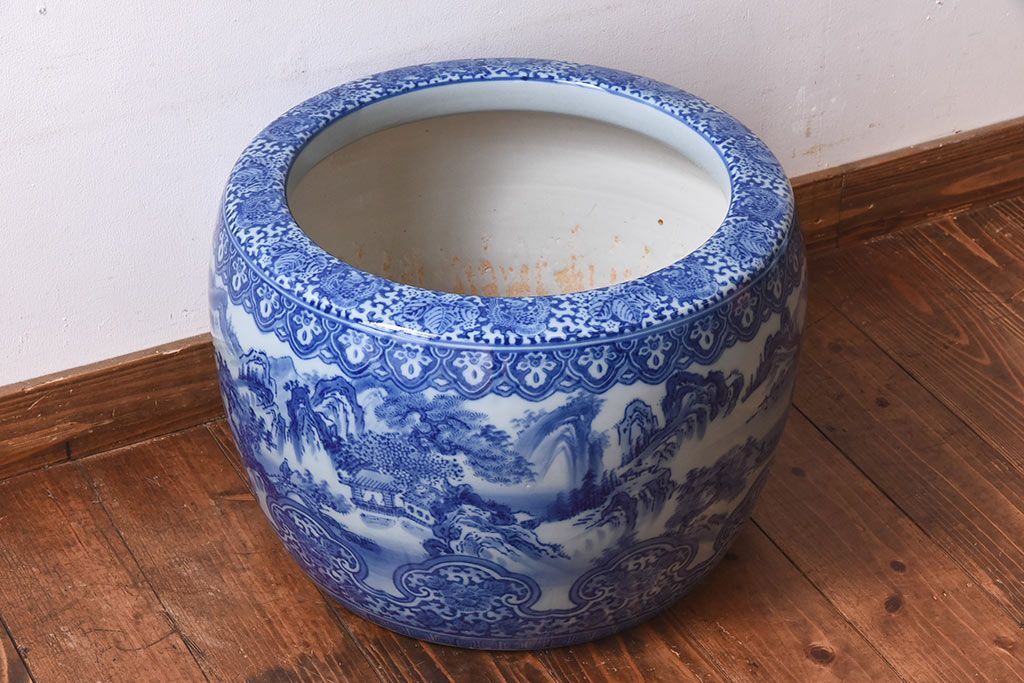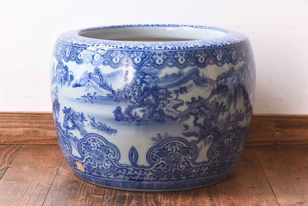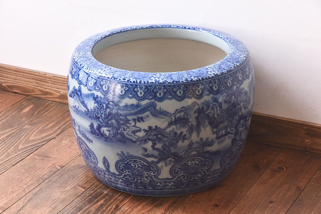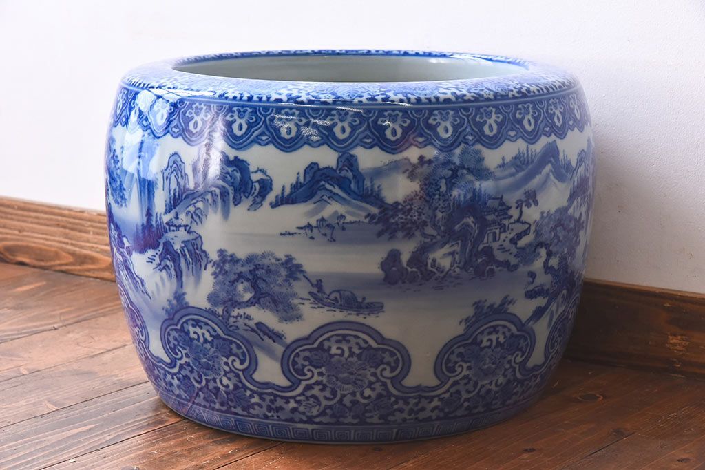 アンティーク雑貨 昭和初期 和の雰囲気漂う山水図の瀬戸火鉢(鉢カバー)