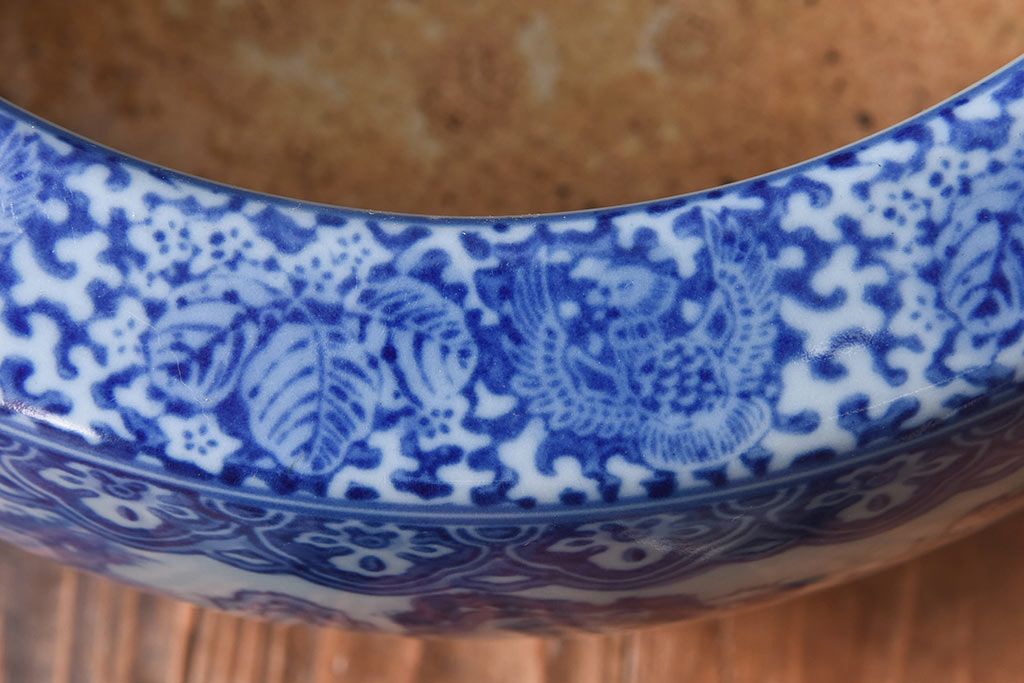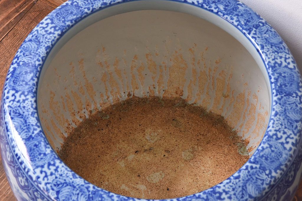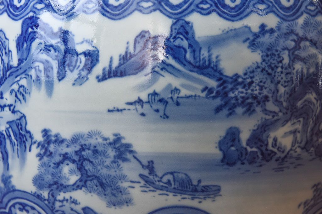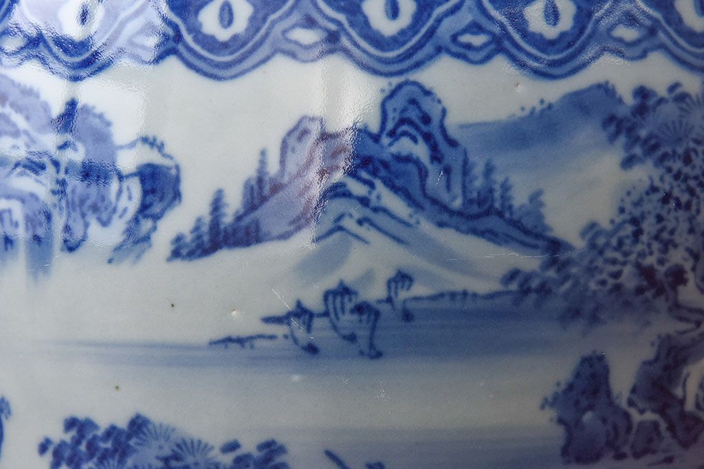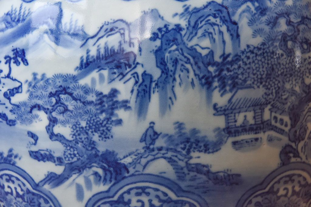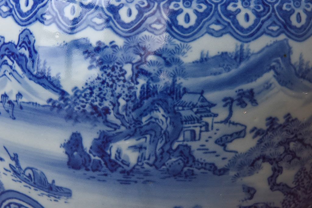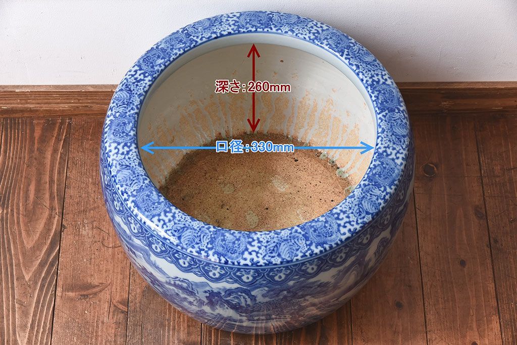 アンティーク雑貨 昭和初期 和の雰囲気漂う山水図の瀬戸火鉢(鉢カバー)
