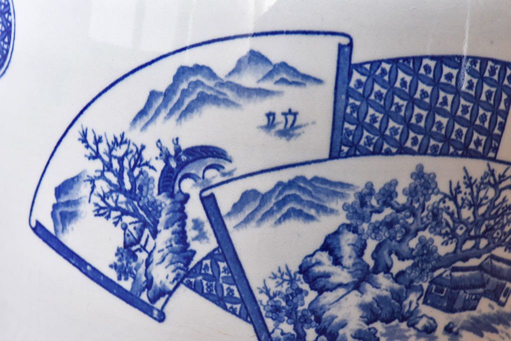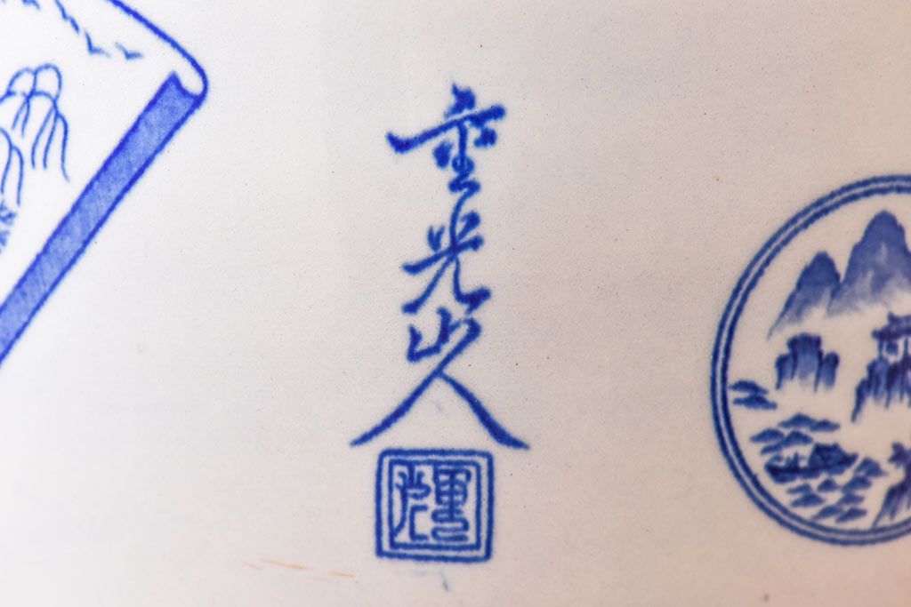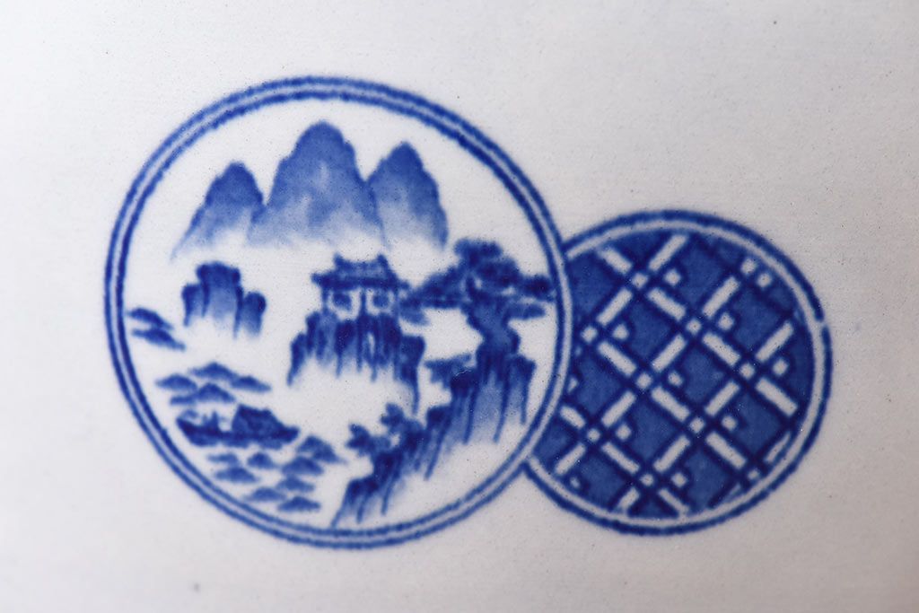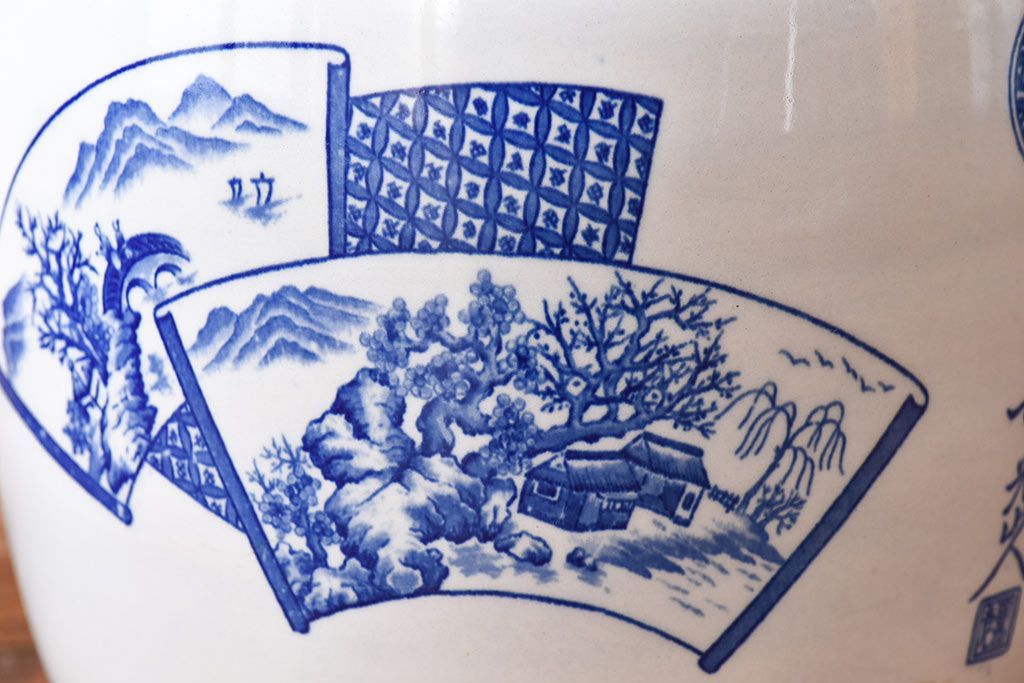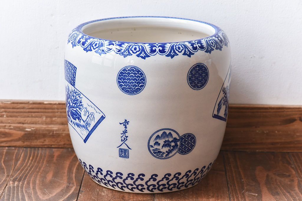 アンティーク雑貨 昭和期 山水図 窓絵 在銘 重光山人 和の雰囲気漂う瀬戸火鉢(鉢カバー)