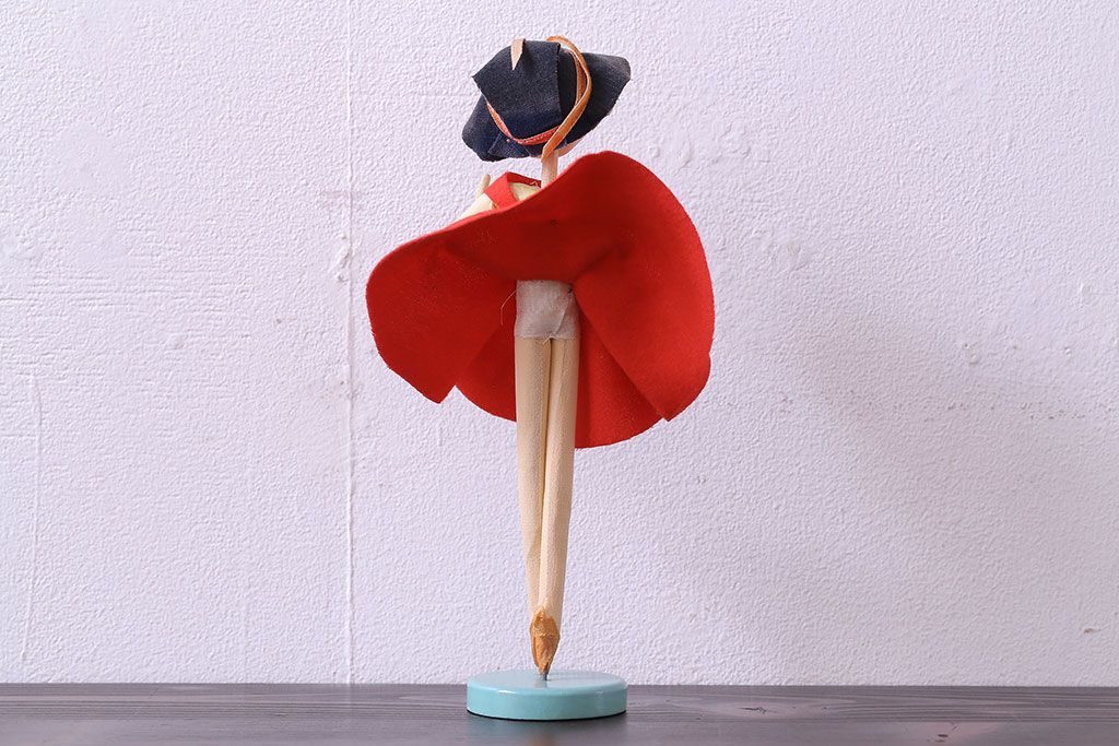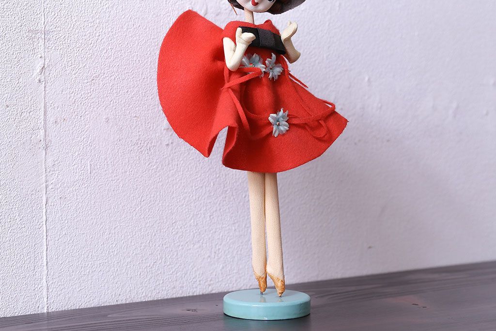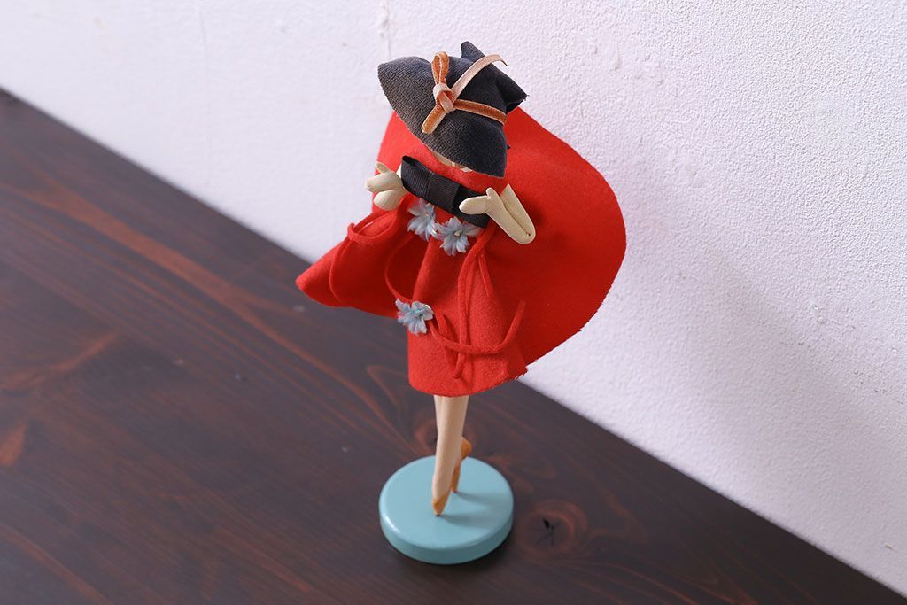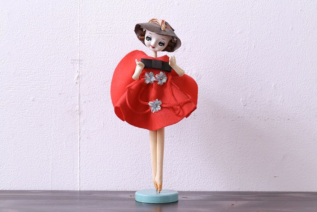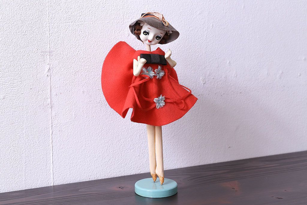 アンティーク雑貨 赤いワンピースが可愛らしいレトロなポーズ人形(ドール)