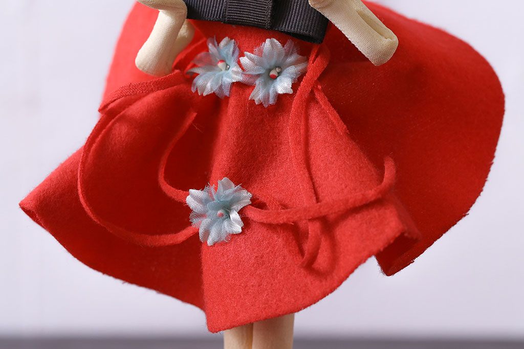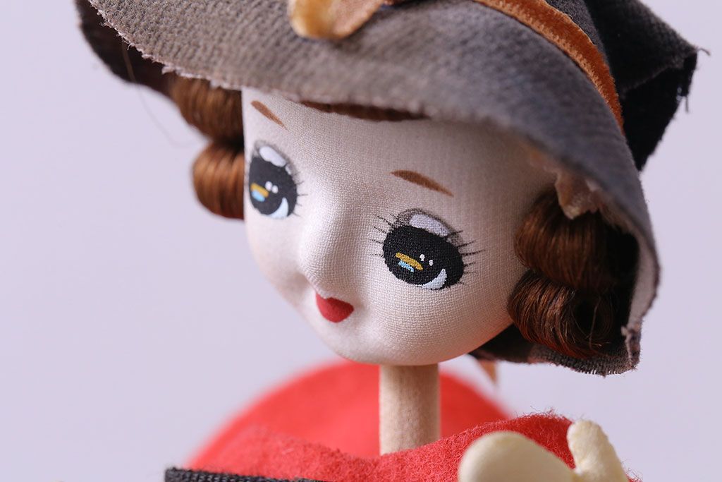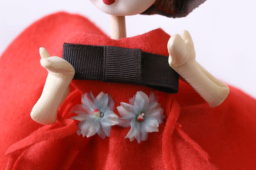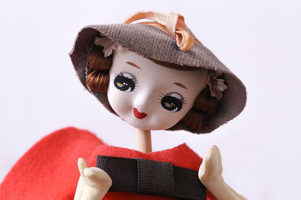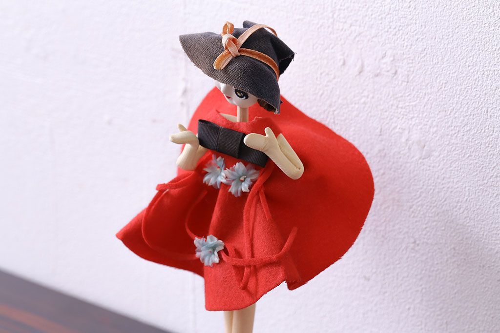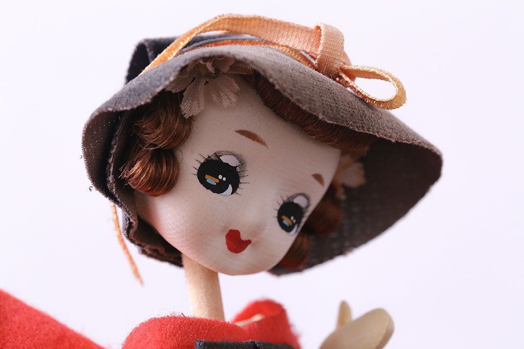 アンティーク雑貨 赤いワンピースが可愛らしいレトロなポーズ人形(ドール)