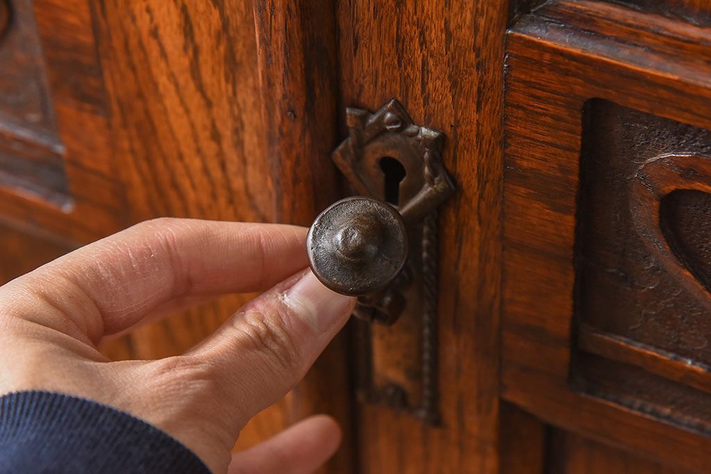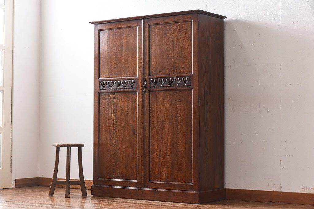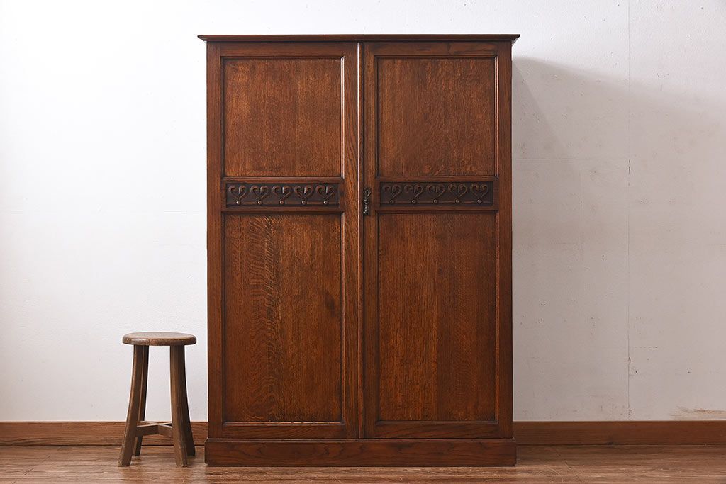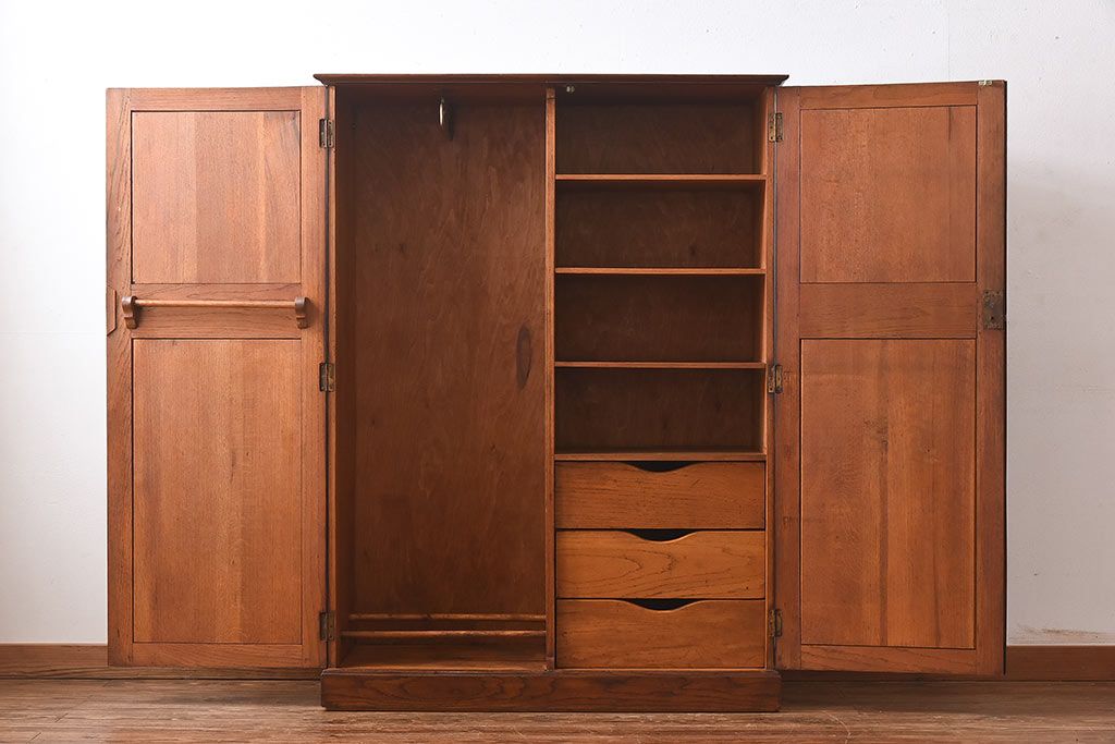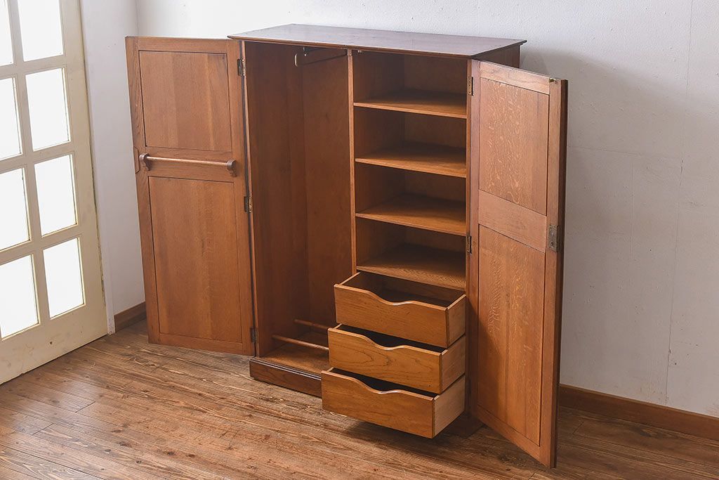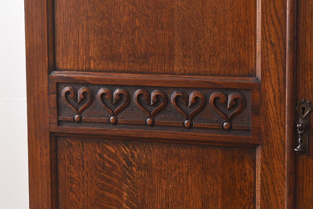 アンティーク家具 イギリスアンティーク 落ち着いた色味のオーク材が魅力のワードローブ(キャビネット、収納棚、戸棚)