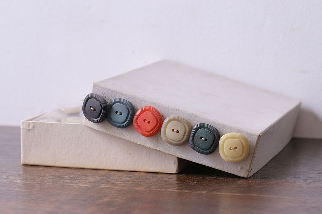 アンティーク雑貨 ビンテージ 素朴な色味のスクエアボタンセット